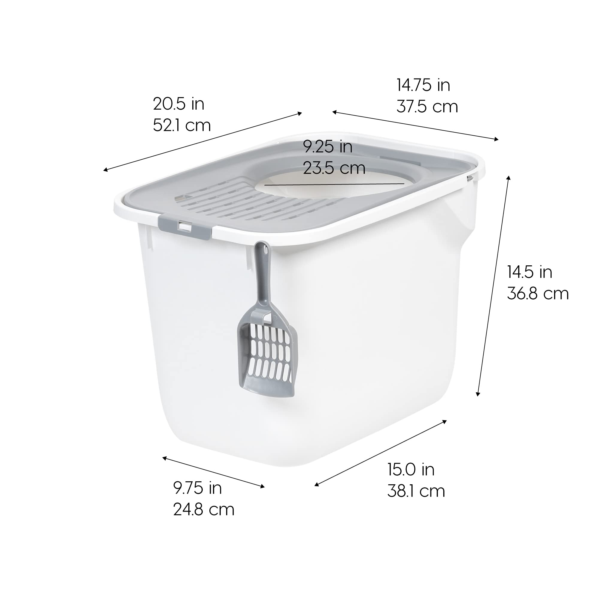 TOP ENTRY: This litter box features a top entry design that benefits cats by providing privacy and a sense of security. The high walls help contain litter scatter, ensuring a clean environment for both your feline friend and your home.