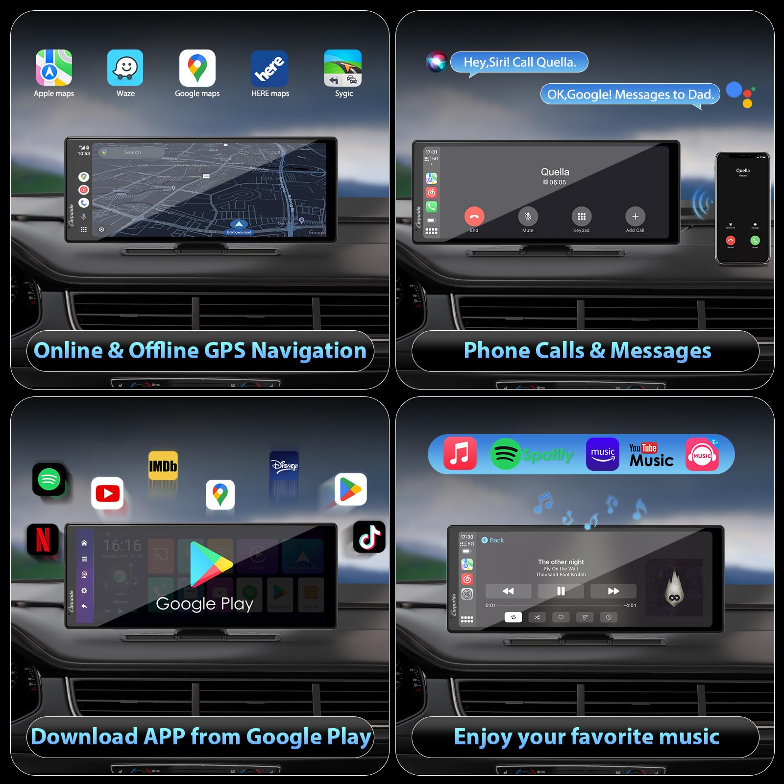 【Smart Voice Control with Siri & Google Assistant】Elevate your driving experience with the Carpuride Apple CarPlay screen, featuring built-in clear microphone technology for hands-free phone calls. Effortlessly send voice commands to Siri or Google Assistant, such as "play music", "make phone calls" and more, all without lifting a finger.