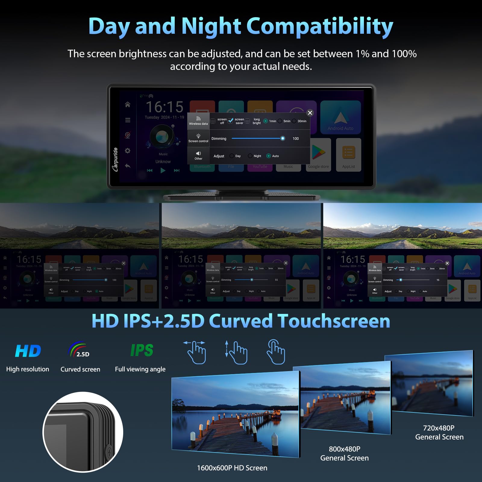 【Mirror Link & Anti-Glare Screen】The Carpuride W102plus is equipped with the latest Phone Mirror-Link technology, making it compatible with almost all Android and iOS phones for Mirror-Link, you can easily access map navigation, YouTube, Netflix videos, and your favorite music right at your fingertips. The new anti-glare full-touch HD capacitive monitor boasts a 1600*600 resolution, providing you with responsive and clear viewing. Hidden jack wiring design, pleasing look and saving space.