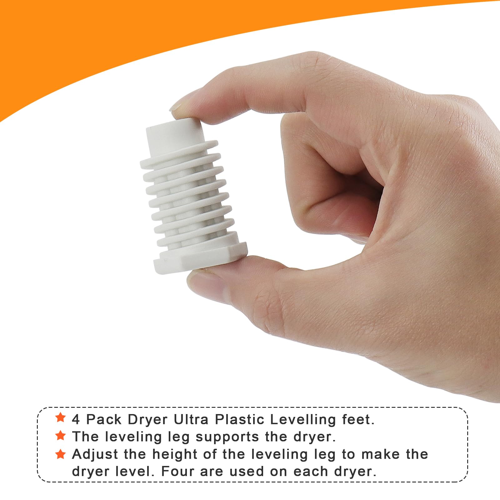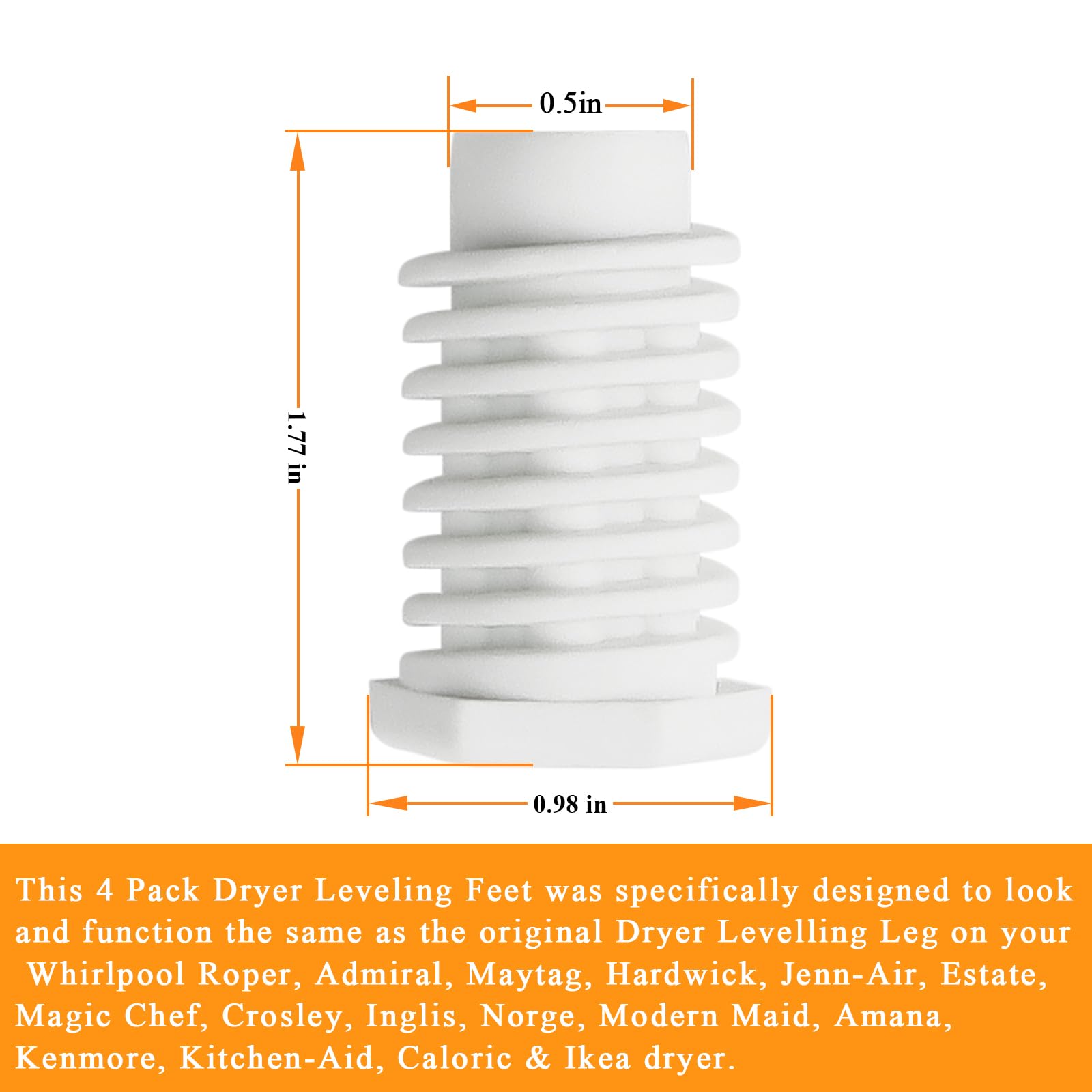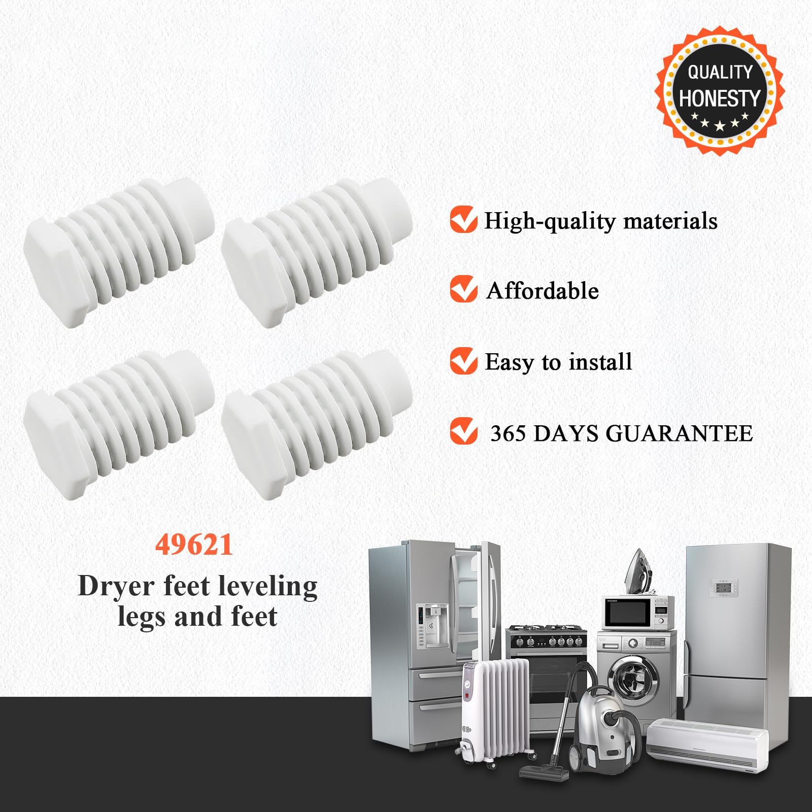 √√【49621 DRYER FEET】:49621 Dryer Leveling feet. The maytag dryer leveling legs AP4295805 supports the dryer. Dryer legs PS1609293 adjust the height of the leveling leg to make the dryer level. Four PS1609293 49621 dryer feet are used on each dryer.Use all four PS1609293 dryer legs to ensure that the washer is firmly on the ground. The complete 4 maytag dryer leg helps you with a full set of replacements.PS1609293 leveling feet for whirlpool dryer Upgraded sturdy abs strong and solid material, not easy to break, not easy to corrode, maintain the balance of the dryer for a long time. Tight spiral pattern design helps you simply screw into the dryer
