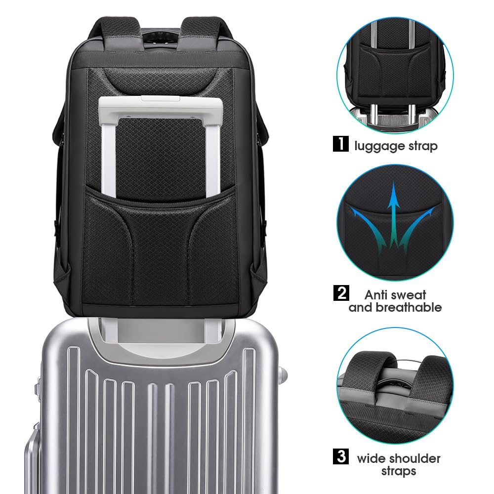 ANTI THEFT BACKPACK : The computer backpack is equipped with a smart secure lock that is made of high strength zinc alloy with a solid, compact body to prevent theft and well safeguard all your valuables securely. The password lock is easy to set (Includes instructions), please see A+ for the detailed instruction.