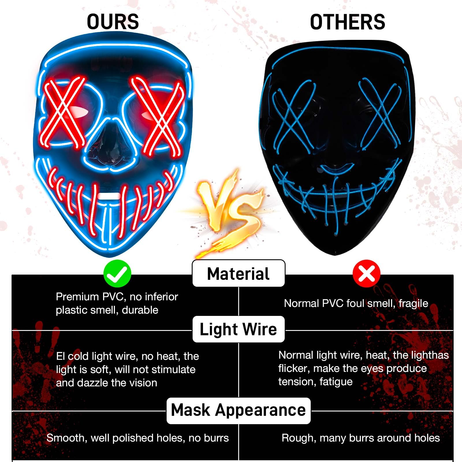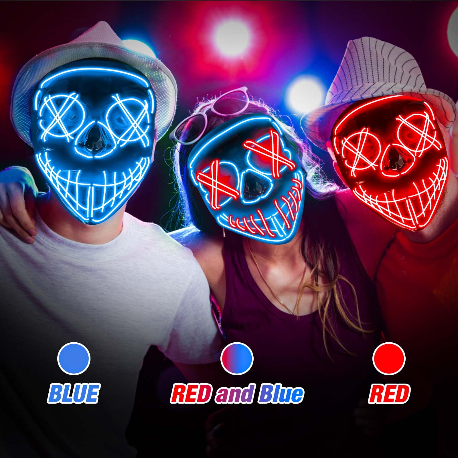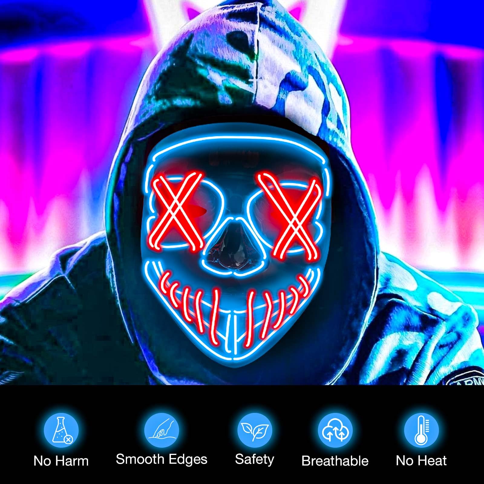 Cool Lighting Effect: El cold light wire purge mask has NO UV damage, glows well in the dark, and works of basic no heat, making it comfortable for your eyes
