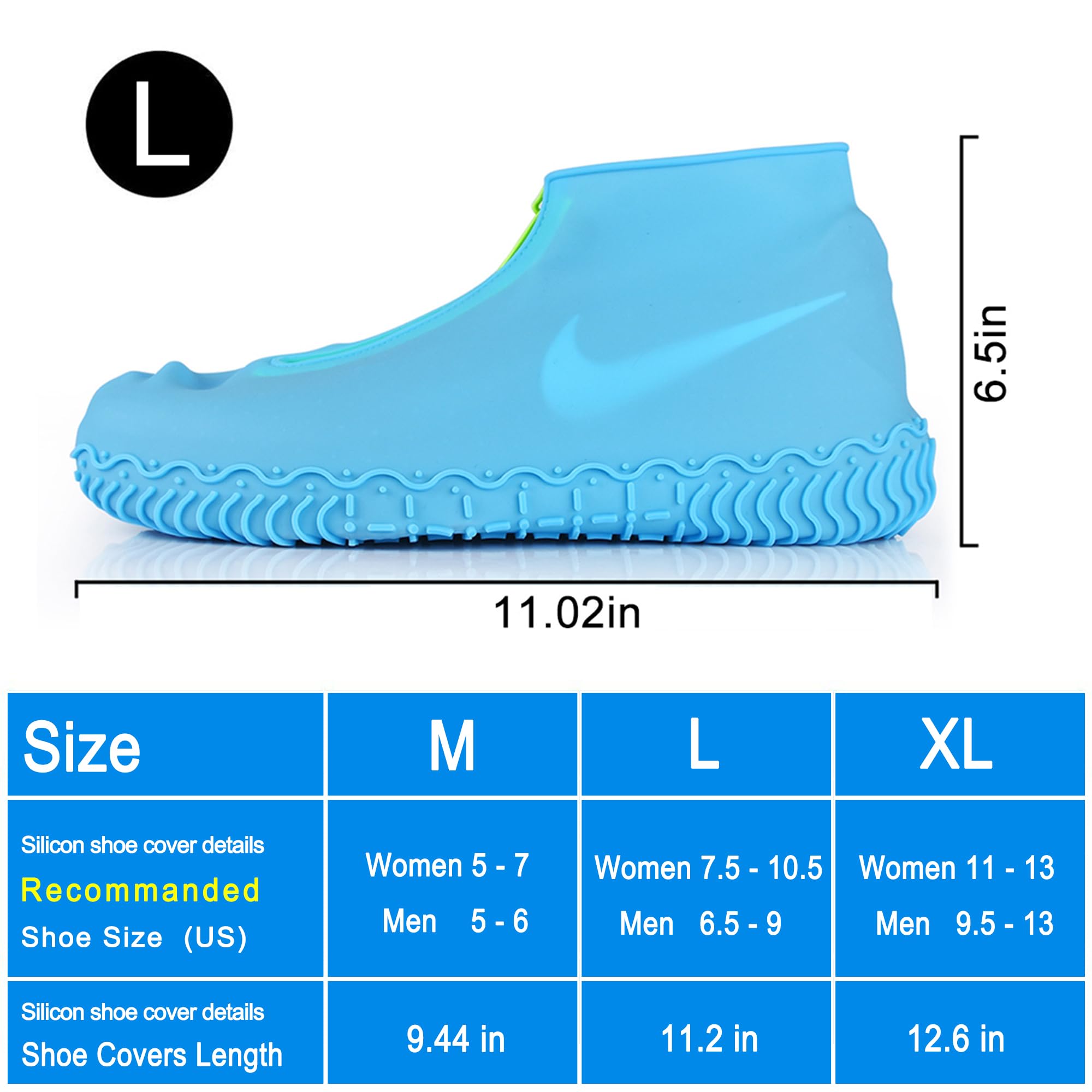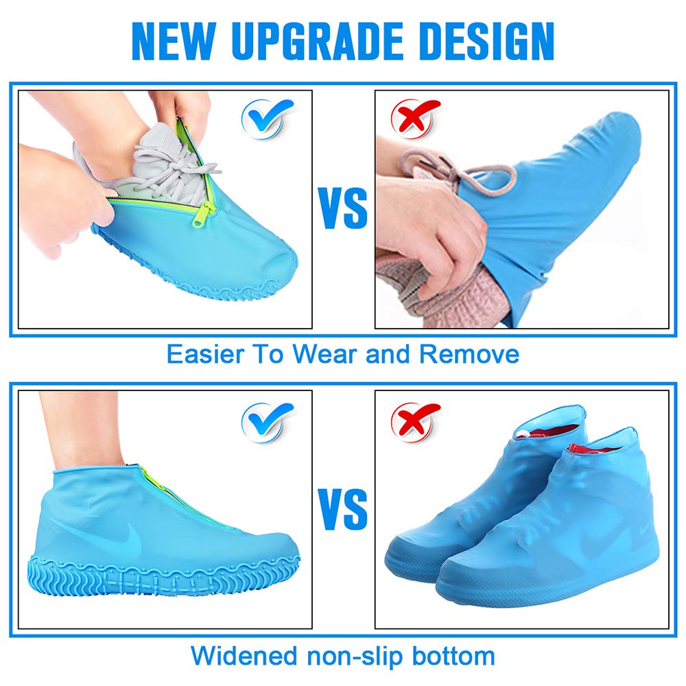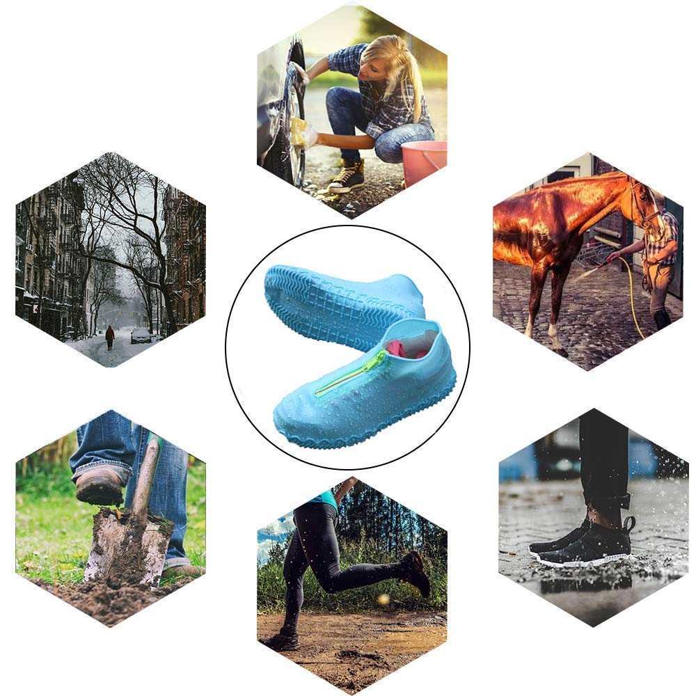 ALL-ROUND WATERPROOF, REUSABLE : Stretchable silicone And very resistant to tearing, Waterproof zipper strip design helps you to put them on and off easily,it can avoid rain or water into the shoe cover from zipper,extending the lifetime of your footwear. Waterproof shoe cover no need to take hundreds of shoe & boot covers, simple to wear silicone waterproof cover just spend one minute.
