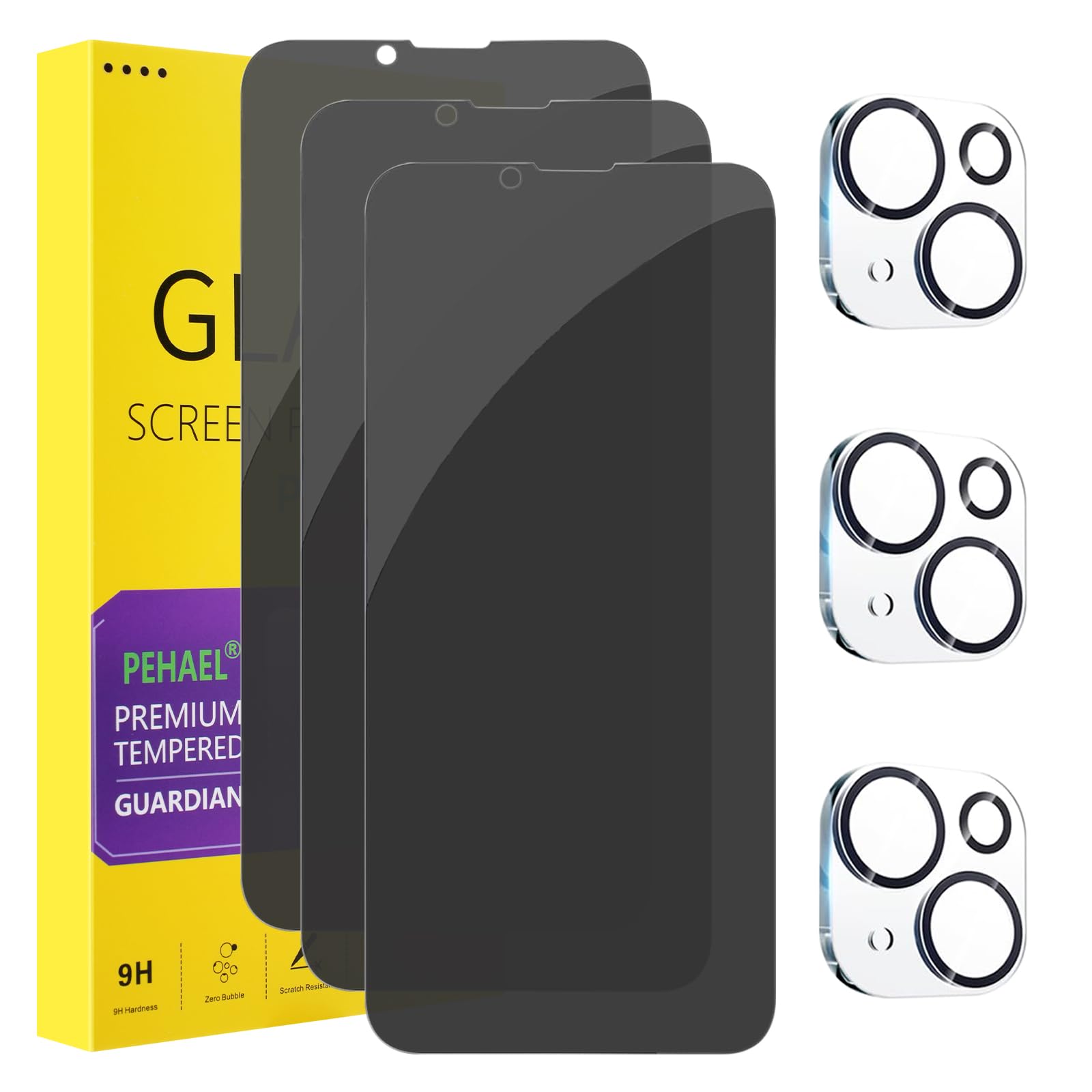 [Designed for iPhone 13 Mini] - PEHAEL's screen protector is specially designed for the iPhone 13 Mini 5.4 inch. Include 3 privacy screen protectors, 3 tempered camera lens protectors and a cleaning kit.