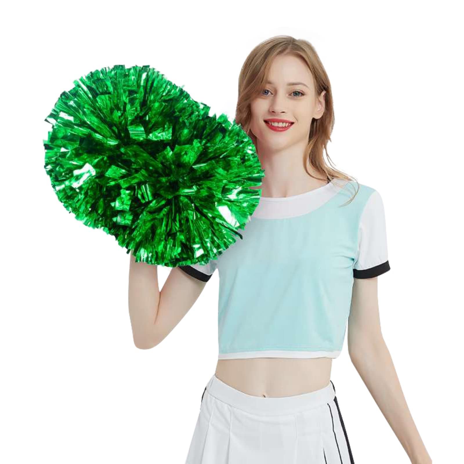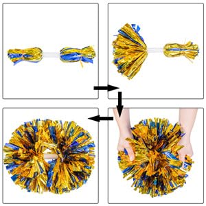 Quality Material:These cheerleader pom poms with white handle are made of metallic plastic. No matter toddlers both adults will like these pom poms at first sight. Lightweight and reusable.