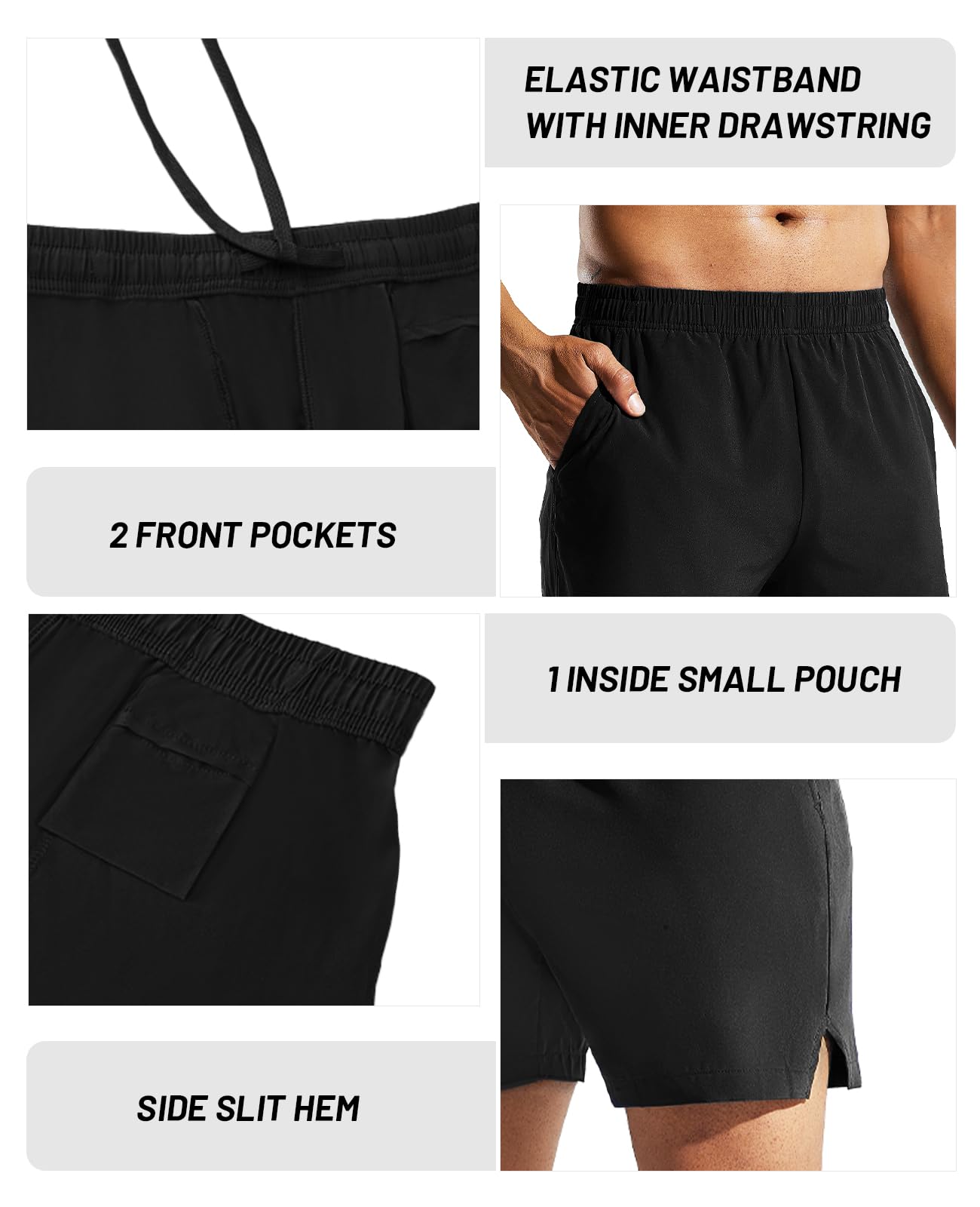 Quick Dry & Breathable: Mens workout athletic Shorts are made of quick-drying fabric, high-tech moisture wicking design that makes sure you won't feel stuffy, maximum comfort allows you to go all out while exercising