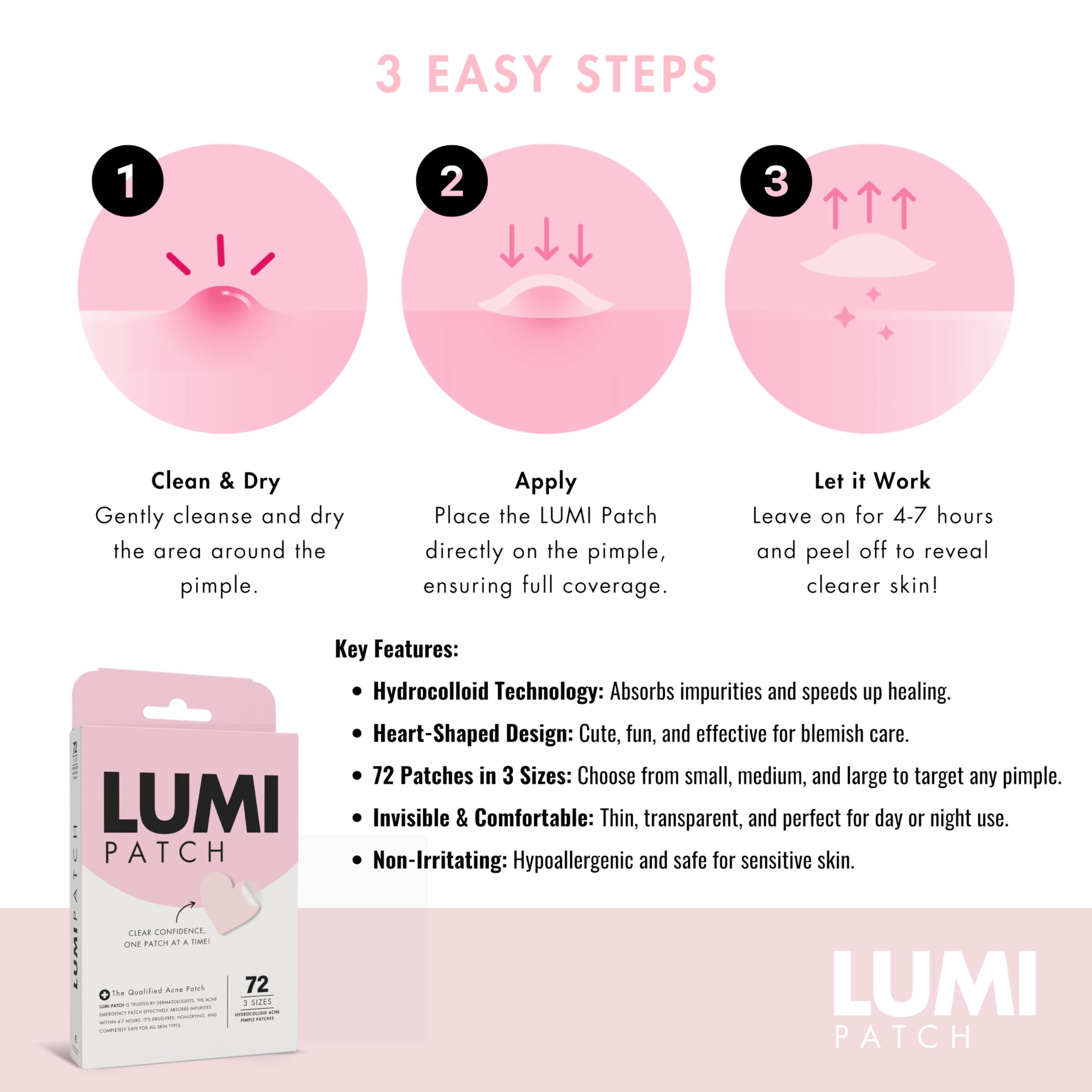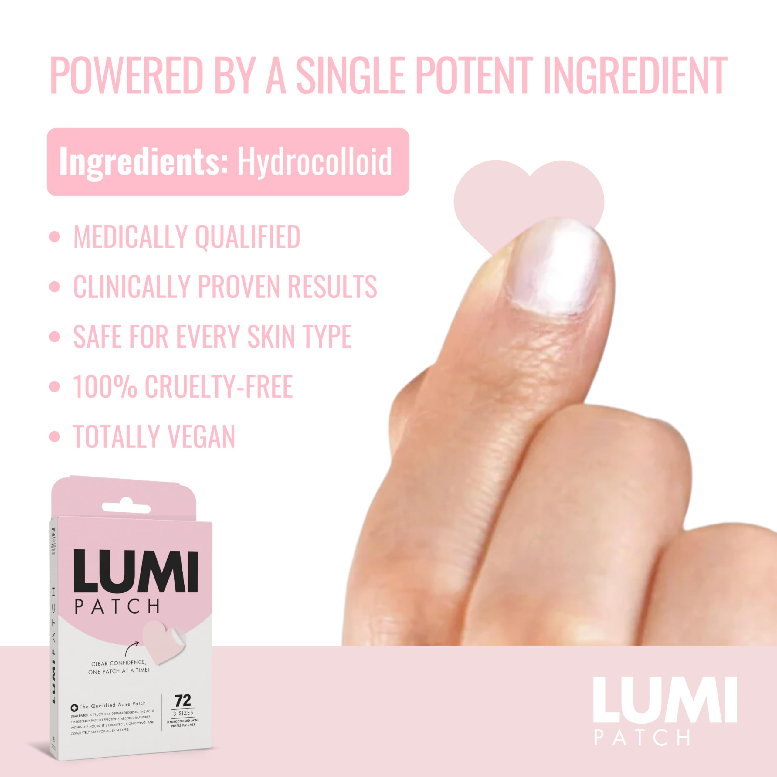 Dermatologist Approved: LUMI hydrocolloid acne patches work quickly to reduce redness, swelling, and blemishes, providing a professional-grade solution for clear skin. Trusted by dermatologists for effective pimple care.
