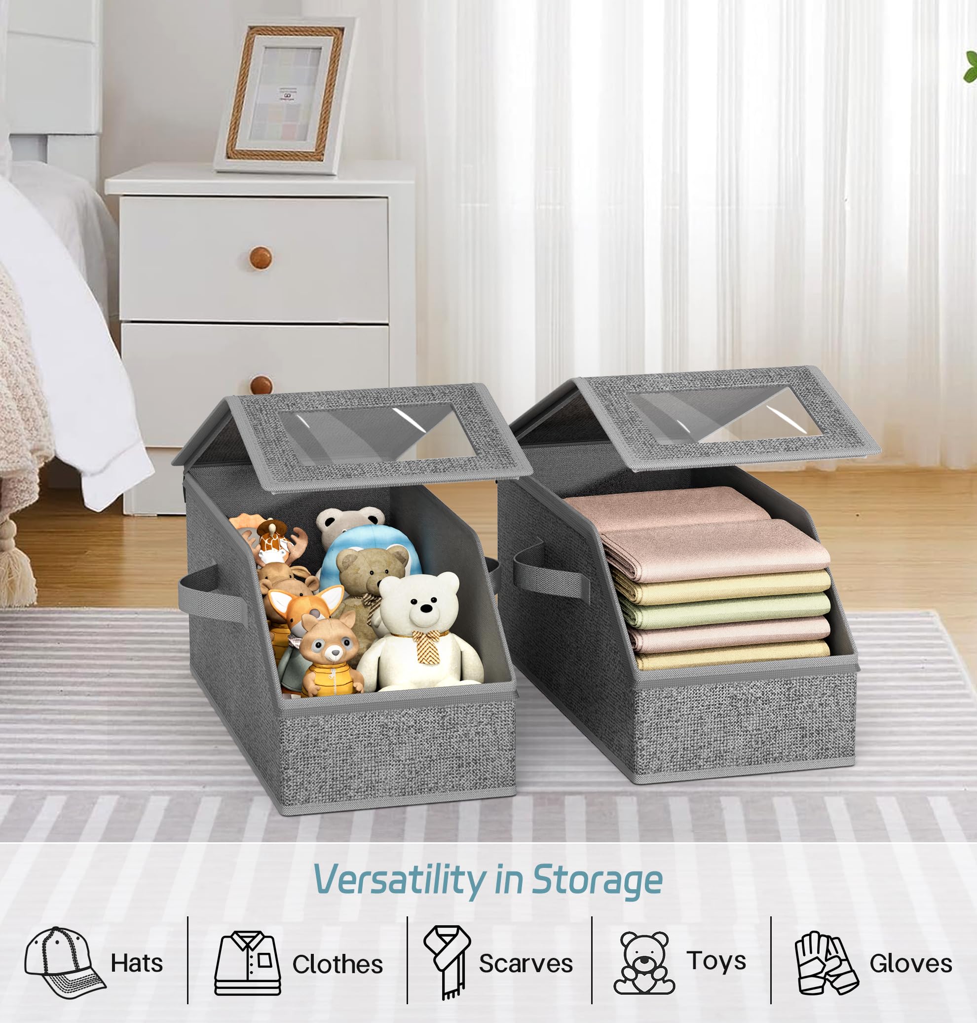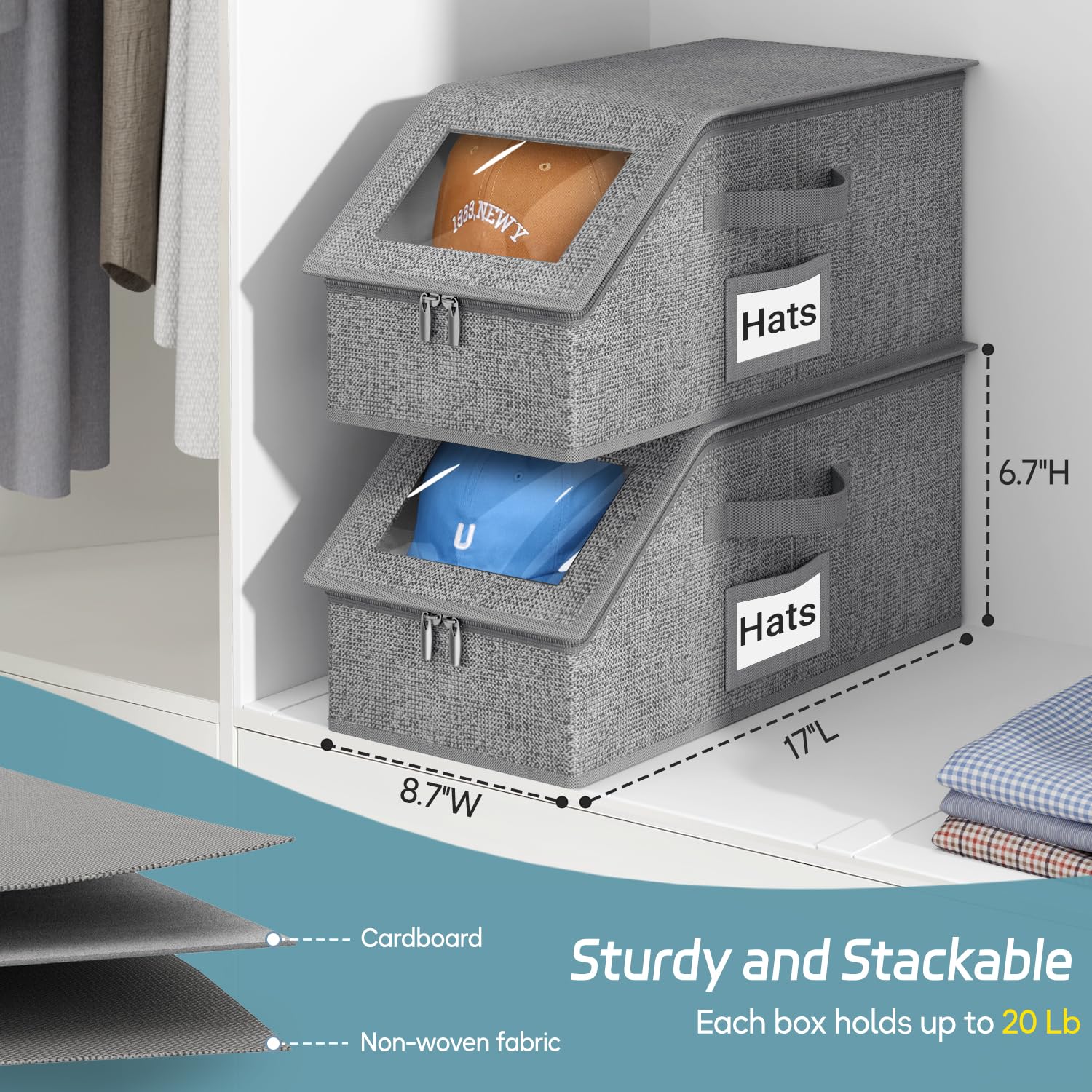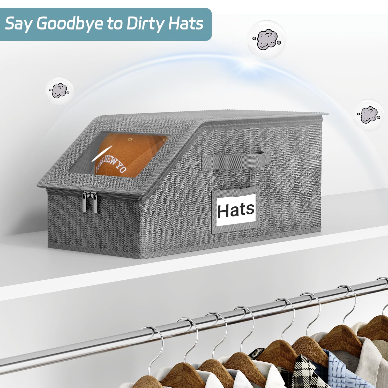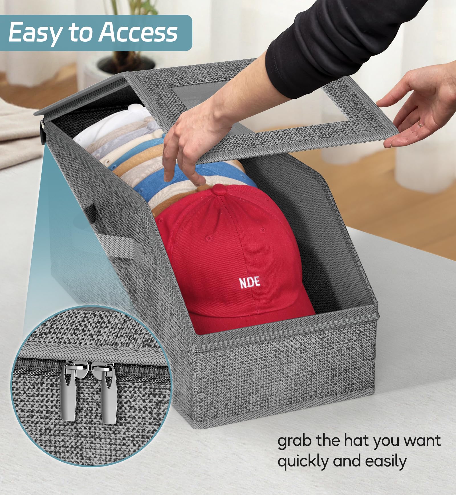 【Versatile Uses】: Hat organizer box can also convenient to store your miscellaneous items such as clothing, bedding, books, toys, scarves and more, side name card window for easy identification, can be stored in the bedroom, living room, wardrobe or car trunk.