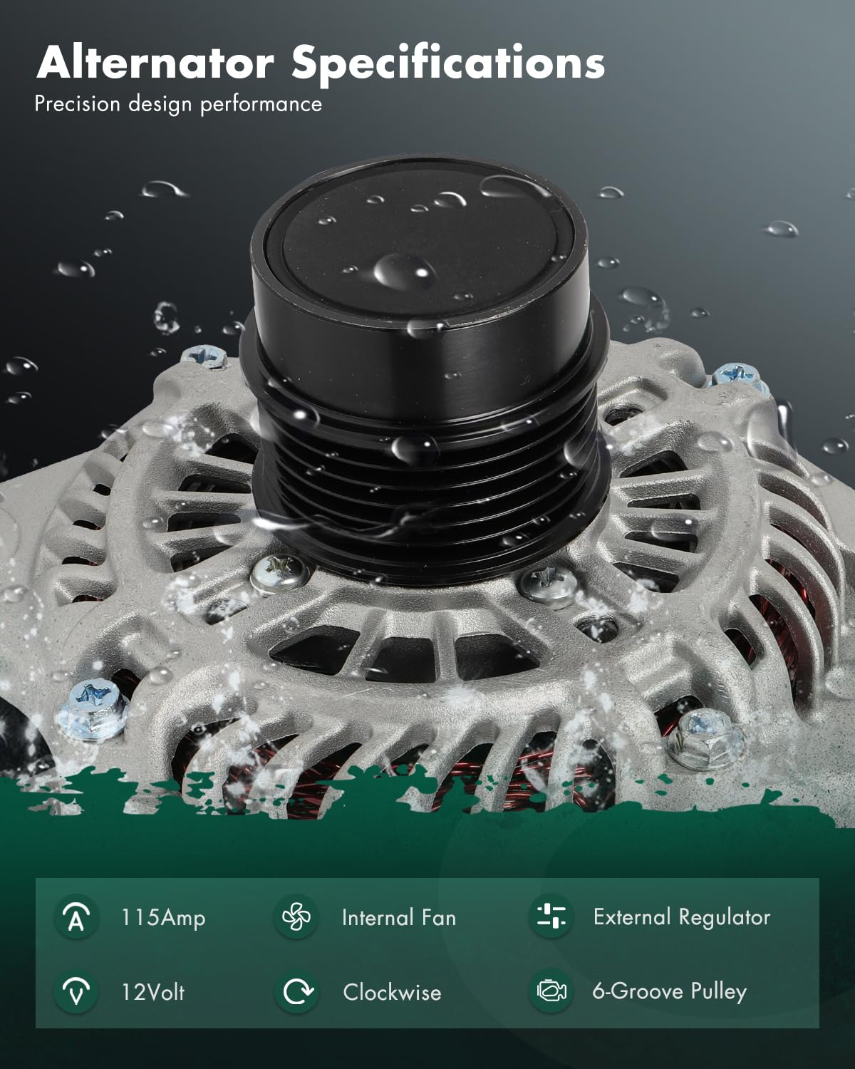 【High-Performance Specifications】 – Engineered with Voltage: 12V; Amperage: 115Amp; Rotation: CW (Clockwise); Regulator: ER (External Regulator) ; Fan: IF (Internal Fan); Grooves: 6-Groove Pulley; Condition: New, high output alternator is compact and lightweight, fully compatible with the electronic system of your vehicle, this automotive replacement alternator delivers reliable power for your car, it’s built to meet the demands of modern vehicles