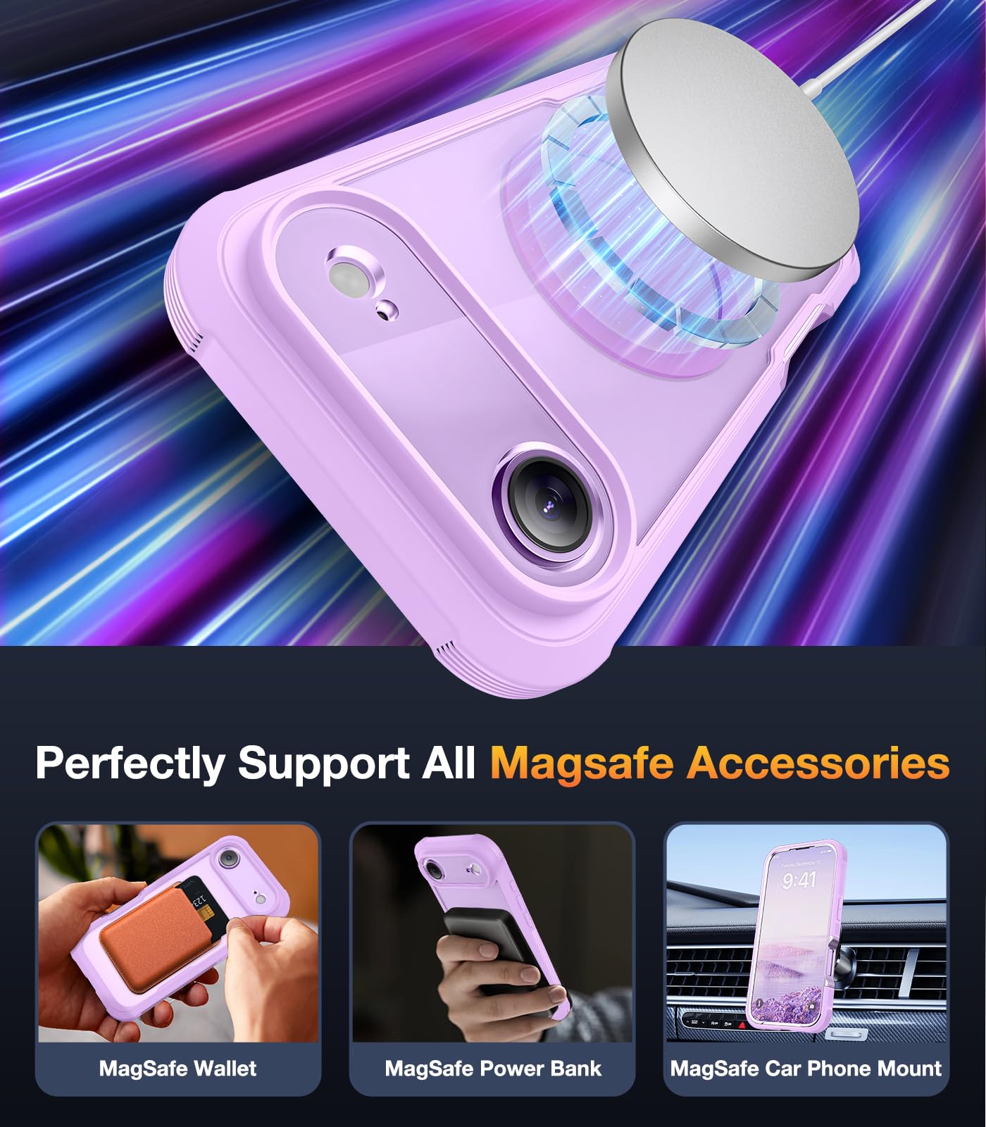 【Fit All Magnet Accessories】 Built in 2025 upgraded generation magnet ring, locking and compatible with magsafe accessories, wireless charging is faster, easier, and safer. Works 100% with wireless charging pad, don't need to remove the case.