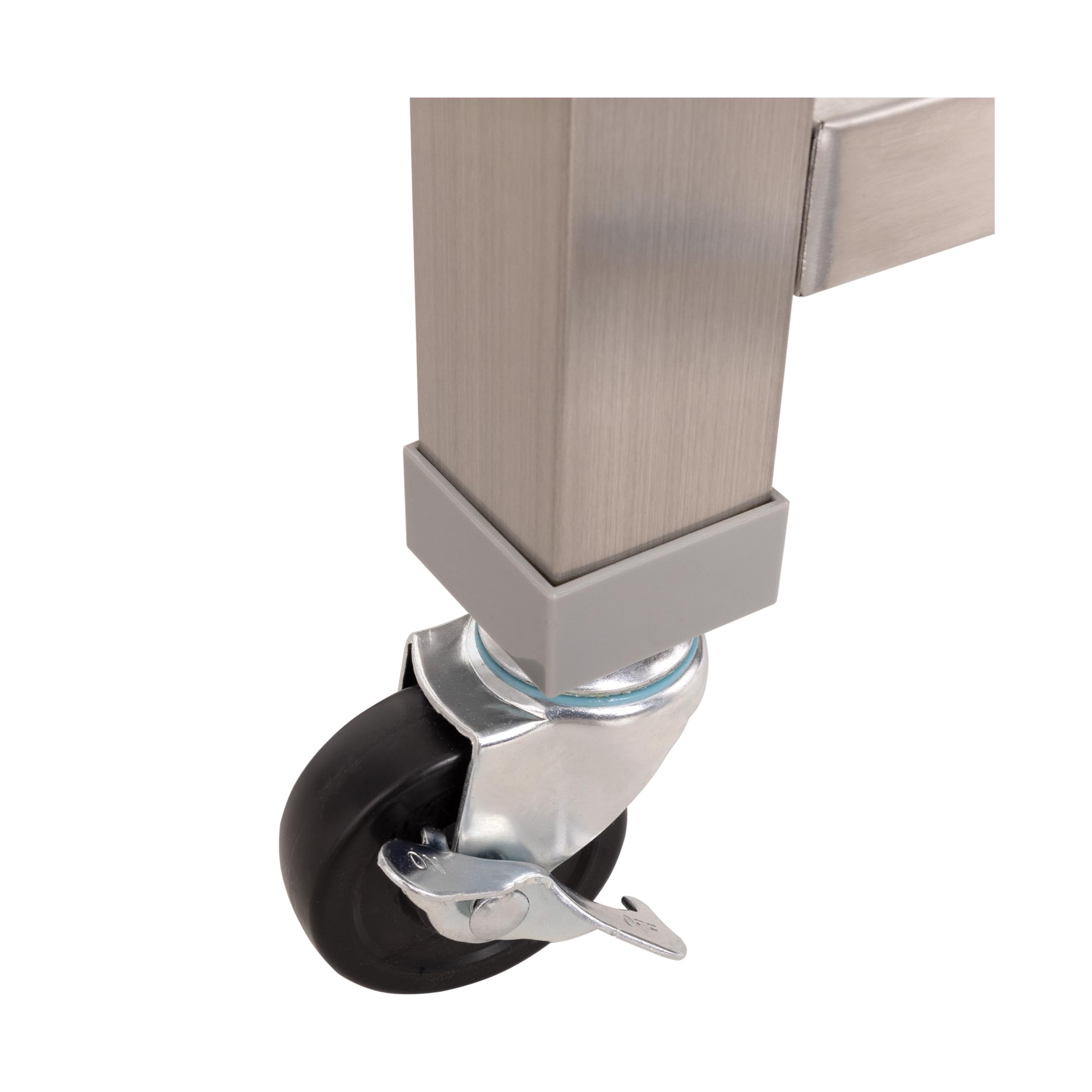 SOLID WOOD TOP – Worktable cart features a 1.5” thick polyurethane-coated solid wood top.