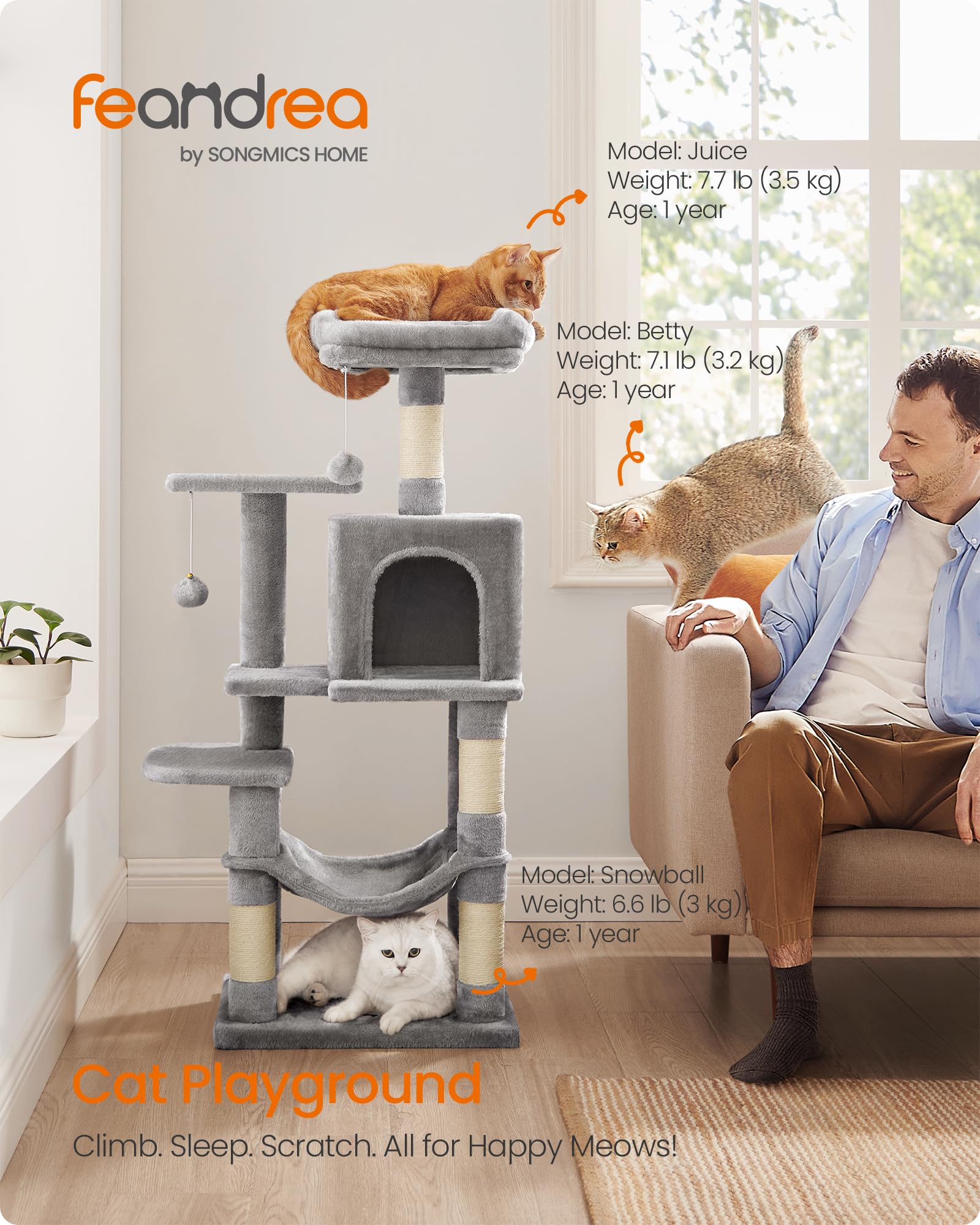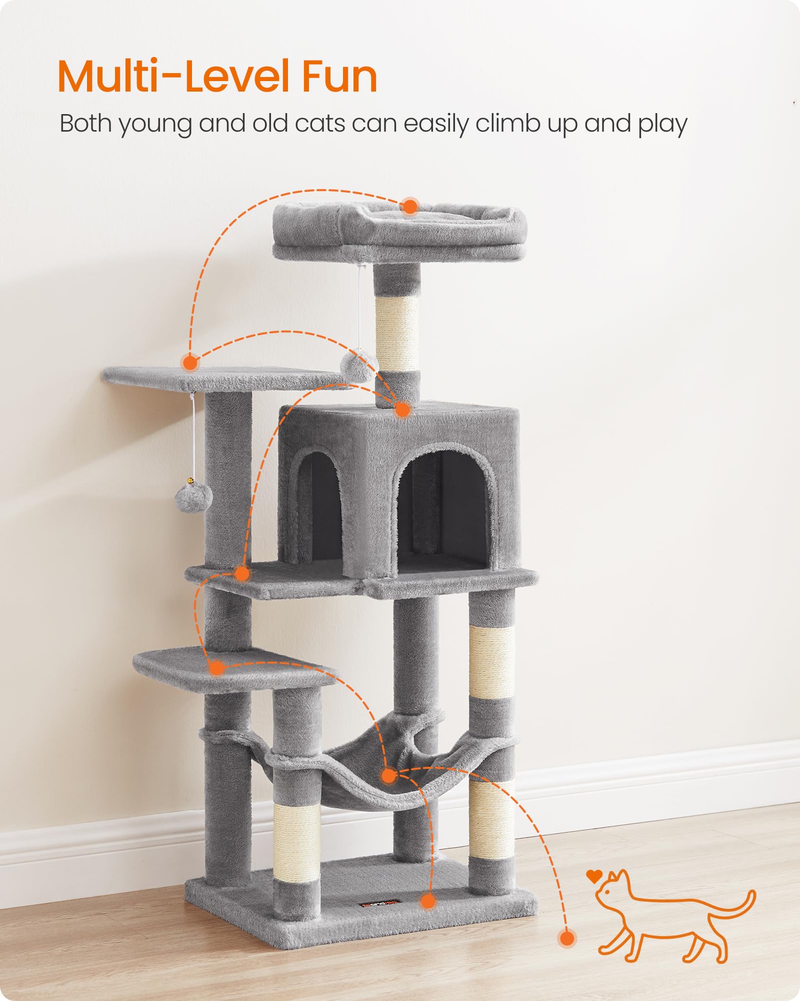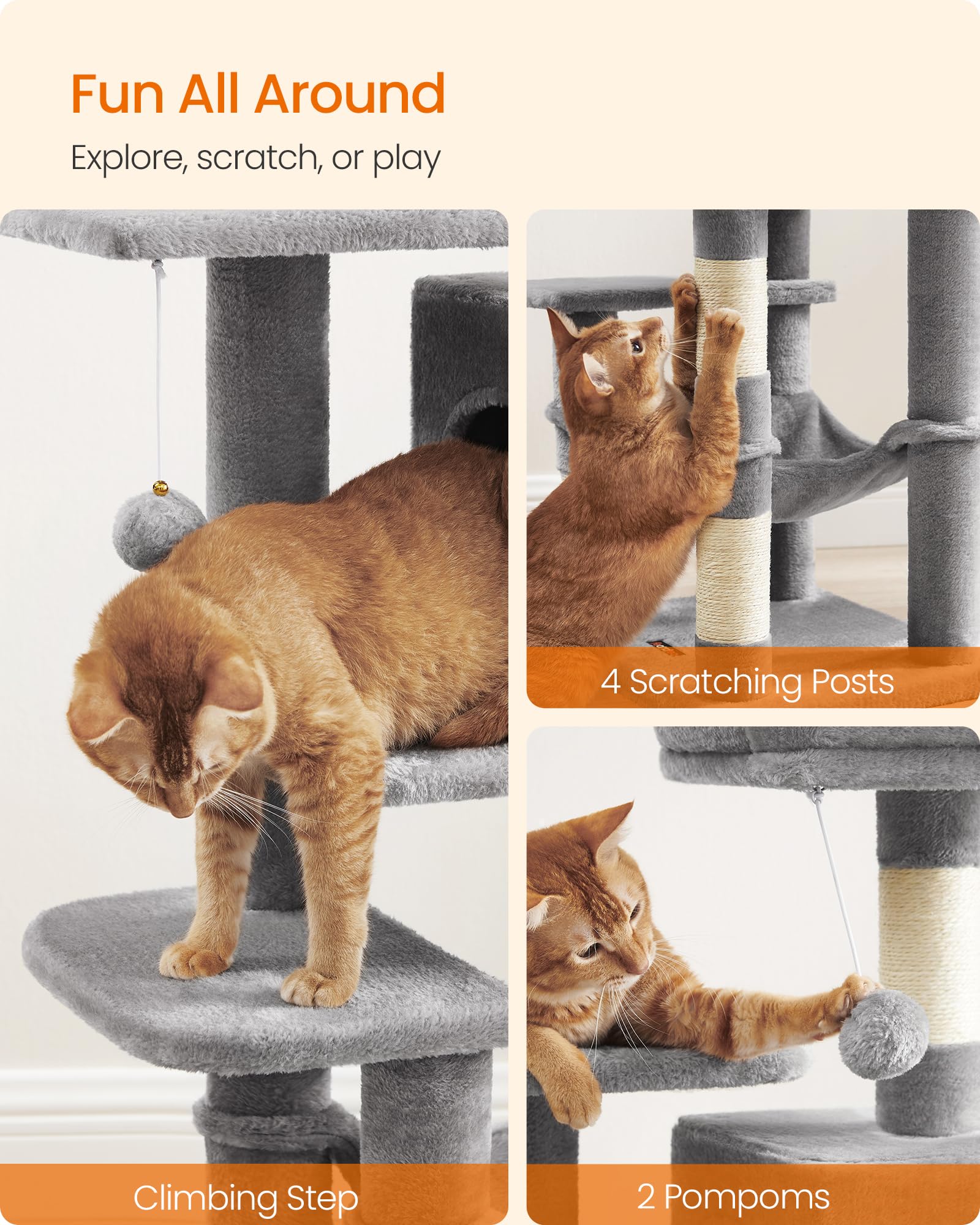 Easy-Peasy Assembly: Designed with a simple structure with universal screws, as well as an included Allen key, this cat play tower can be effortlessly assembled by one person