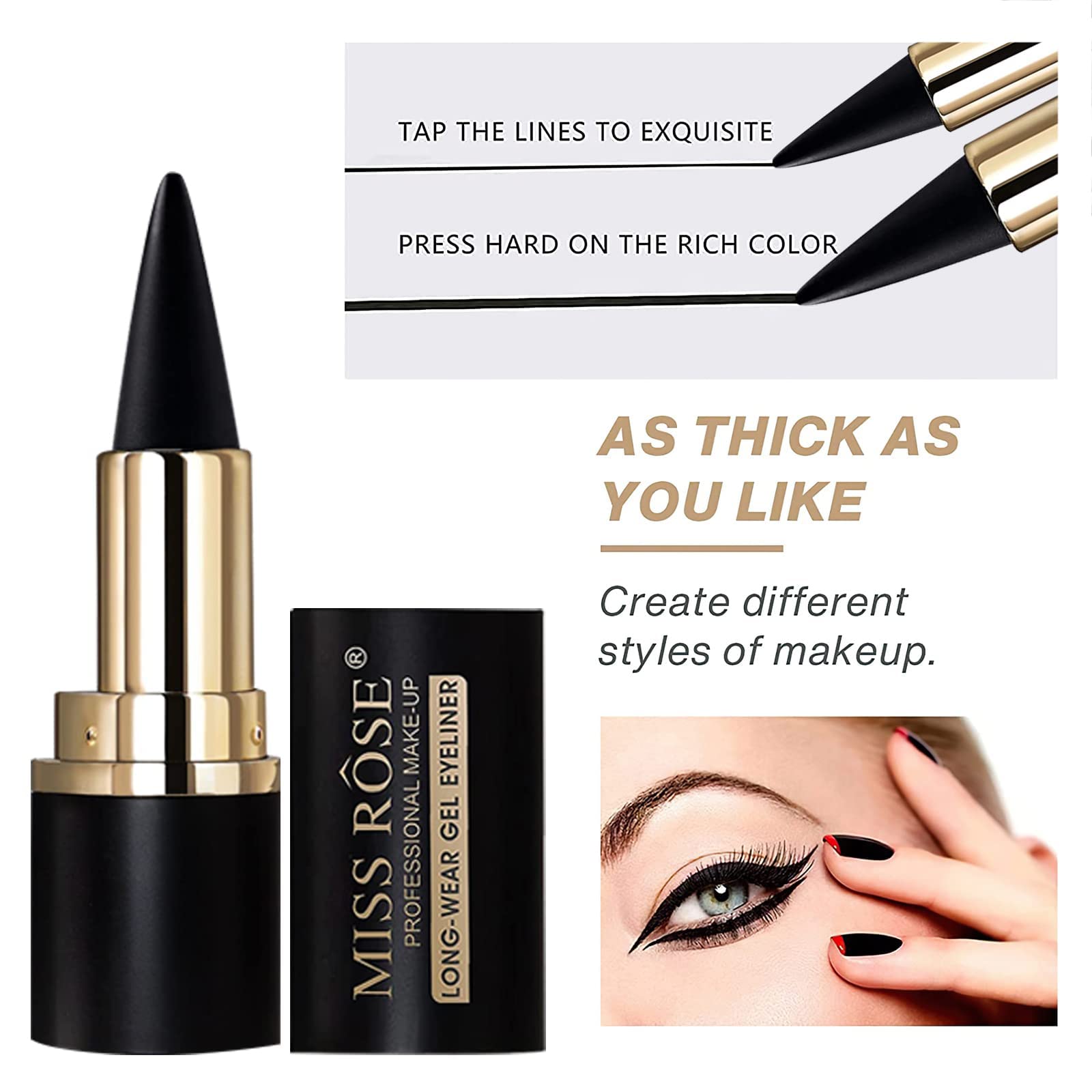 đ¤ăUNIQUE LIPSTICK SHAPE DESIGNă- This gel eyeliner pencil stick has a stylish lipstick-shaped appearance and a rotating design, easy to carry and use.You can choose to directly control the intensity of the drawing or use the eyeliner brush to draw according to your needs for different makeup such as eye shadow or eyeliner,or for the thick and fine lines.