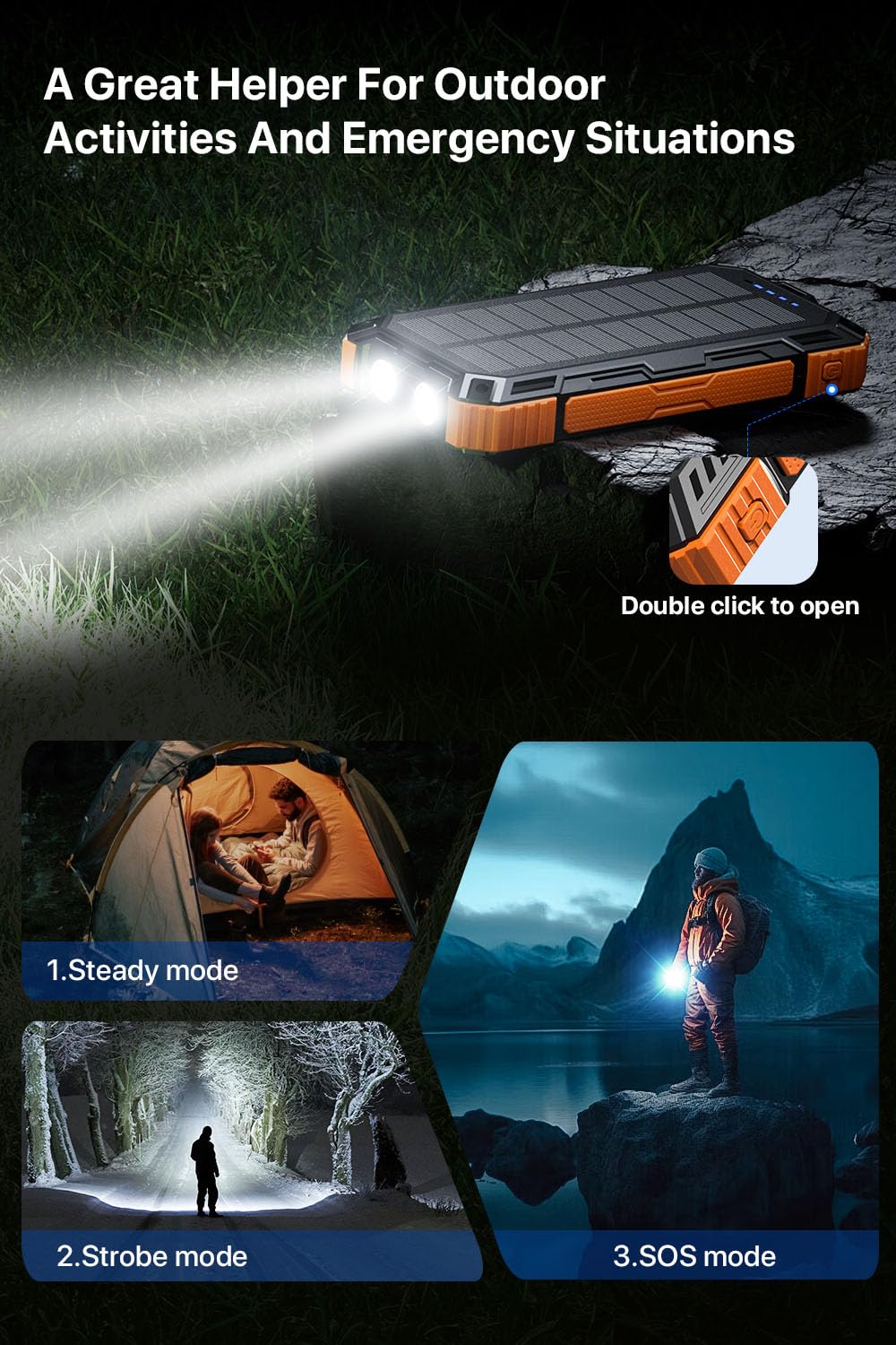 【Trusted Solar Power Pioneer for 10+ Years】With over a decade of innovation in solar power banks and trusted by millions of adventurers worldwide, JSKEI is your proven partner for off-grid energy. Each unit is built with premium, impact-resistant materials and undergoes rigorous global quality testing, ensuring safe and reliable performance wherever your journey takes you. From remote expeditions to everyday emergencies, choose the brand recognized around the world for durability and trust.