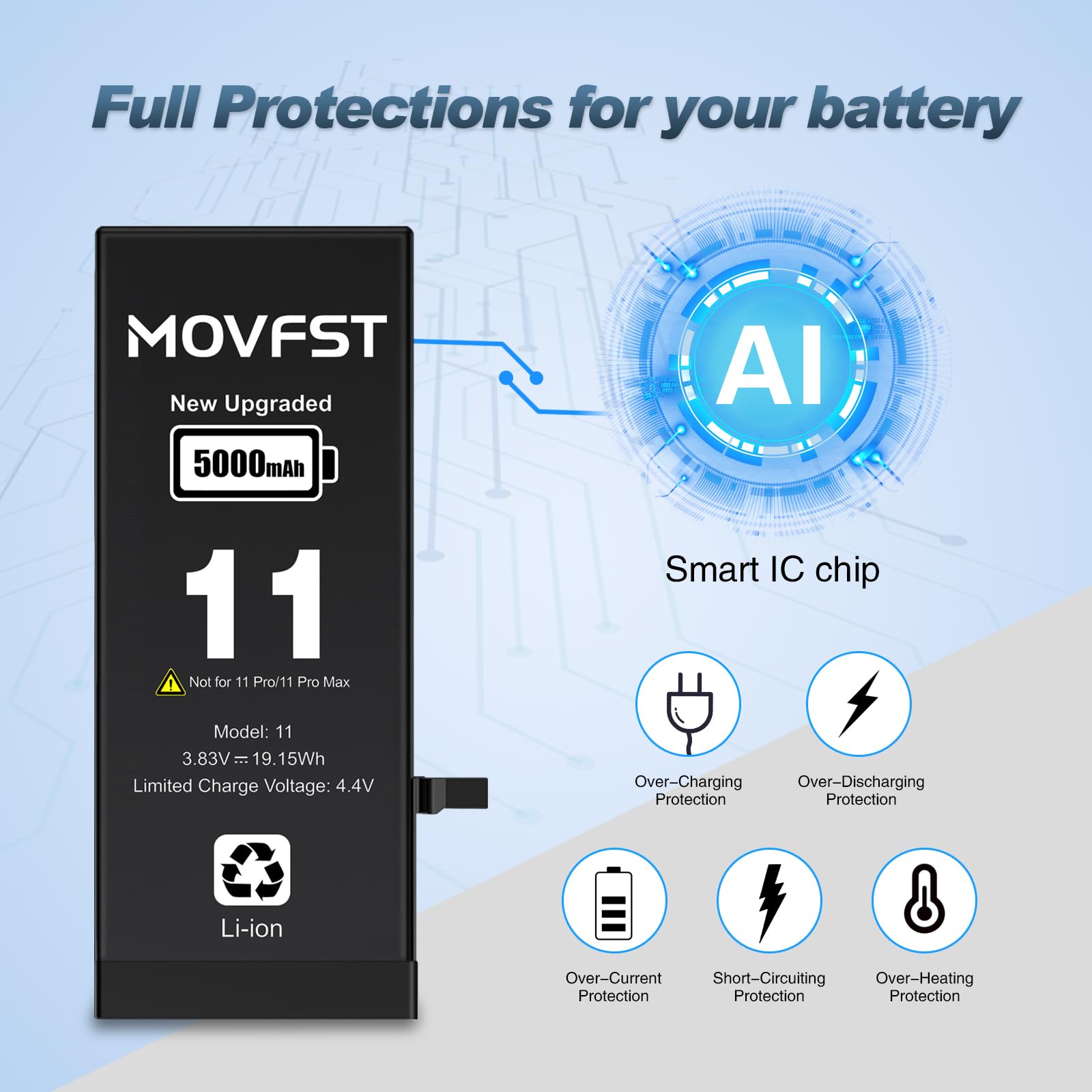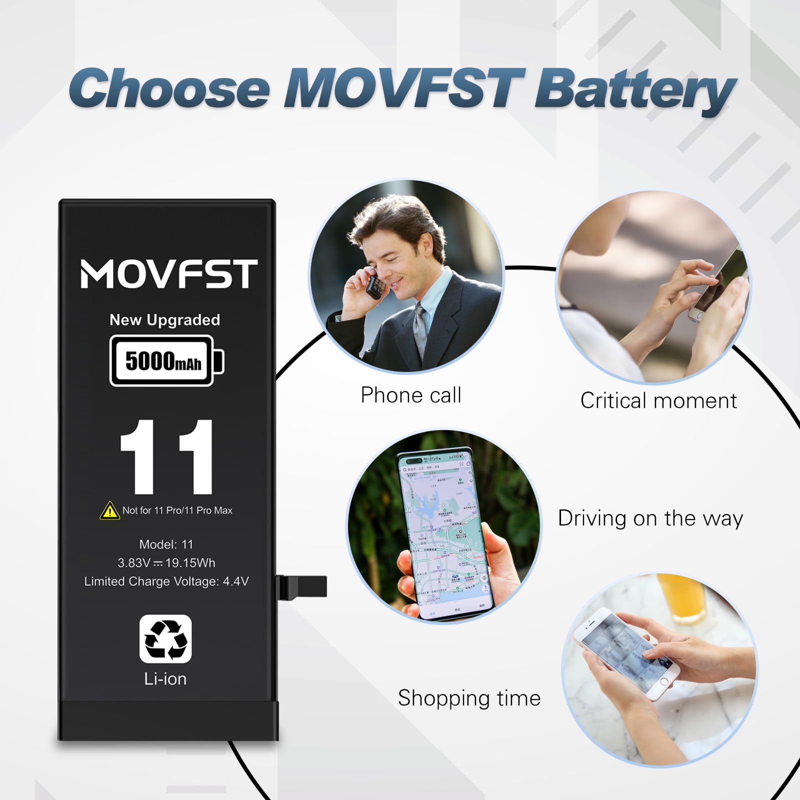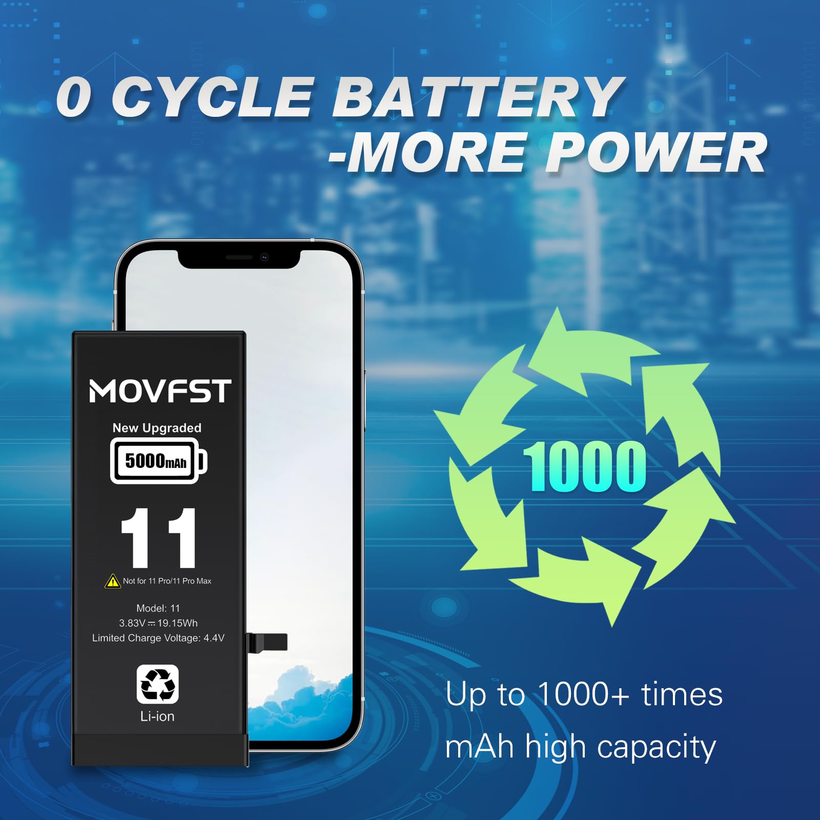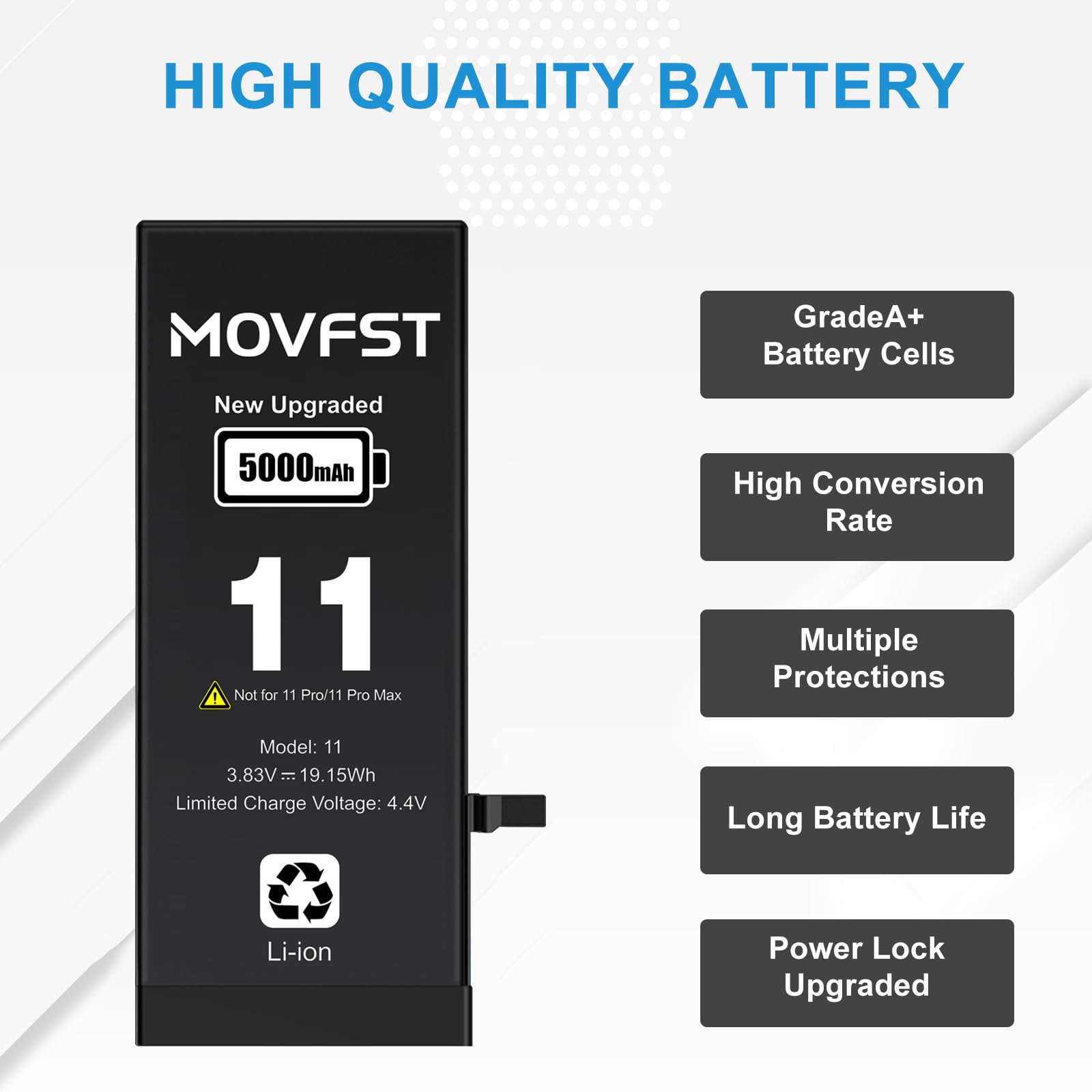 HIGH CAPACITY --- This replacement battery for iPhone 11 is 5000mAh high capacity, with more power than original battery.You can use your phone for a longer time!