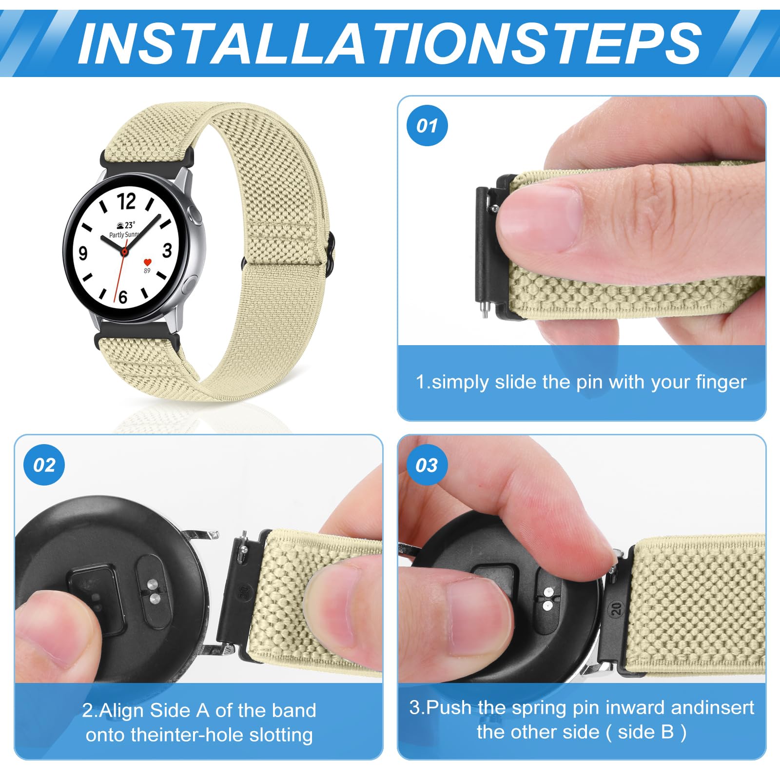 【Stretchy & Adjustable】 - 16mm 18mm 19mm 20mm 22mm 24mm elastic watch band gives a nice snug fit and perfectly match with your wrist.Easily slide adjust to fit your wrist, the innovative buckle makes the band length adjustable from 5.5"-9.8" (140mm-250mm).