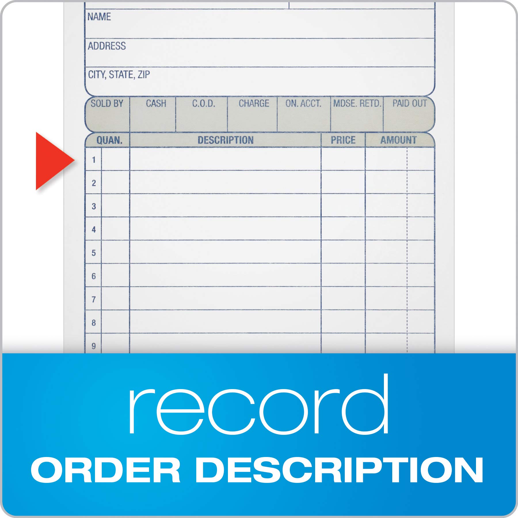 Adams order books provide a professional 2-Part carbonless invoice – give customers the perforated white top copy, keep the Canary copy for your records. The purchase order form provides customer information, shipping address, salesperson, payment Type, and the price and quantities of items ordered. A wraparound back cover Tucks between pages so you don't write through multiple sets. The blank space in the header Leaves room for a company stamp, and the unique 6-digit receipt numbers help you easily locate orders.