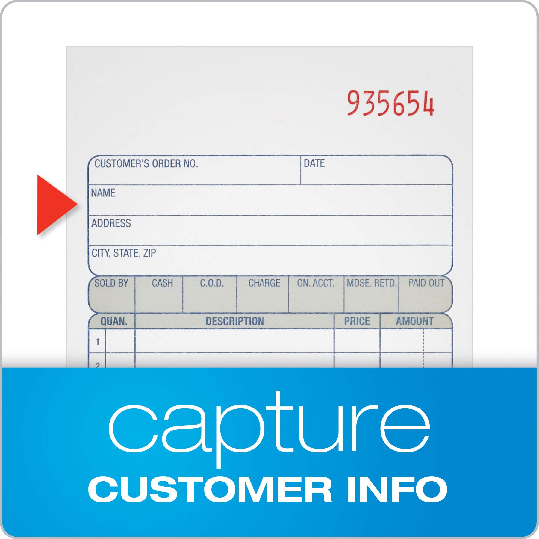 CONSECUTIVELY NUMBERED: Large 6-digit numbers in the upper right hand corner help you thumb through orders quickly