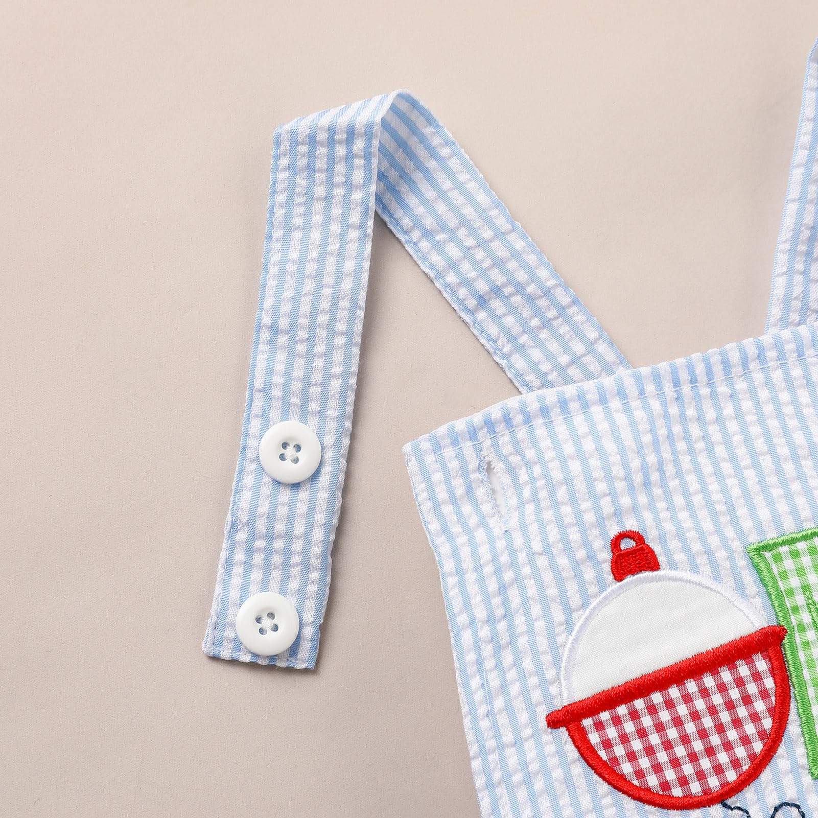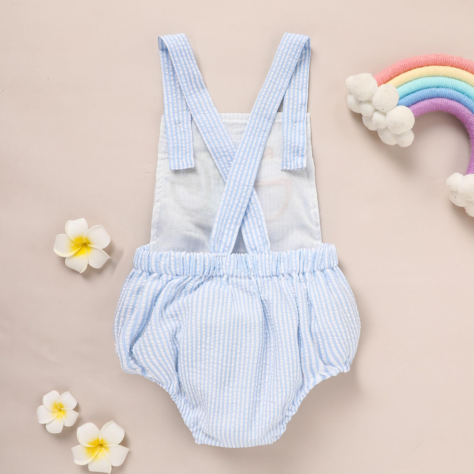 【Chic and Adorable Design】Solid color summer jumpsuit, the middle of the clothes saying "1 birthday".Covered elastic on waist of the bottoms for comfort and stretchy.