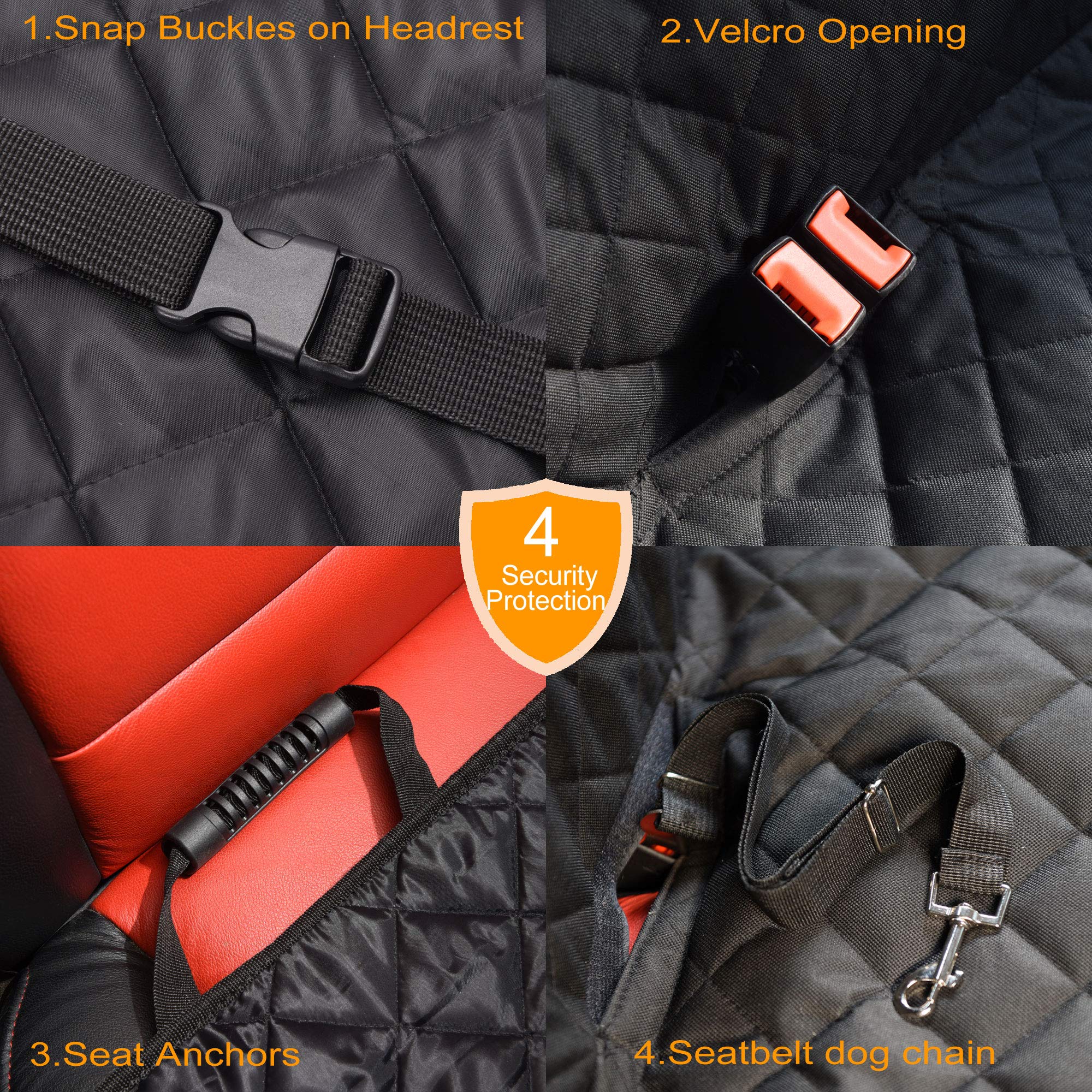 ♥Protect Your Car Seat From Scratch - This dog car seat cover could keep your car backseat clean from pets hair/fur, stains and dirt, maintain your car inside looking new. Waterproof and scratch proof car seat cover for back seat protect your car seat from the wear and tear of your pets. Perfect for family with children and pet dogs