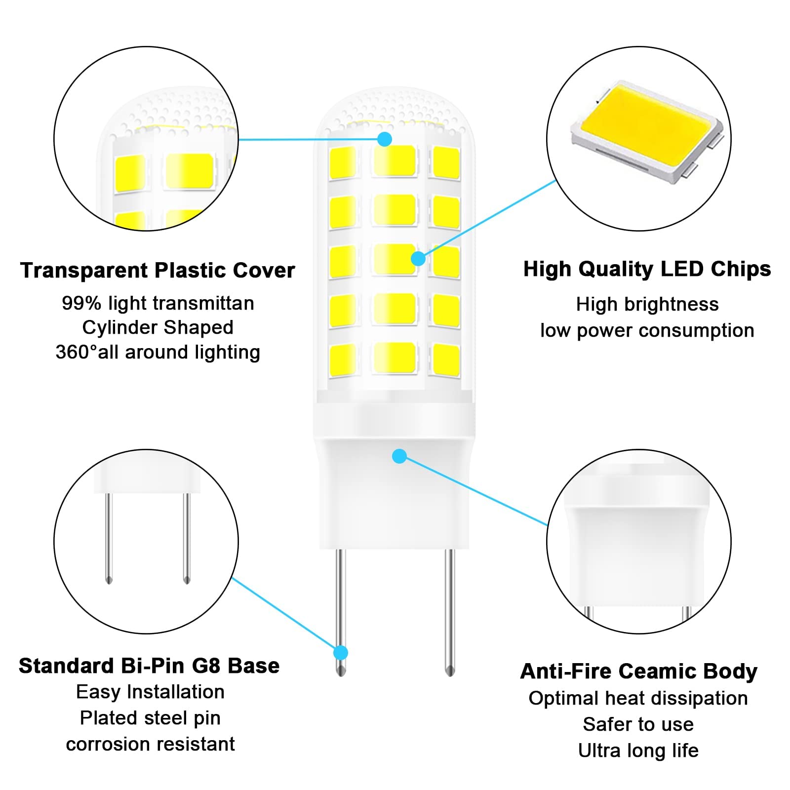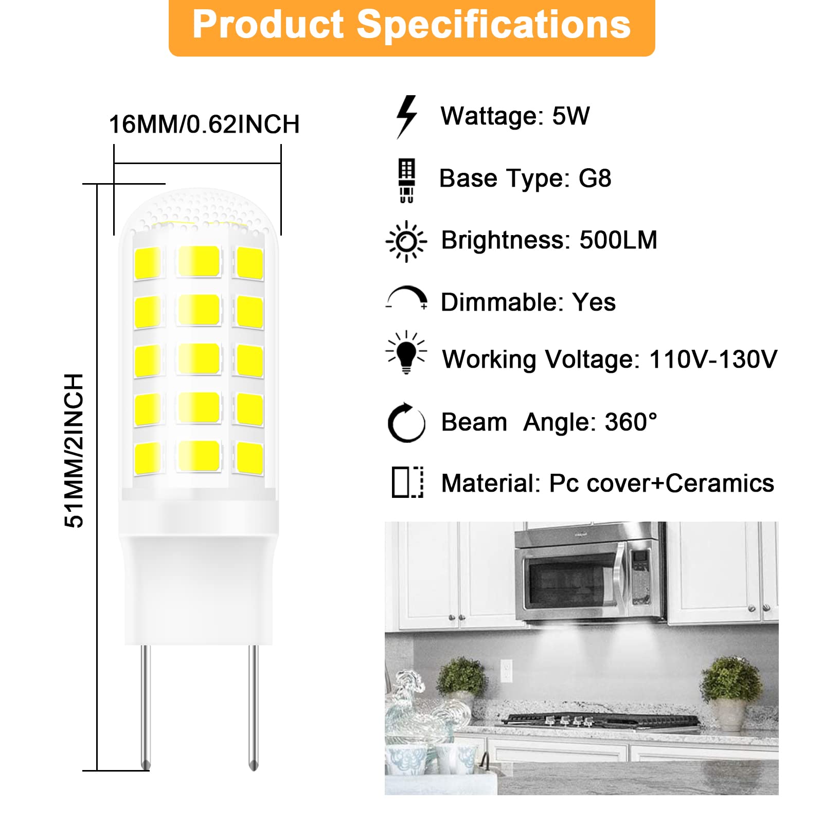 Save up to 90% on your energy bill by replacing 50 watt GE/ Samsung/ LG microwave oven light bulb with Gaormii 5w G8 led bulb. Dimmable and work with a high/low light setting.