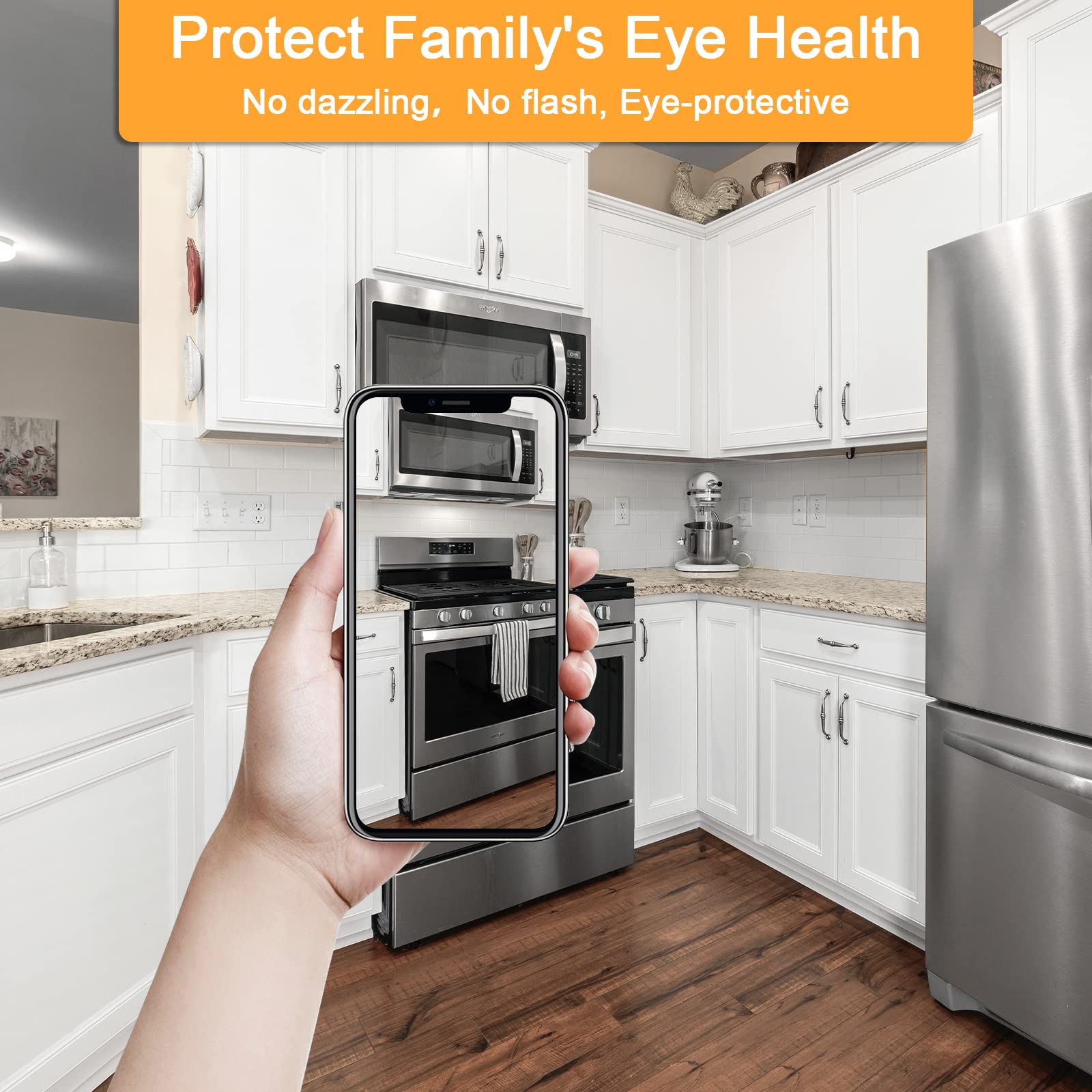 Easy to install, Instant on, No flicker, CRI 85, present object color vividly and clearly; Daylight color temperature provides very bright light, proper look to food when cooking.
