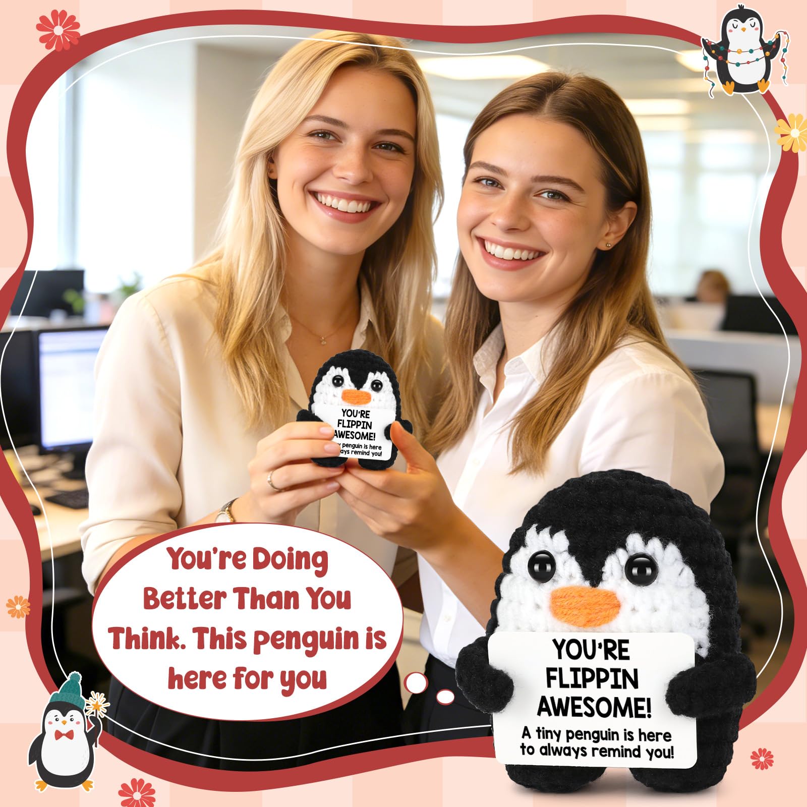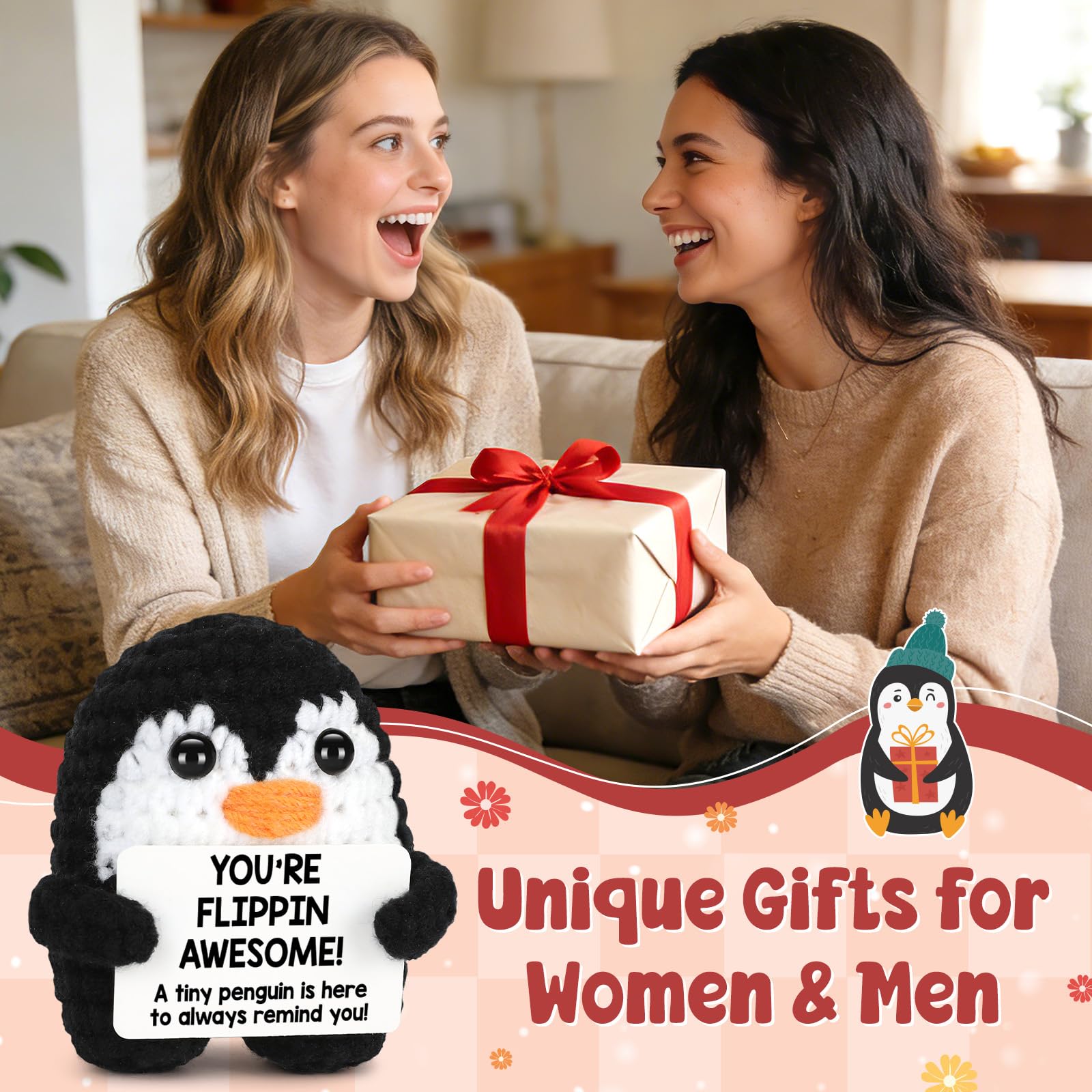 Affirmation Mothers Day Gifts for Women: Our crochet penguin comes with a motivational card that says “You’re Flippin Awesome!”, giving you a daily boost of confidence and positivity. Whenever you feel stressed or overwhelmed, the cheer-up penguin gift will encourage you with motivating energy and affirmation to keep going