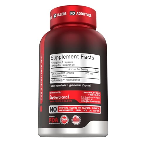 SUSTAINED NATURAL ENERGY: Boost daily energy levels without jitters; Our 1500mg Korean Red Panax Ginseng supplement enhances blood flow and combats fatigue, helping you power through work, workouts, and busy days naturally.