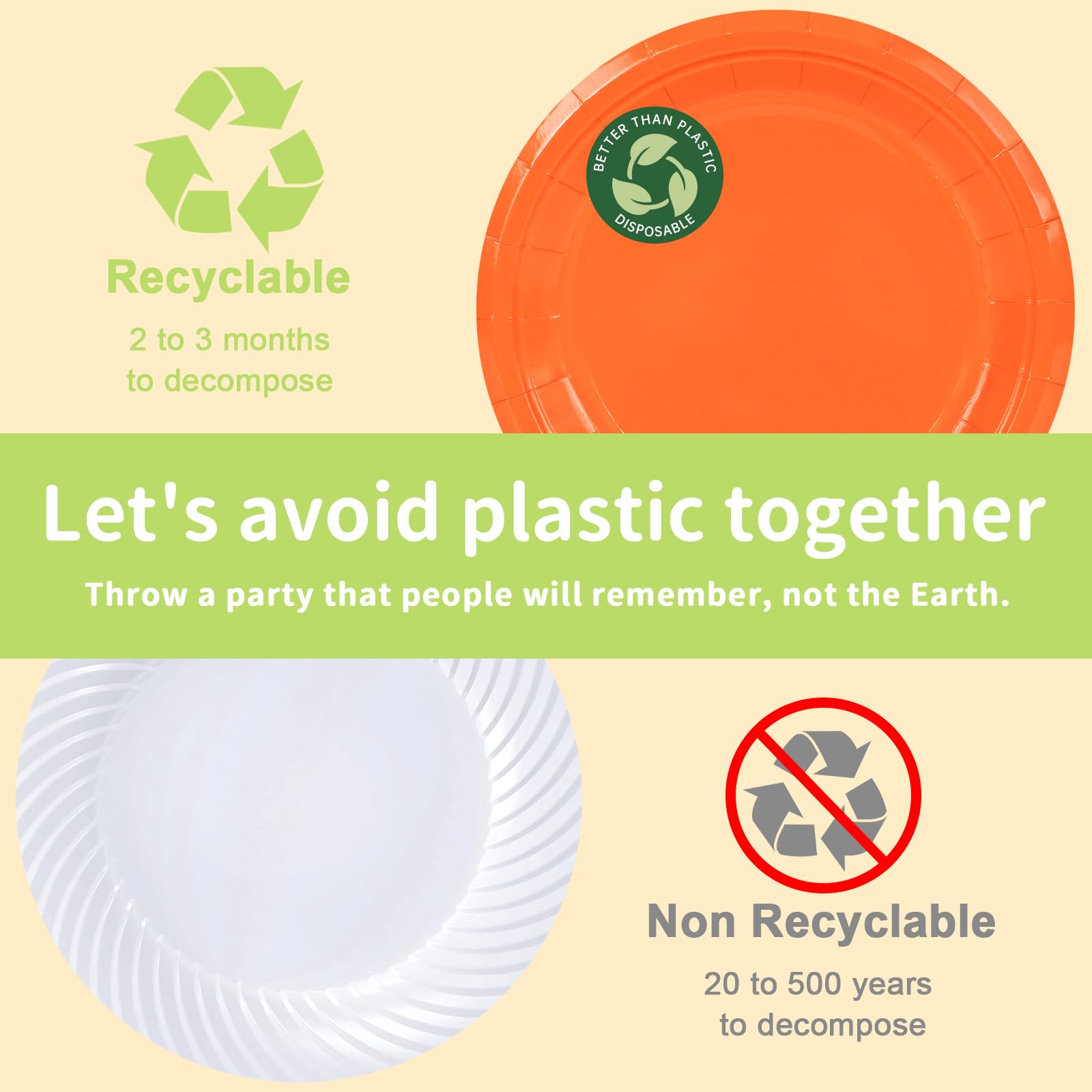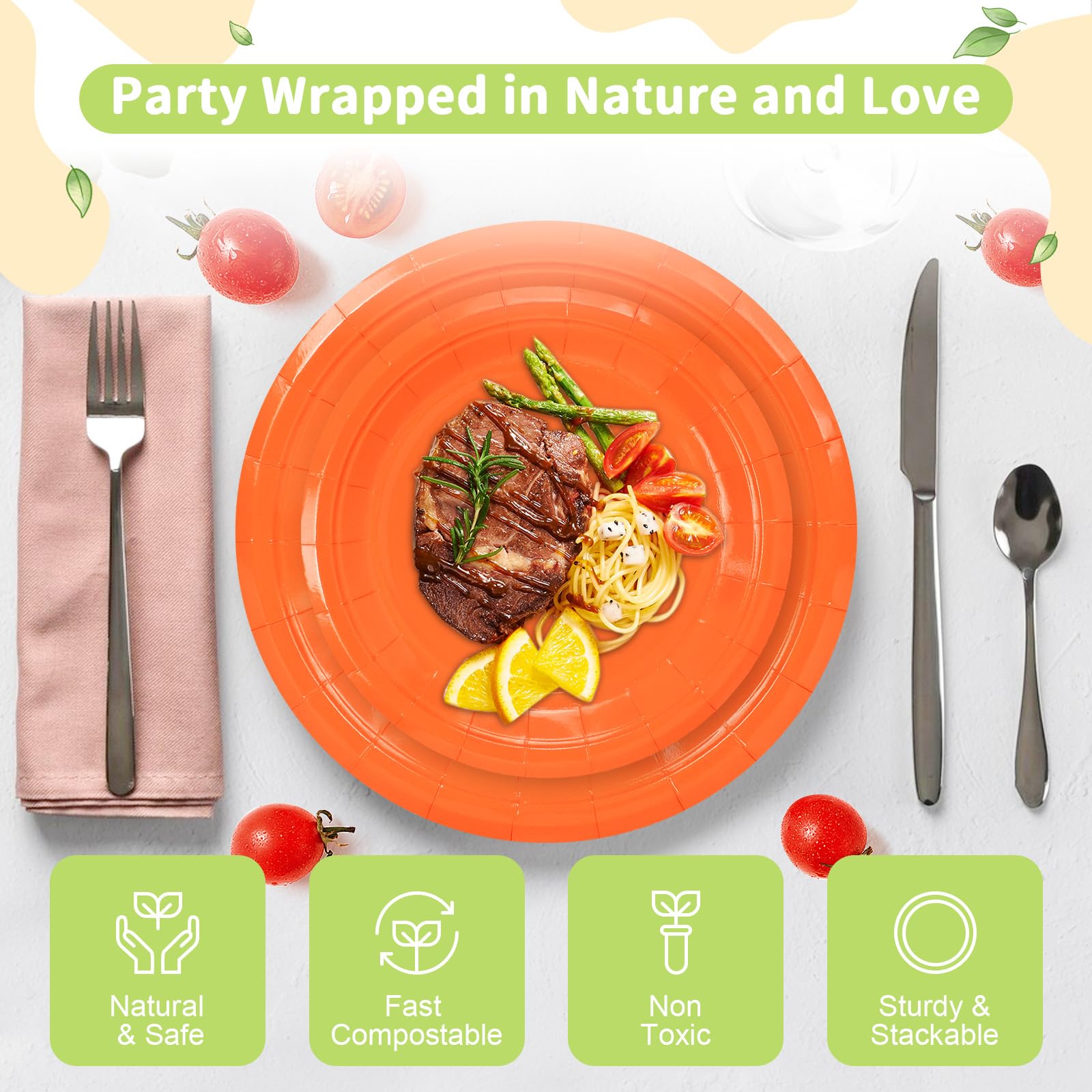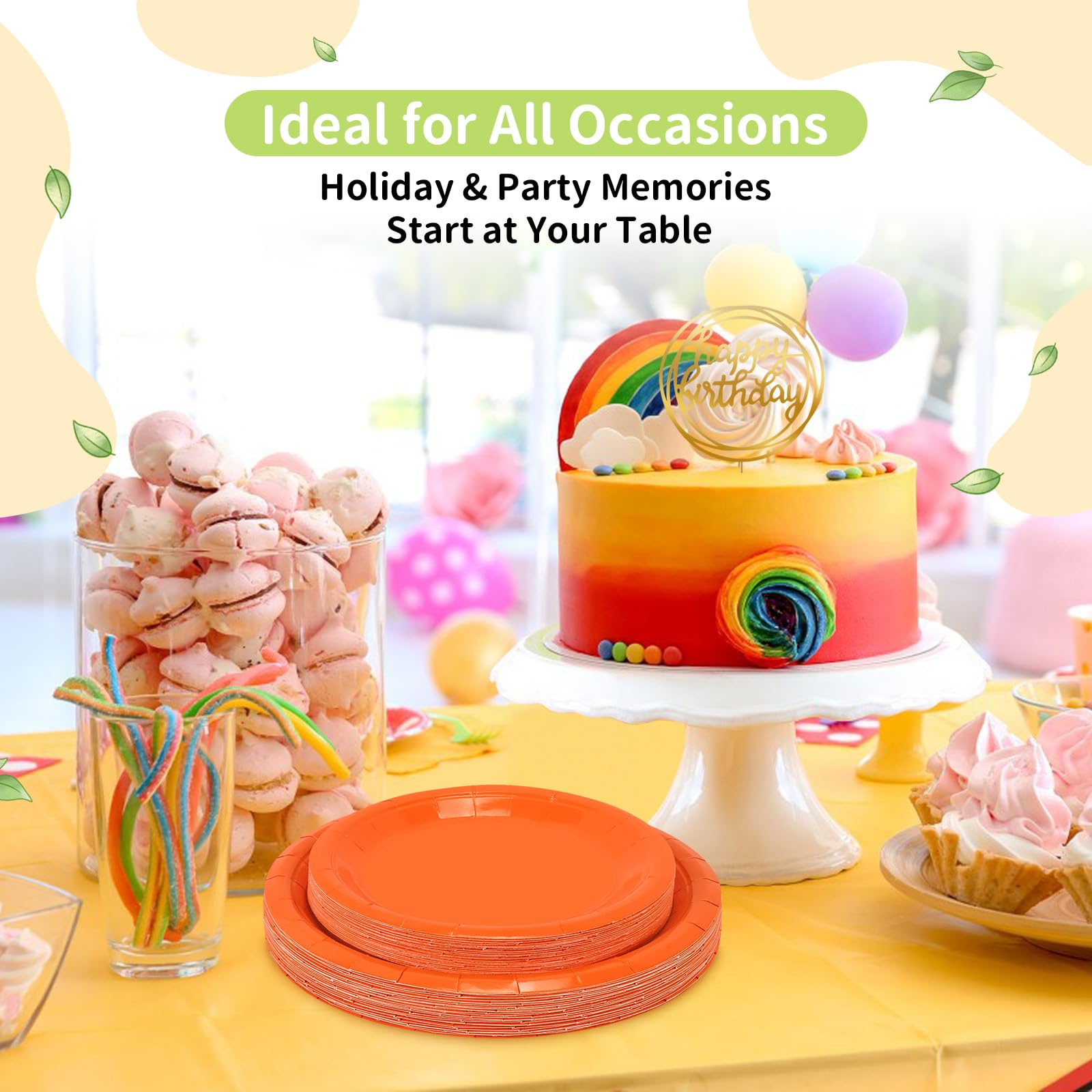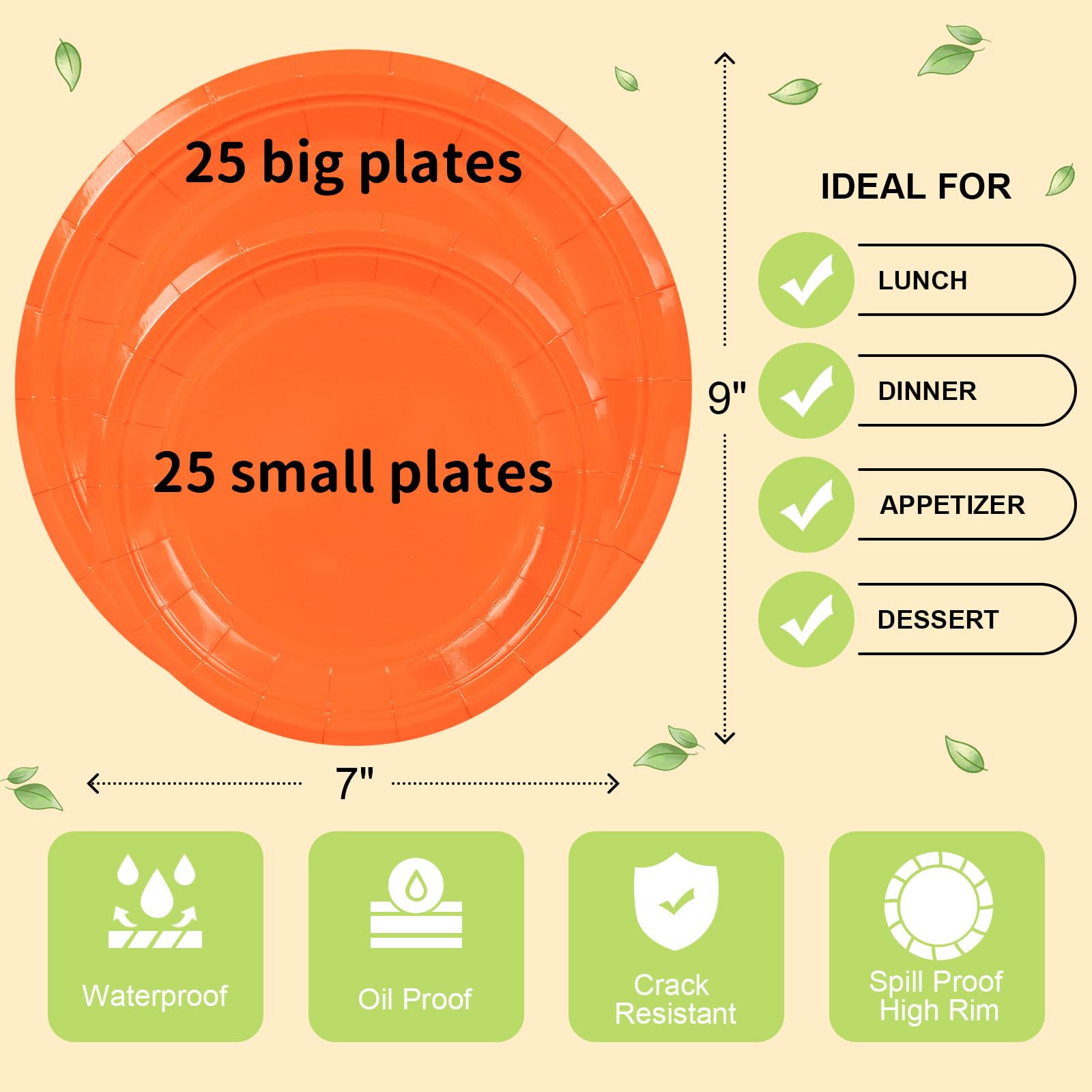 What's Included: Orange paper plates set includes 25- 7" dessert plates and 25- 9" large party plates.