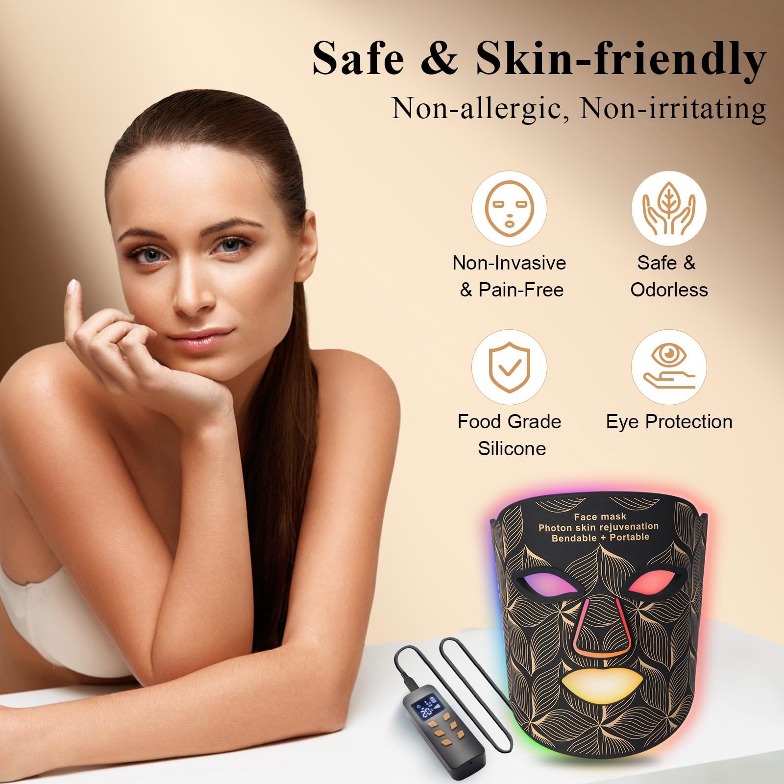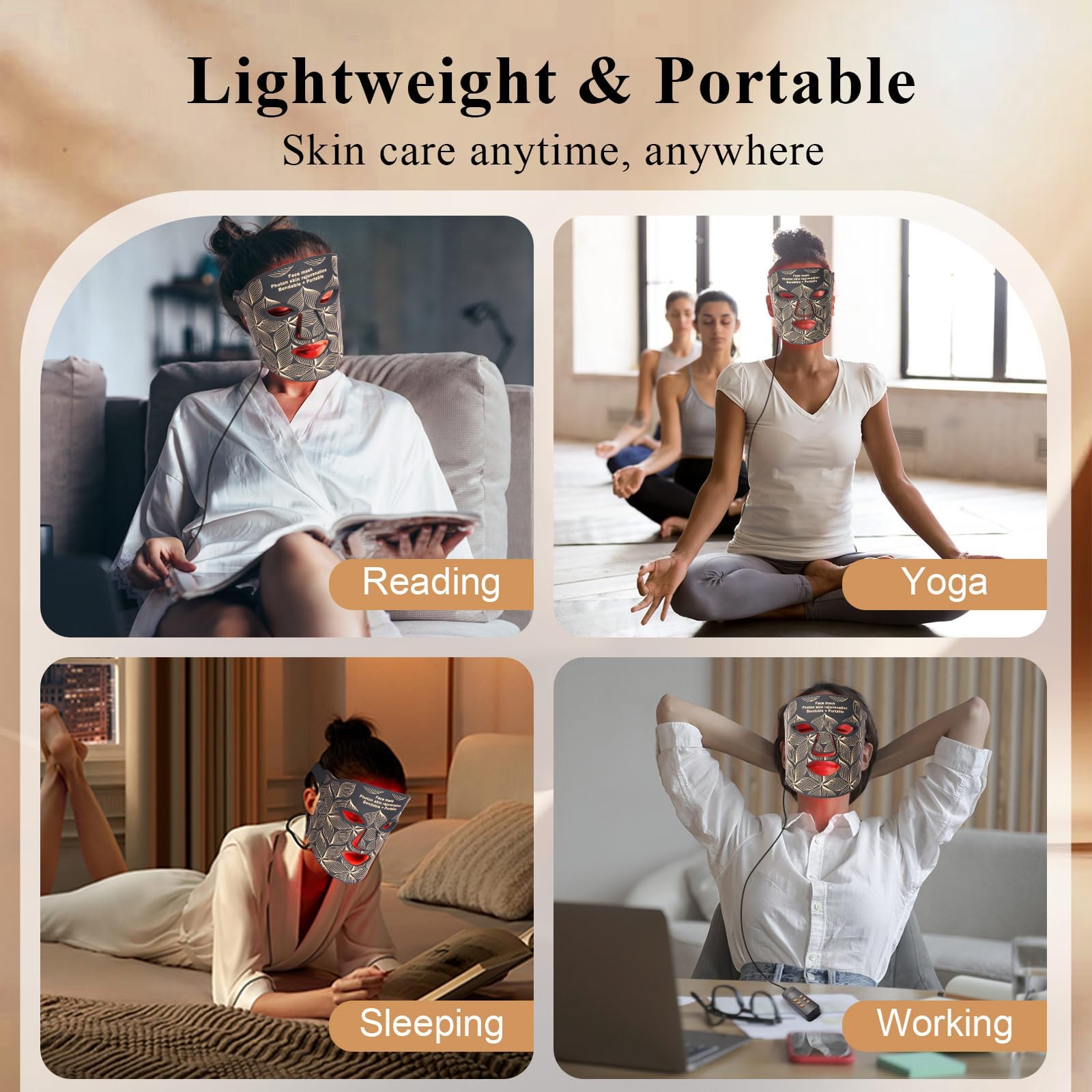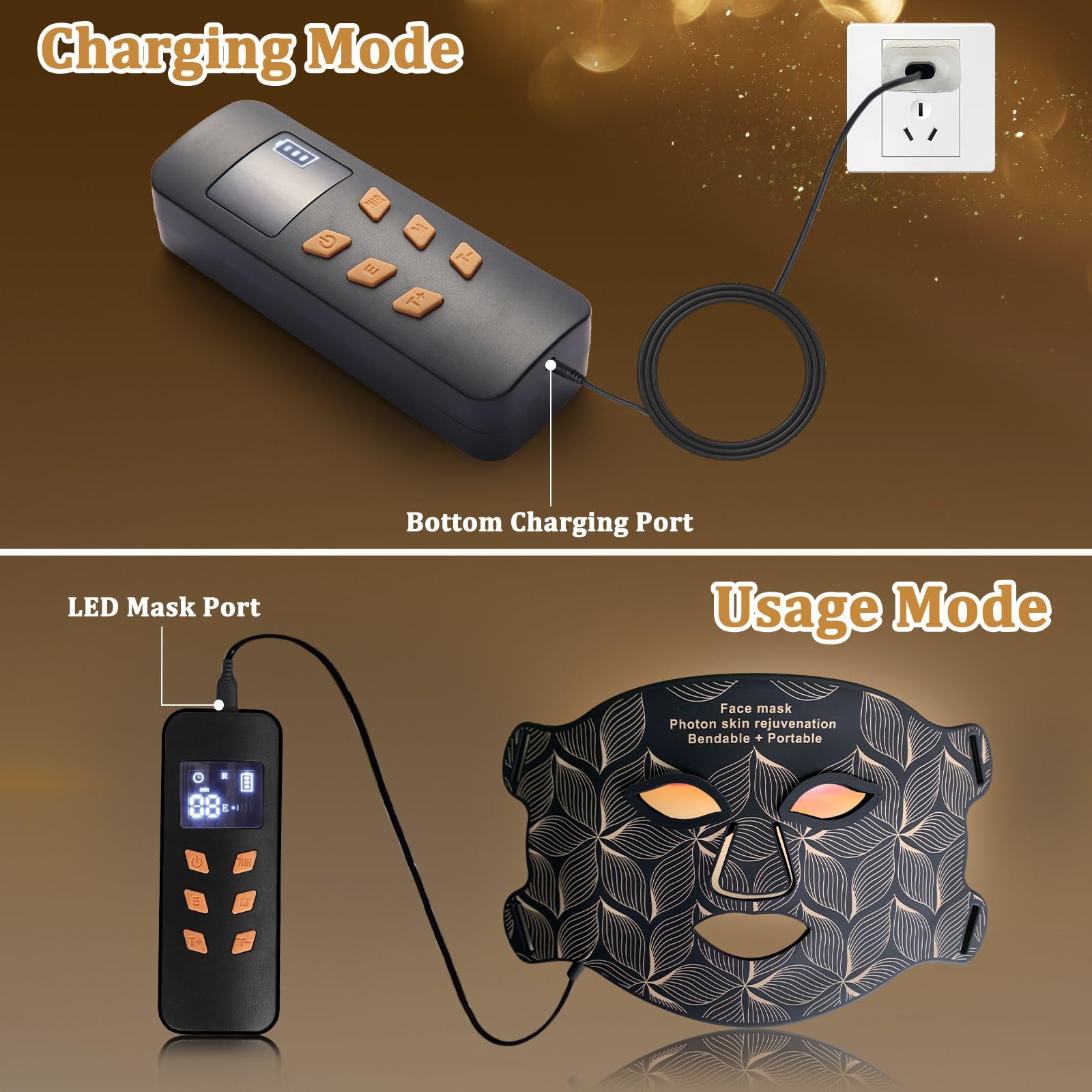 【Portable Skin Care & Save Time and Money】Our flexible silicone LED mask allows you to say goodbye to expensive SPA facials, Easily enjoy safe, effective, painless, and side-effect-free salon grade skin care at home. The LED face mask can be used countless times, saving you a lot of money and time. The foldable and portable rechargeable design allows you to keep your skin young at any time, whether at home, at work or traveling
