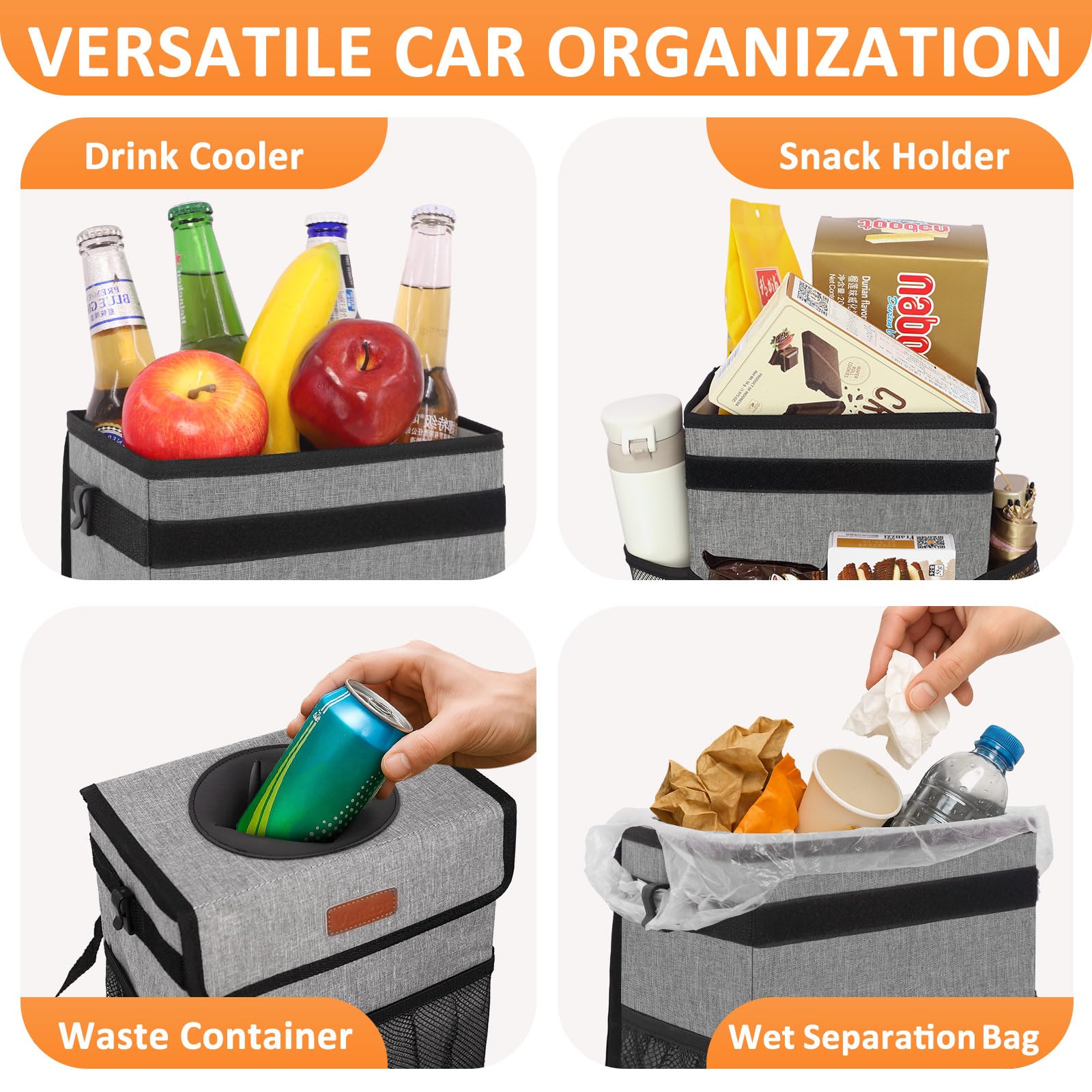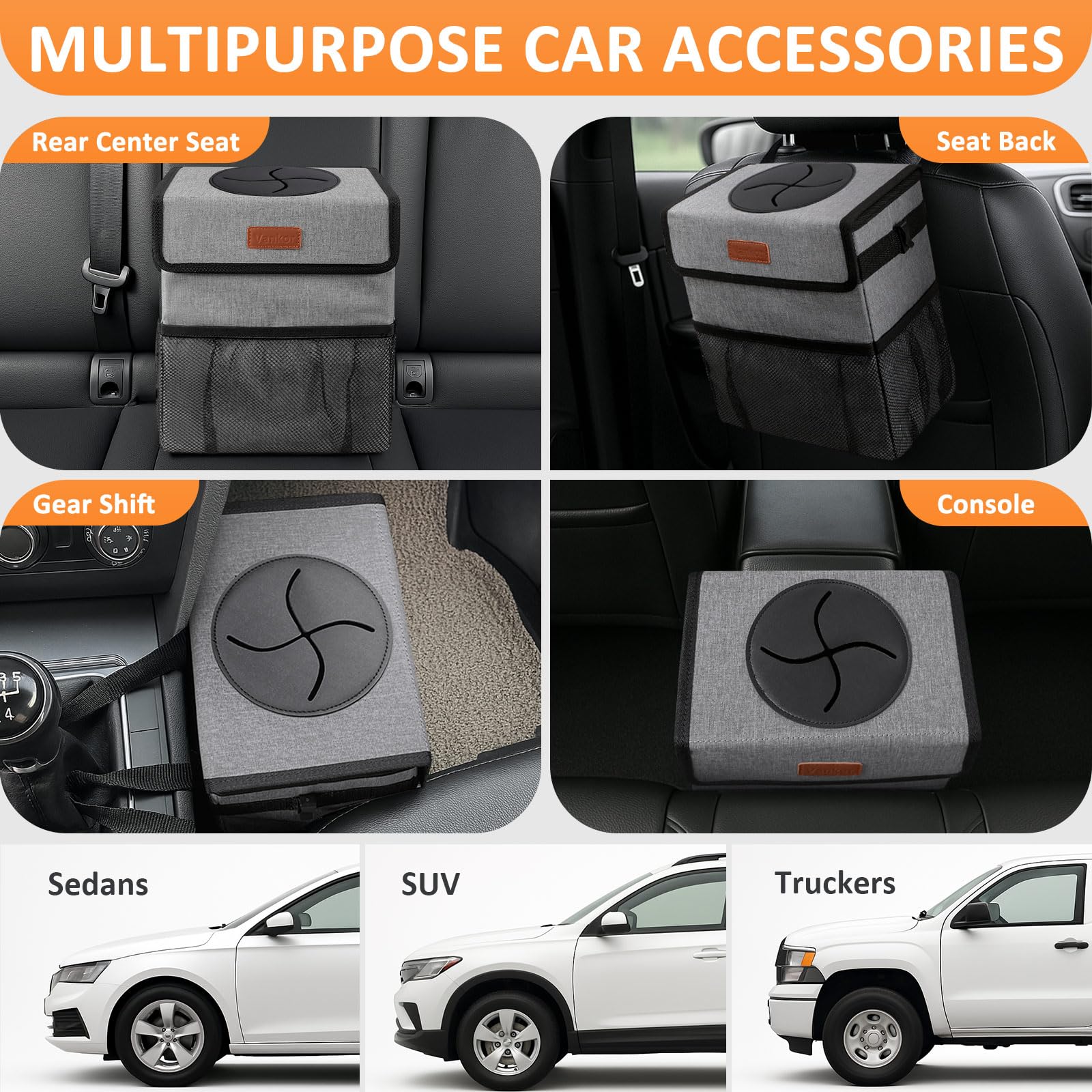 Wide Compatibility: An thoughtful solution for people who have the need for car neat and car interior storage; Perfectly fits varieties of types of vehicles including sedans, SUVs, RVs, trucks, vans, minivans, boats, campers, taxis, buses, etc; Auto trash can for car is very sturdy , has a long service life, and is very convenient to carry; The car trash can for the back seat is foldable, when you don't need it, just fold it up without taking up any space