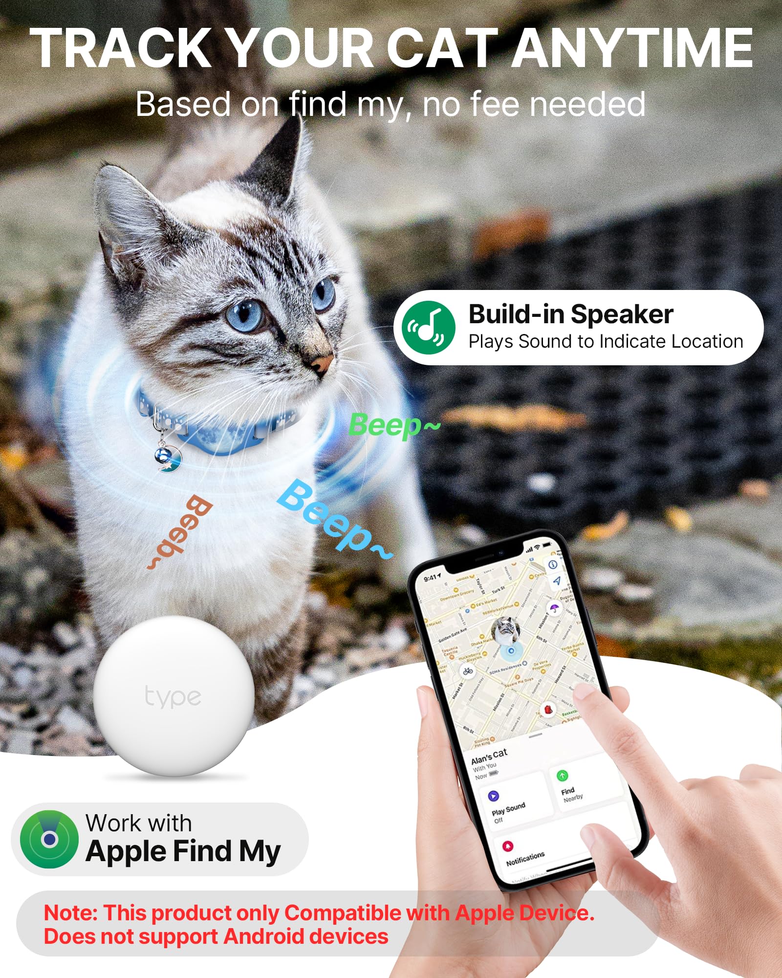 Precise Tracking: When within the bluetooth range, the mini cat tracker will emit a clear, loud beep noise to help you locate your pet. When out of range, it will utilize bluetooth technology and nearby Apple devices for precise global location tracking.(iOS Only, Not for Android)