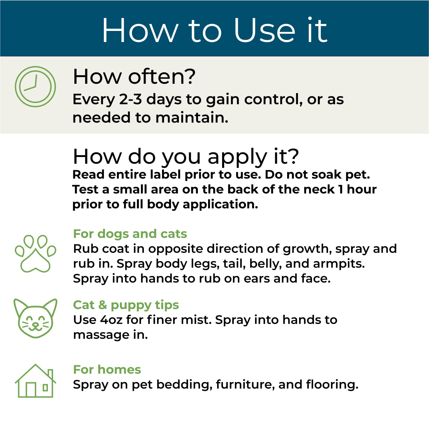 TREAT NATURE WITH NATURE. When used as directed, a safe and effective alternative to collars, pills, chewables, and drops harnesses the power of nature. Holistic vet approved. Enjoy peace of mind knowing your pets and home are protected with our non-harsh formula.