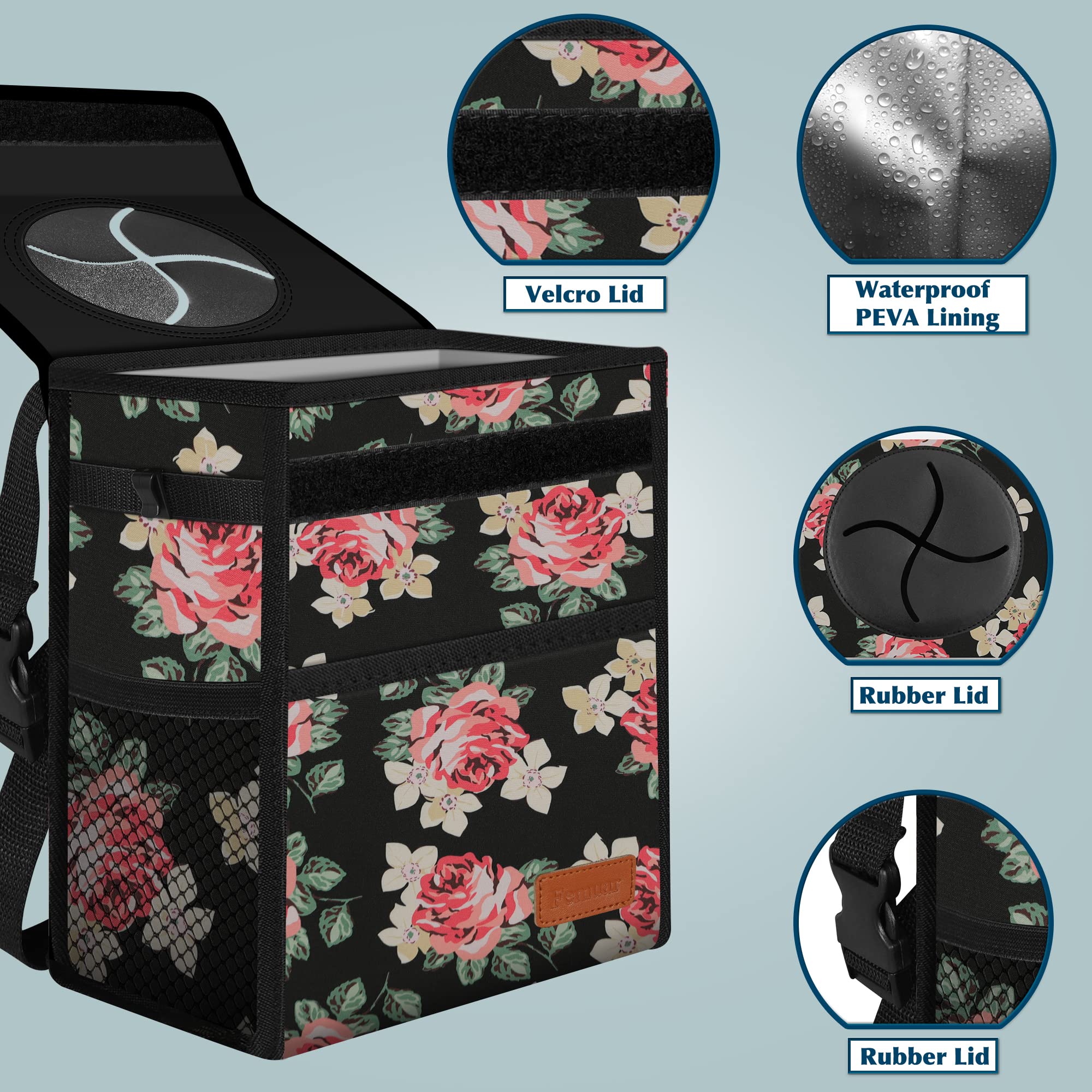 【THOUGHTFUL DESIGN 】Our car trash bin with soft lid that is a rubber X-shaped opening and velcro seal can be loaded with tissue paper, fruit peels, and the bottle can be closed or even cover up the waste and keep the internal smell without lifting the lid.