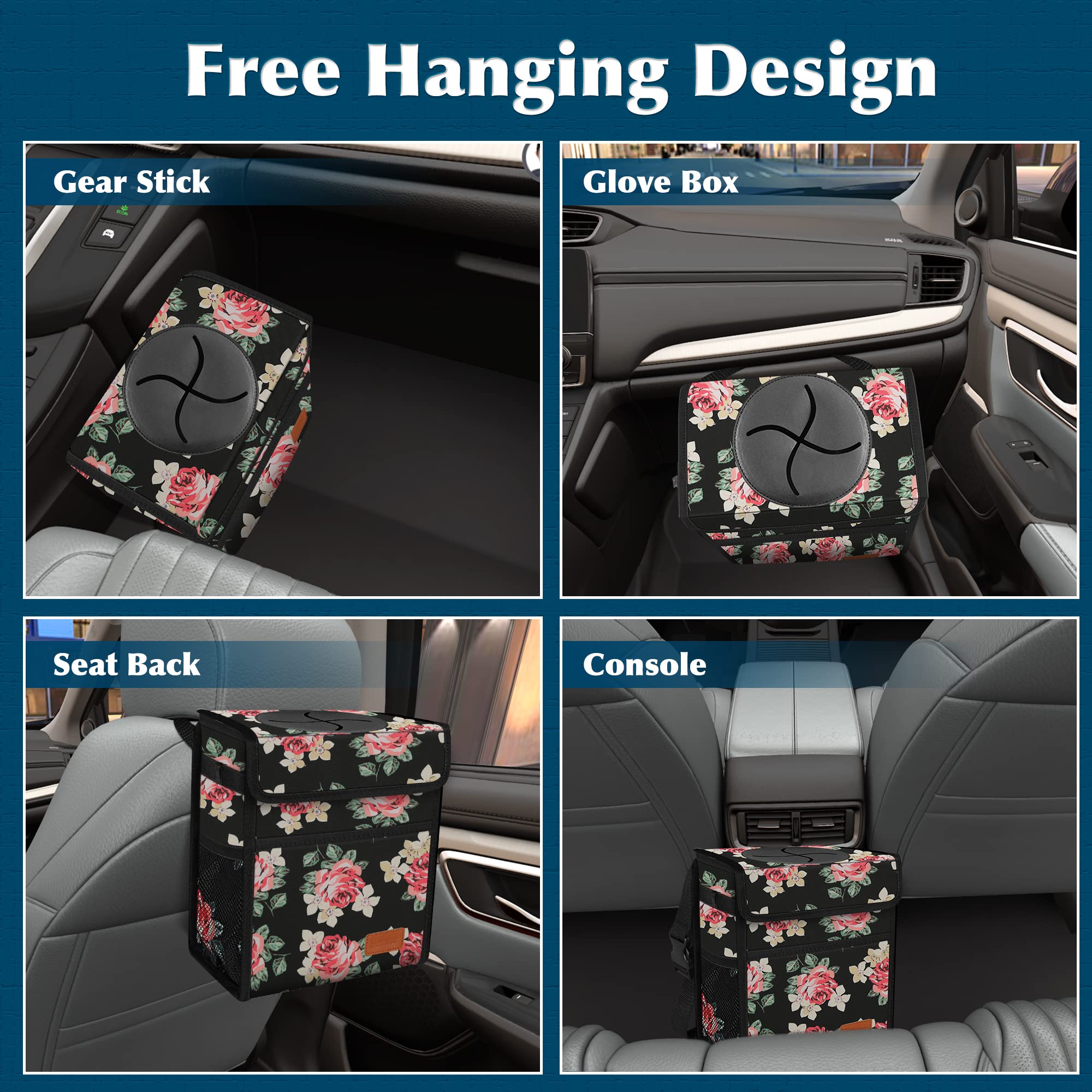 【PREMIUM MATERIAL 】This car trash bag is made of waterproof and durable 600D high-quality material, the inner material of the car accessories women is a waterproof and easy-to-clean PEVA lining. You can put it directly in the garbage, or put a disposable bag inside, and use two side clips to fix the handle of the bag, just keep everything clean