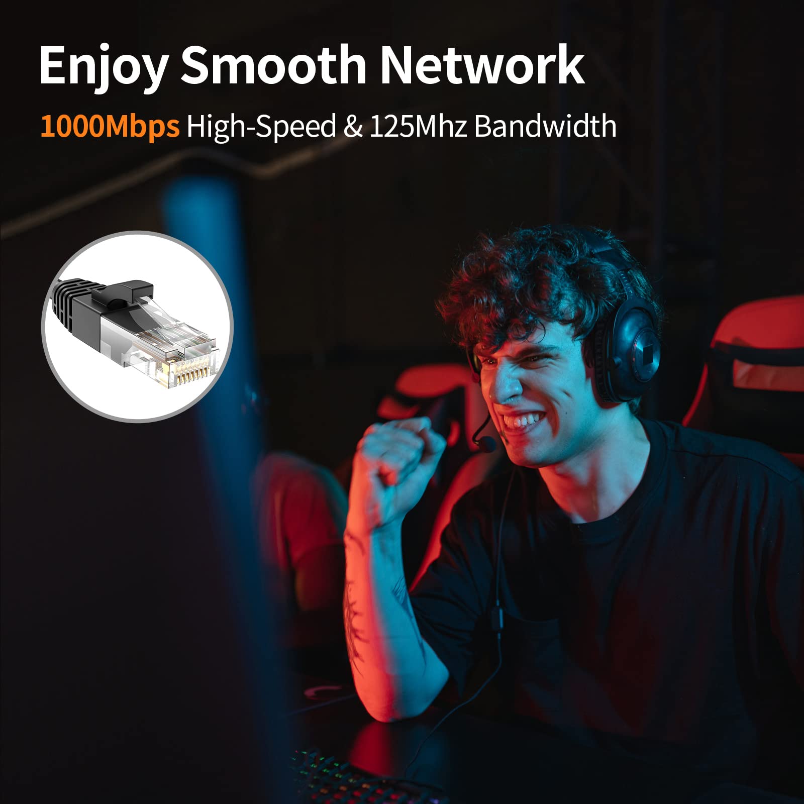 【Upload & Download Speed】Comply with TIA/EIA 568B.2 standard, support Bandwidth 150MHz & Transmitting data at speeds of up to 1000 Mbps (or 1 Gigabit per second), allow you to stream HD videos, music, surf the internet, play online games at Highly Speed.