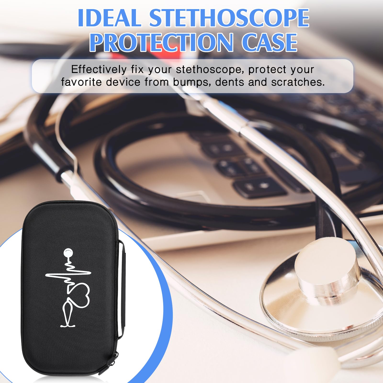 Ideal Stethoscope Case: interior grooves made with preformed inserts to hold the stethoscope in place, the stethoscope storage case comes with a shoulder strap on the side for easy carrying