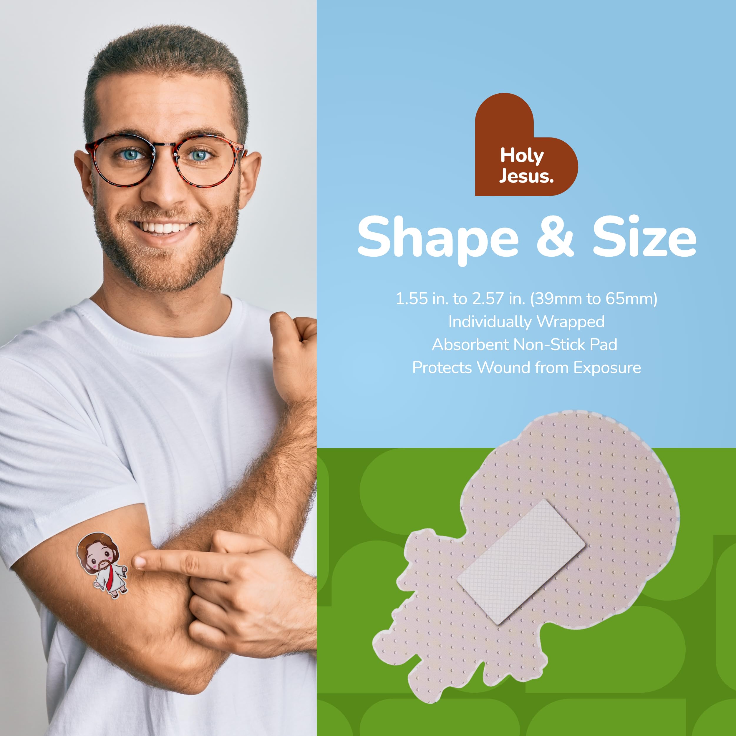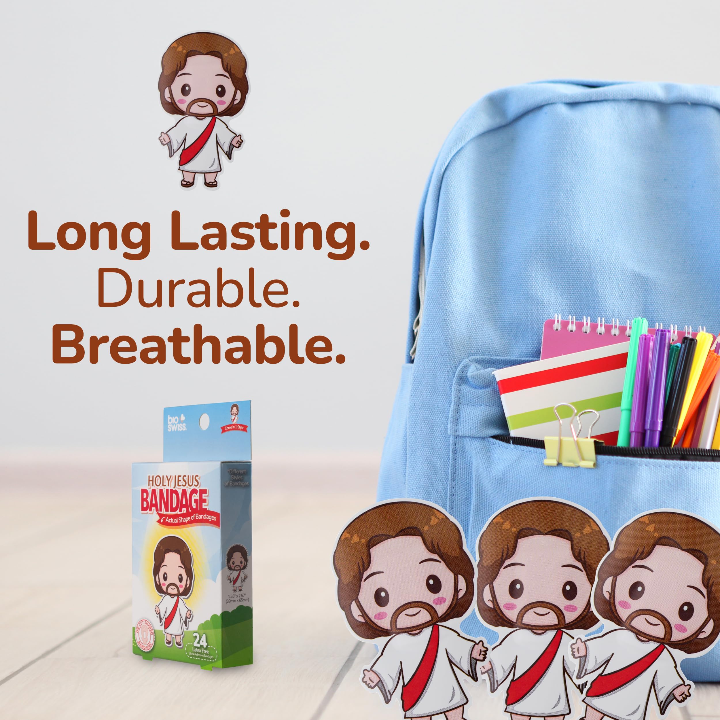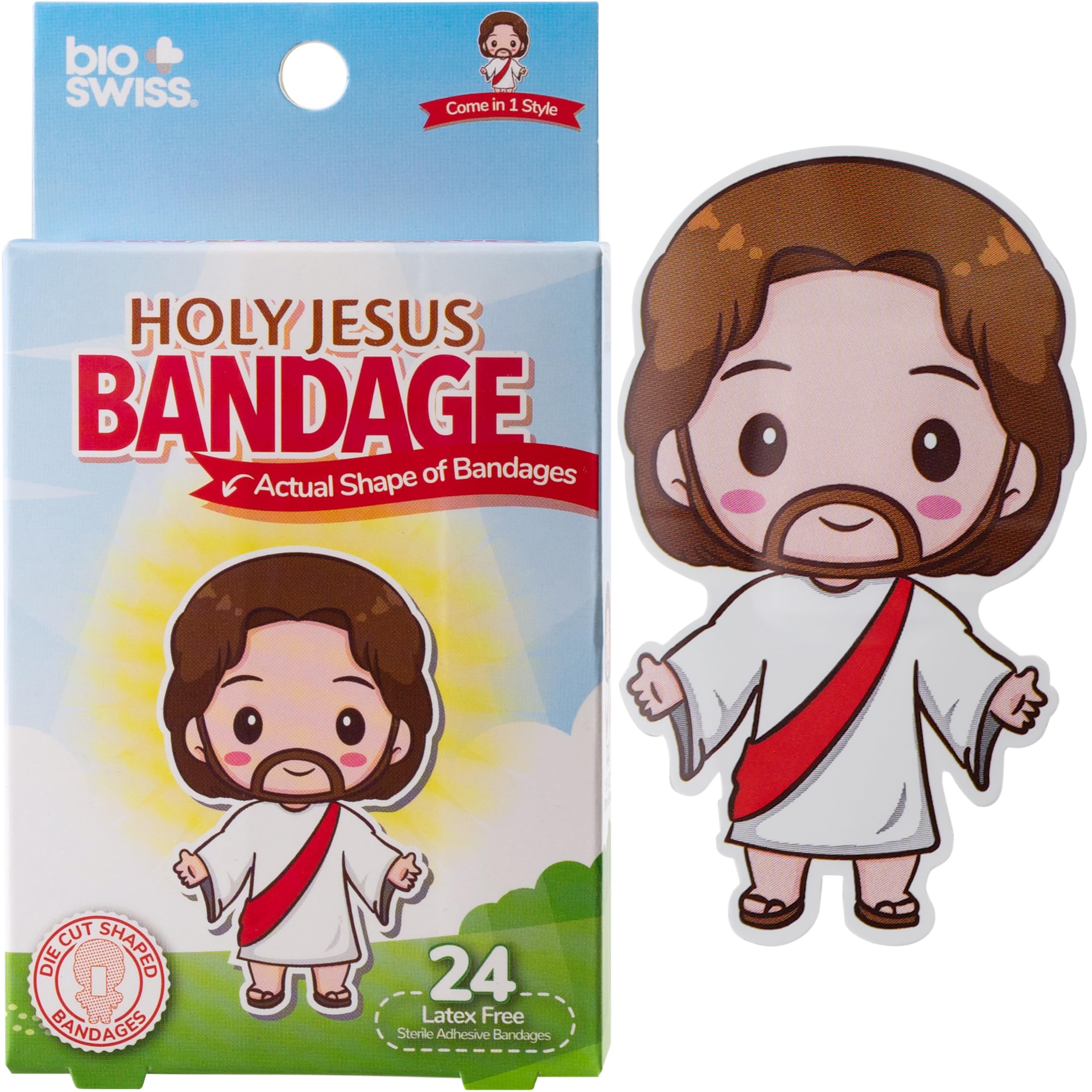 24 JESUS BANDAGES: Jesus-shaped adhesive bandages pack helps protect cuts, scrapes, and minor wounds while making healing less stressful