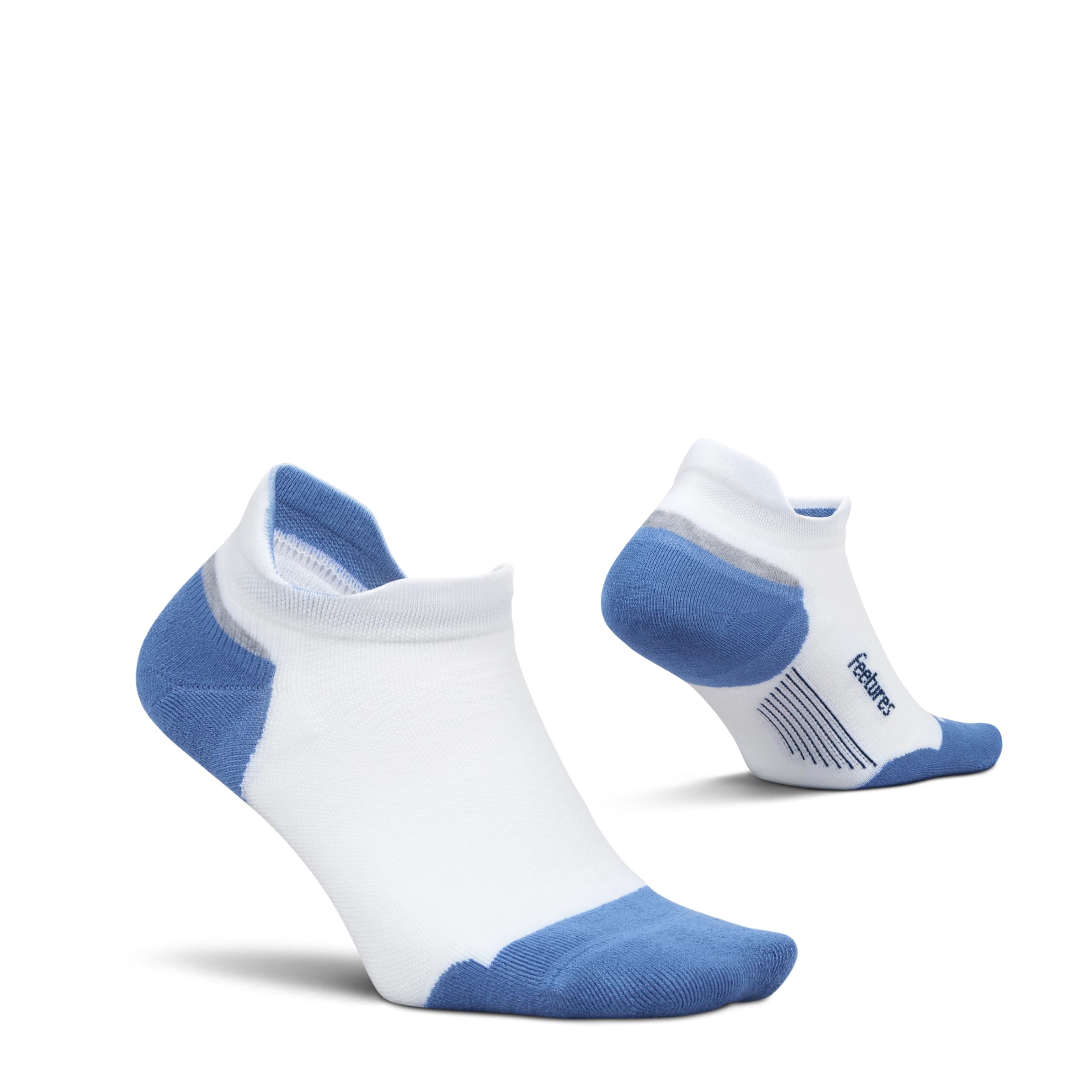Feetures Elite Max Cushion No Show Tab - Running Socks for Men & Women, Athletic Compression Socks, Moisture Wicking - White Tide, Medium (1 Pair)