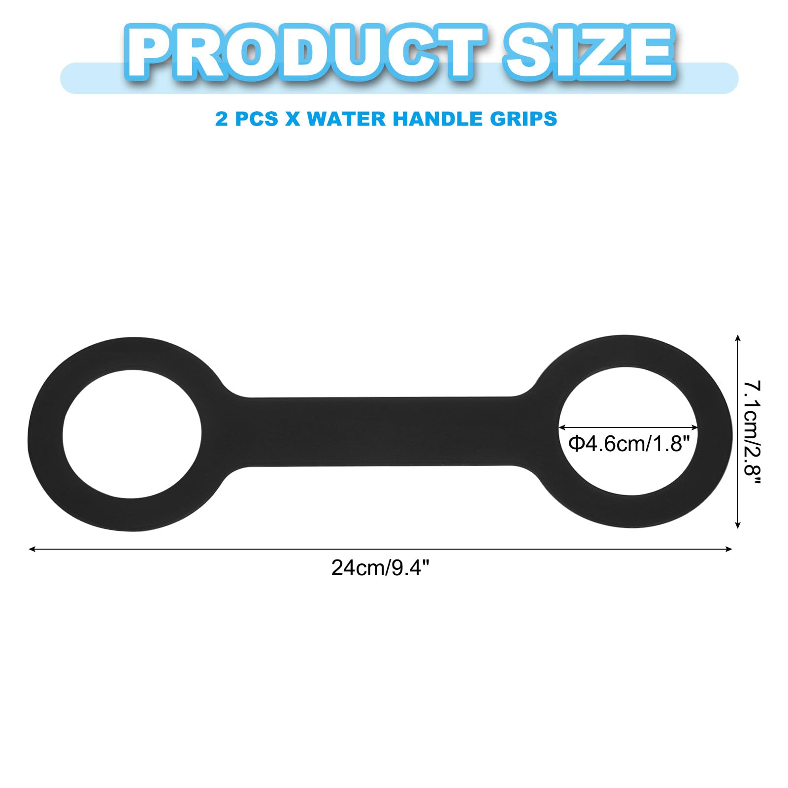 Specification: Material: Silicone; Color: Black; Inner Diameter: 4.6cm/1.8 Inch; Outer Diameter: 7.1cm/2.8 Inch; Length: 24cm/9.4 Inch; Thickness: 3mm/0.12 Inch; Suitable for 500ml to 1000 ml cup; Packing List: 2 Pcs x Water Handle Grips