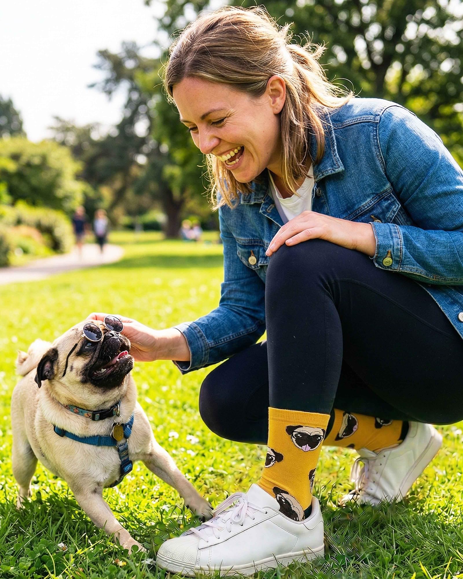 PUG GIFTS FOR WOMEN & GIRLS -- Great gifts for pug lovers. She will absolutely thrilled to receive our cute socks. Wonderful to share with some young family members.