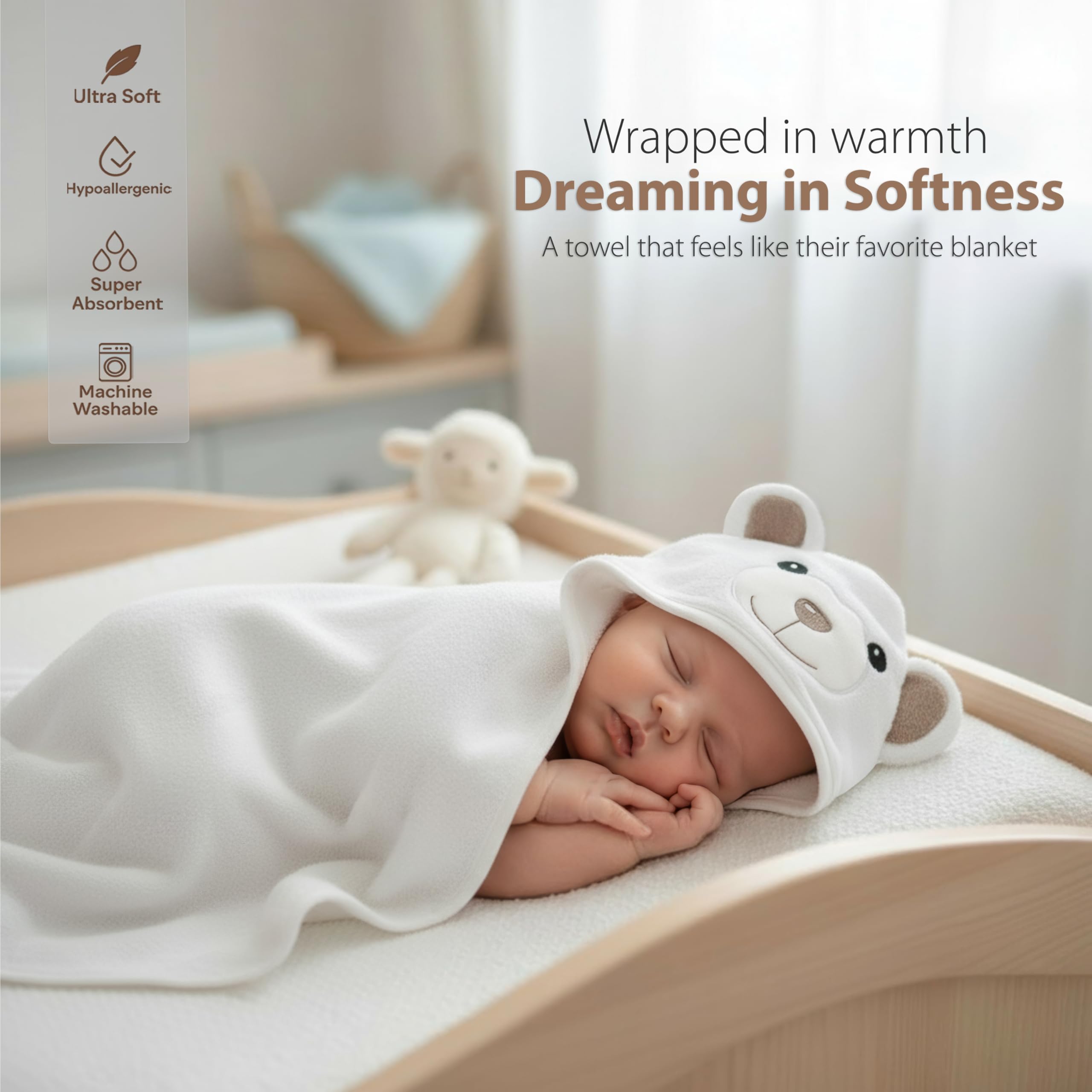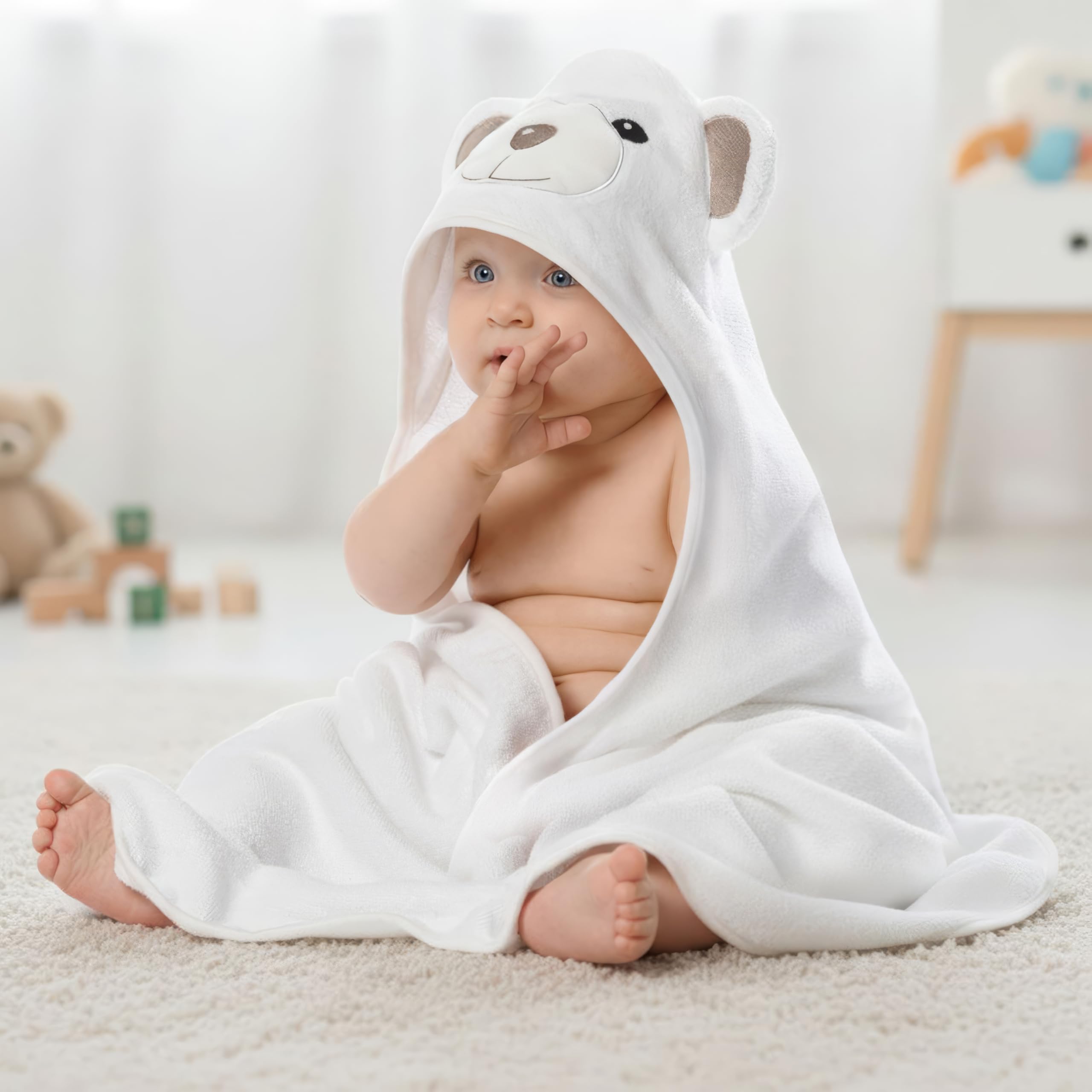 Perfect for Baby Gifts - Our bear design newborn towels make bath time extra special and photo-ready. Must have baby essentials for parents choosing thoughtful gifts like baby girl towels, boy towels, and infant towels.