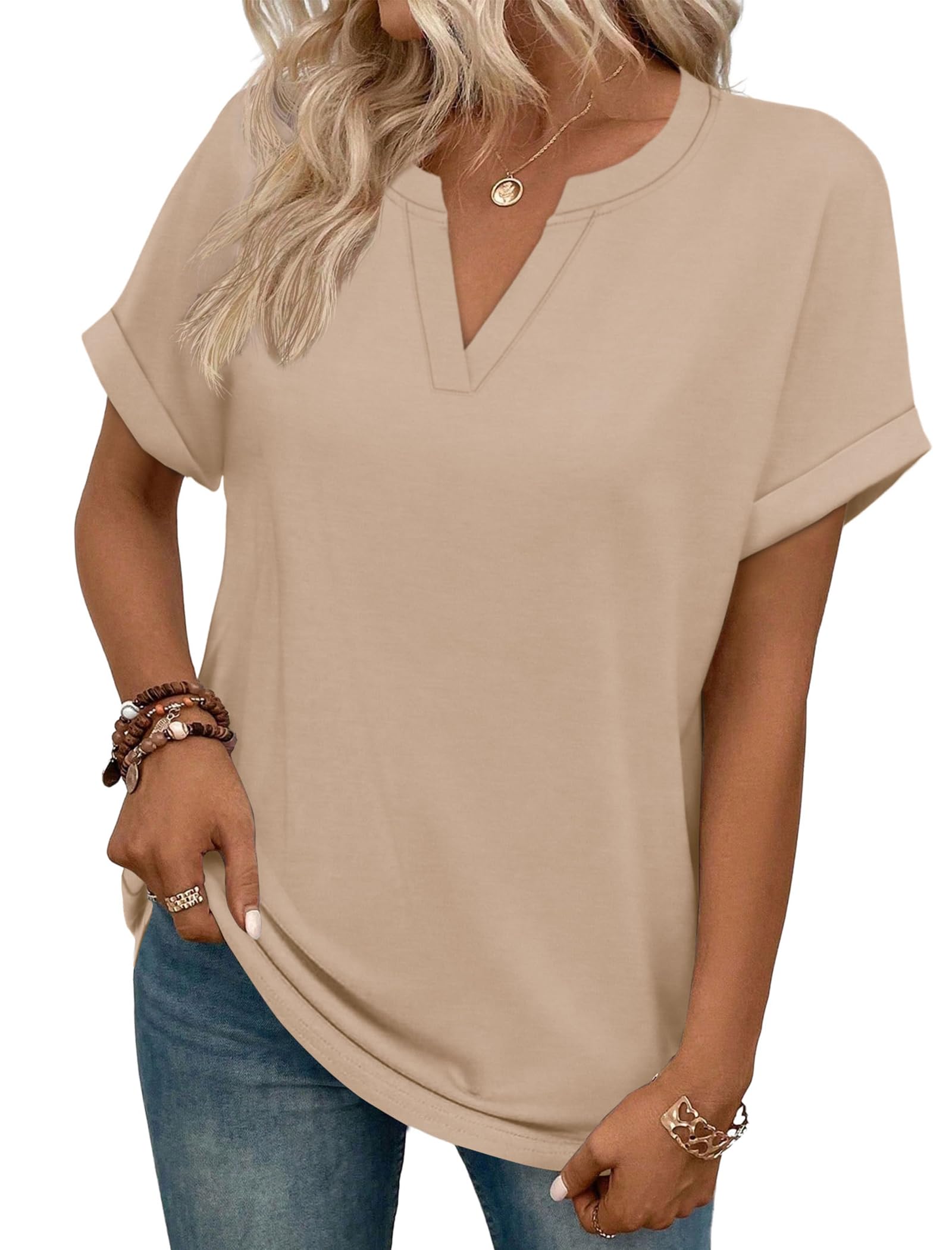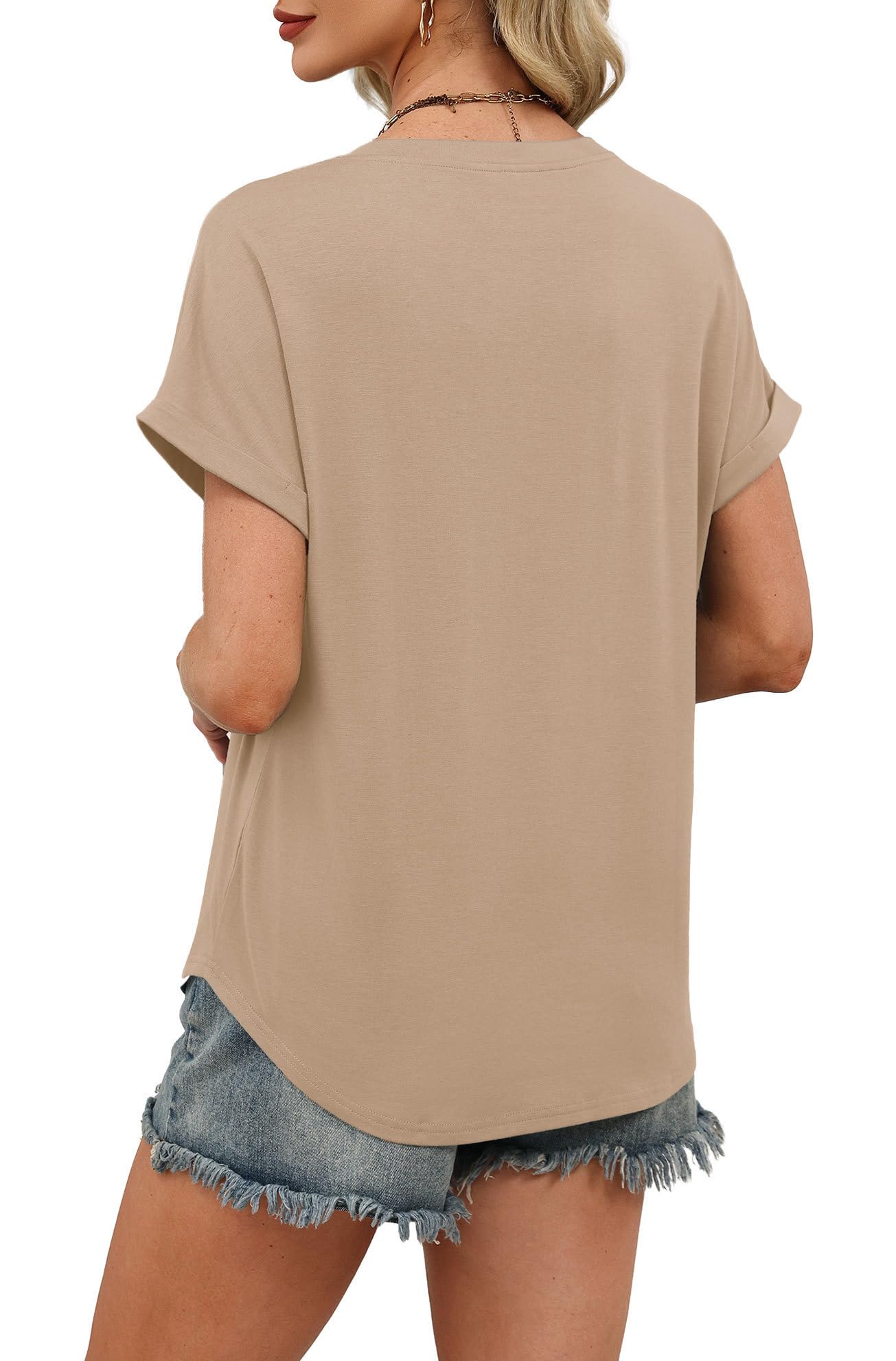 ★Stylish Design:Highly fashionable.The summer shirts designed with short sleeve, v neckline, rolled sleeve,casual loose fit, tunic length,so it goes well with leggings or jeans.