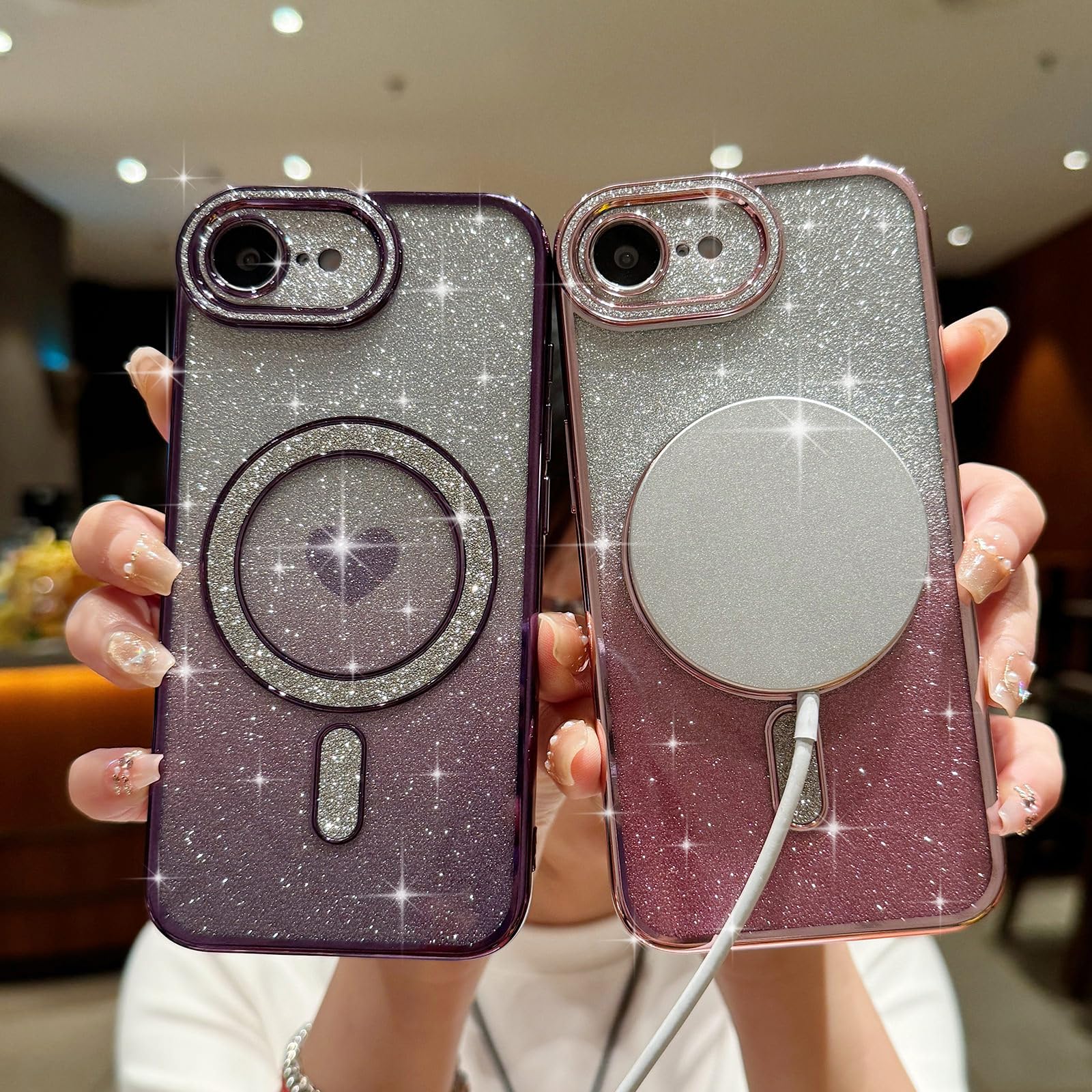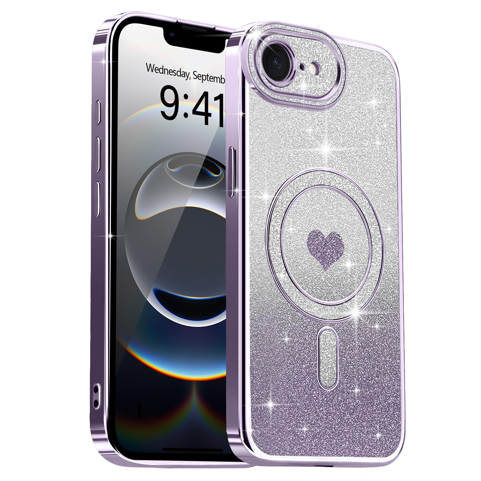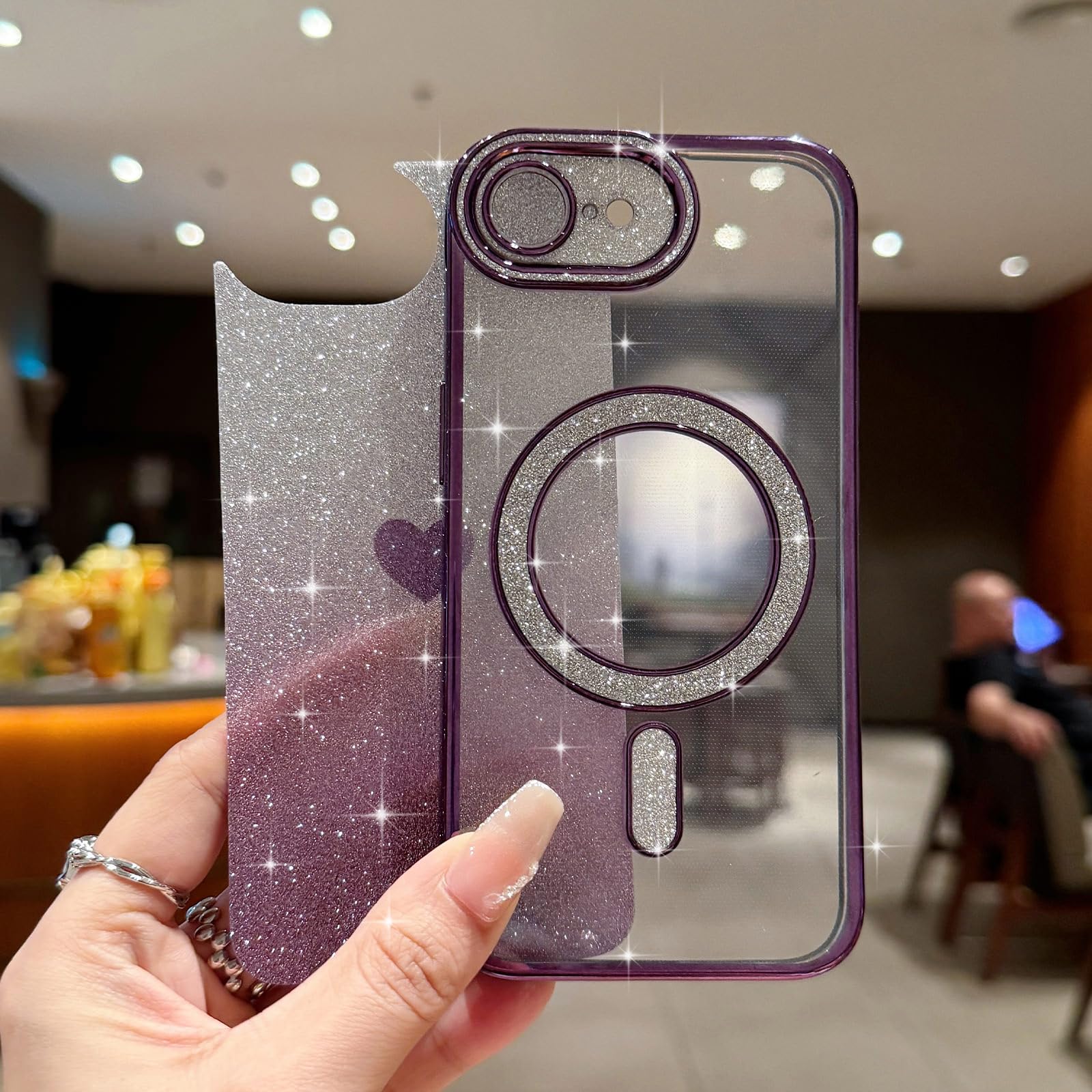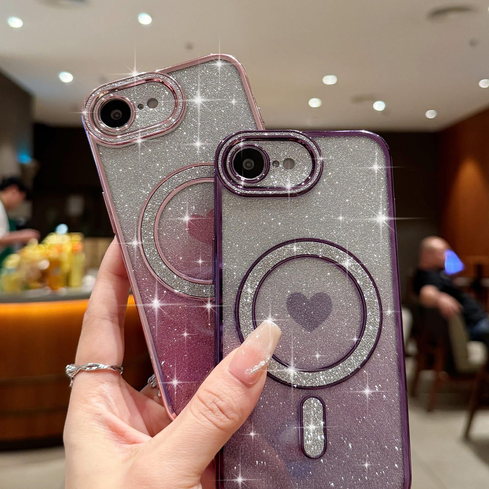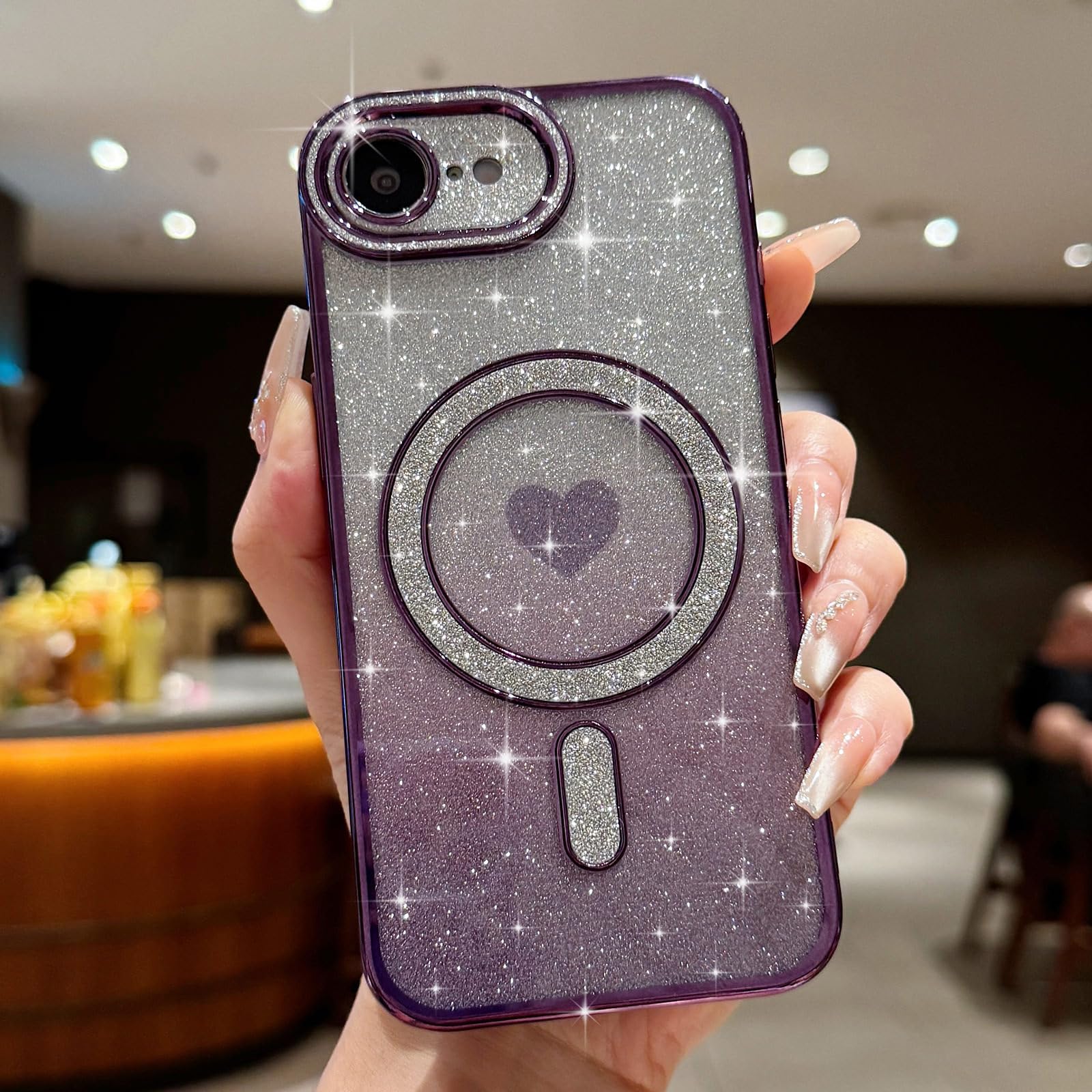 Sparkling Love Heart Shape: Features a dazzling unique heart-shaped glitter design embedded within the transparent case, adding a touch of elegance and sparkle aesthetic.