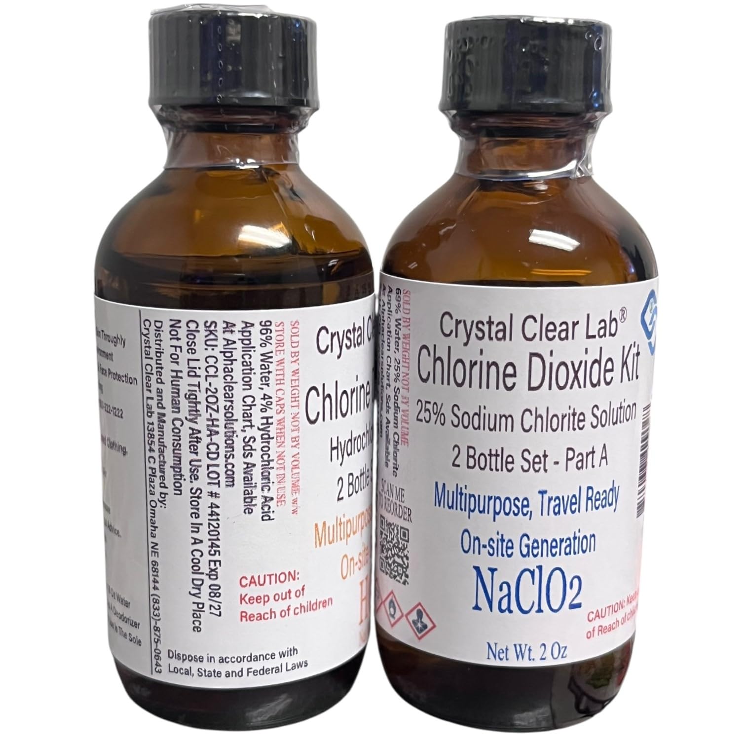 Four-ounce Kit | 1:1 Set, 1x 2 oz Hydrochloric Acid 4%, 1x 2 oz Sodium Solution NaClO2