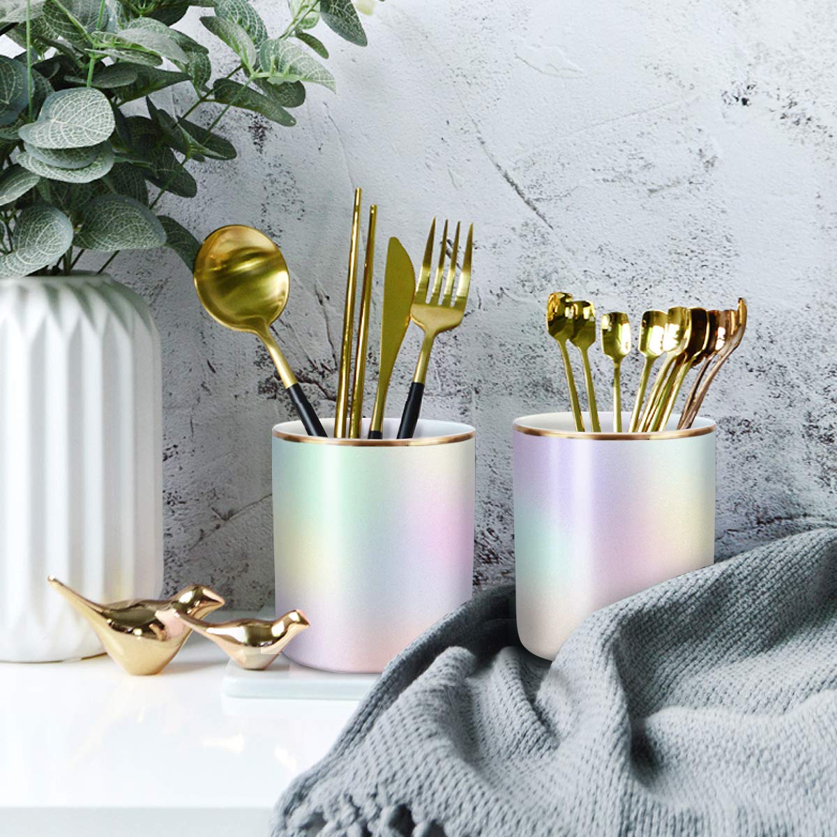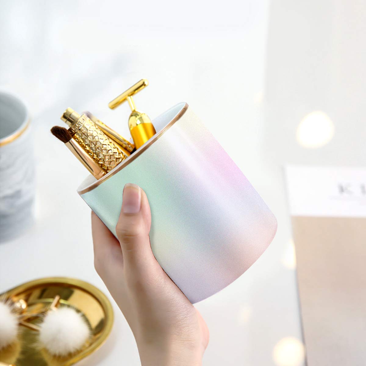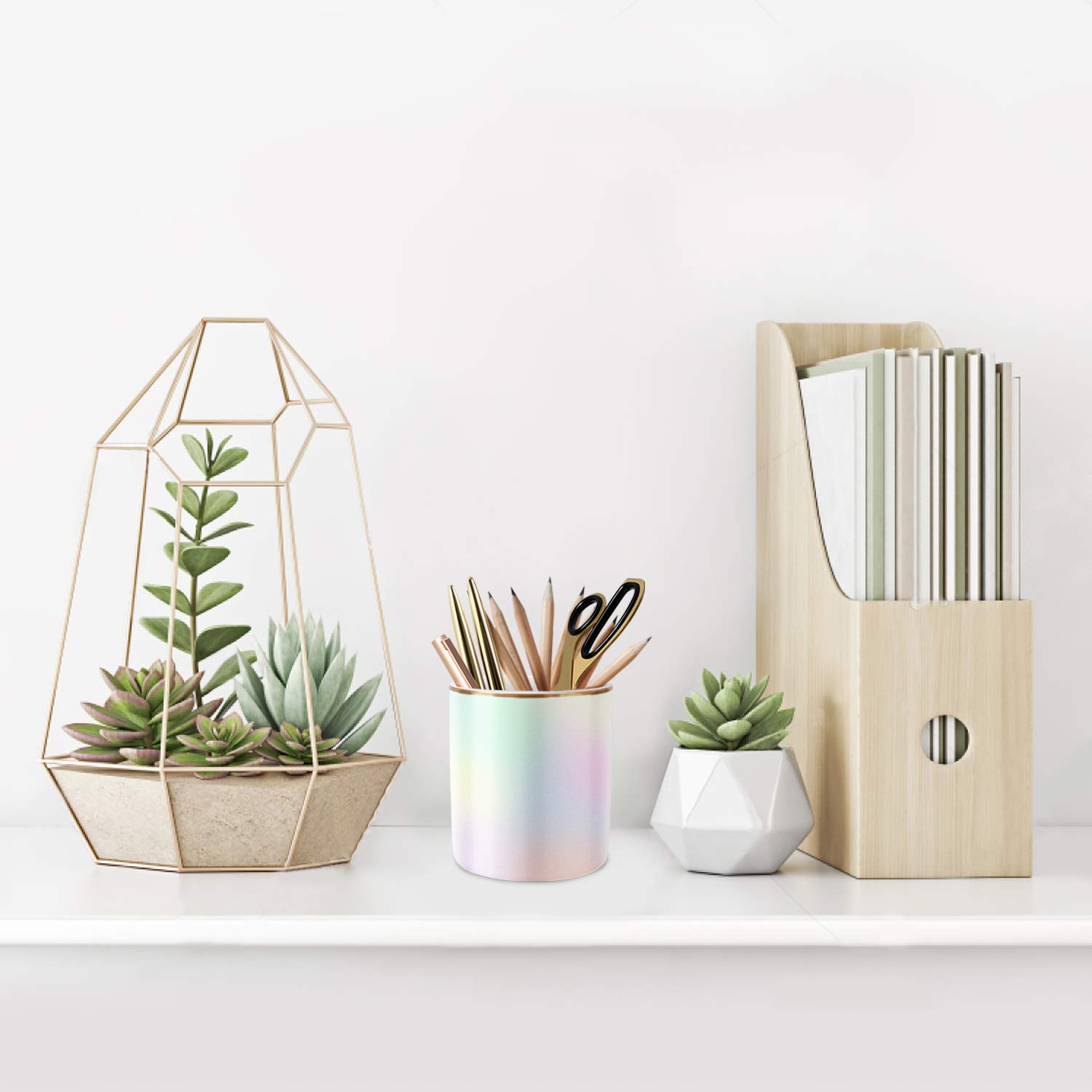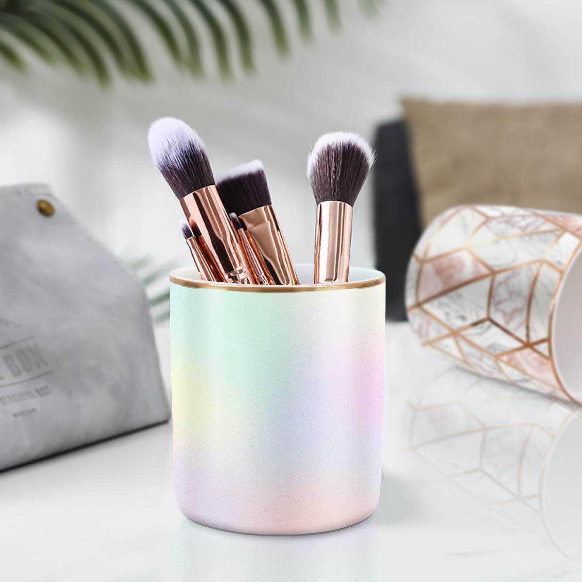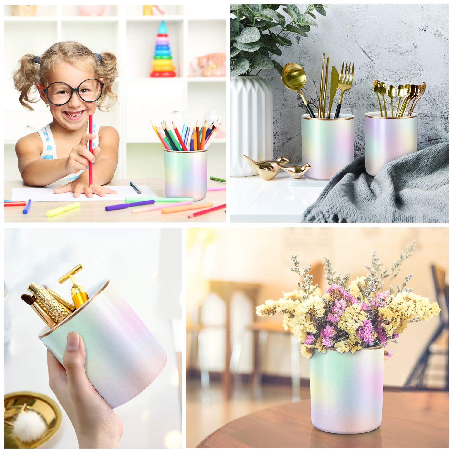 【Makeup Brush Cup Organizer】It can be used as pencil holder, makeup brush holder, toothbrush holder, kitchen utensil organizer, or something else, it holds lots of pens and pencils makeup brush, keeps everything pretty organized and that will dress up your desk and table in a simple and elegant way.