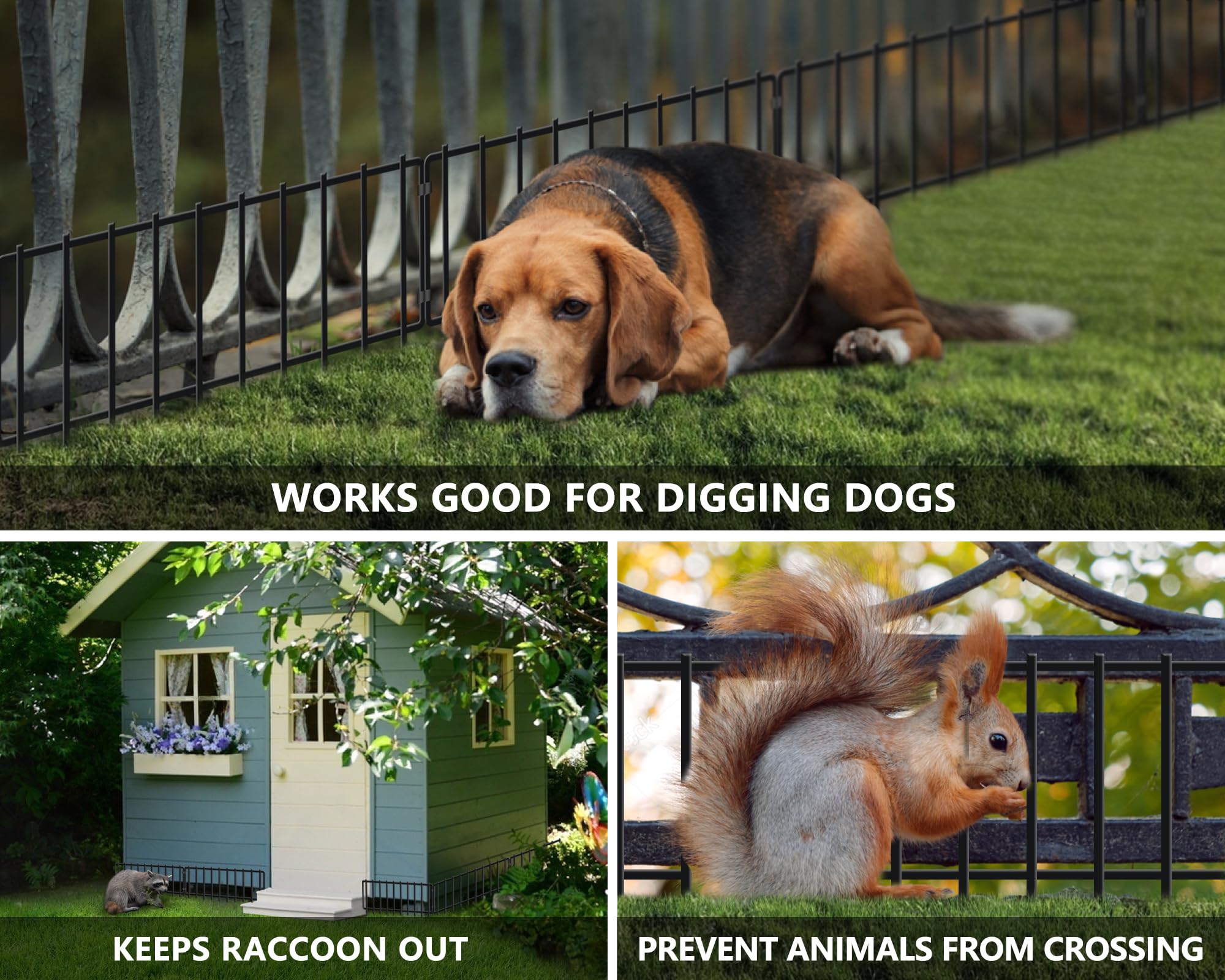EXISTING FENCE GAP FILLER - The gap of the no dig fence is reduced to 1.55 inches, extending the protection of your fence to the ground, which can effectively prevent your dog from digging under the fence and escaping your yard. Our fence is welded with upgraded technology to ensure stability and prevent breakage when inserted into the ground. The surface is coated with black painting to delay rust.
