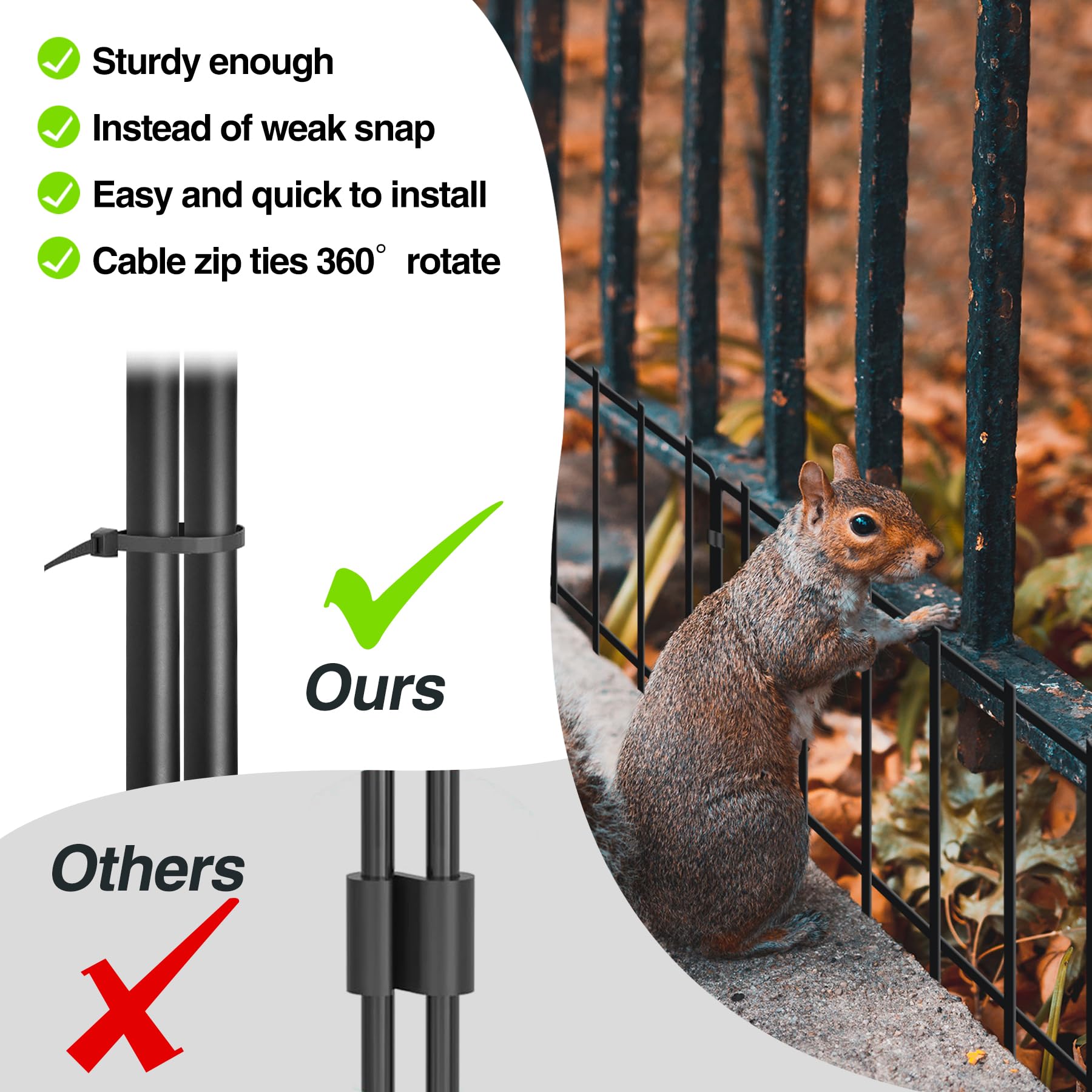 EASY TO INSTALL: Our cable tie connection method is safer and more convenient than the snap method. You just need to pull them tight and hammer them into the soil. Comes with free gloves and wire cutters to help you easier to install.