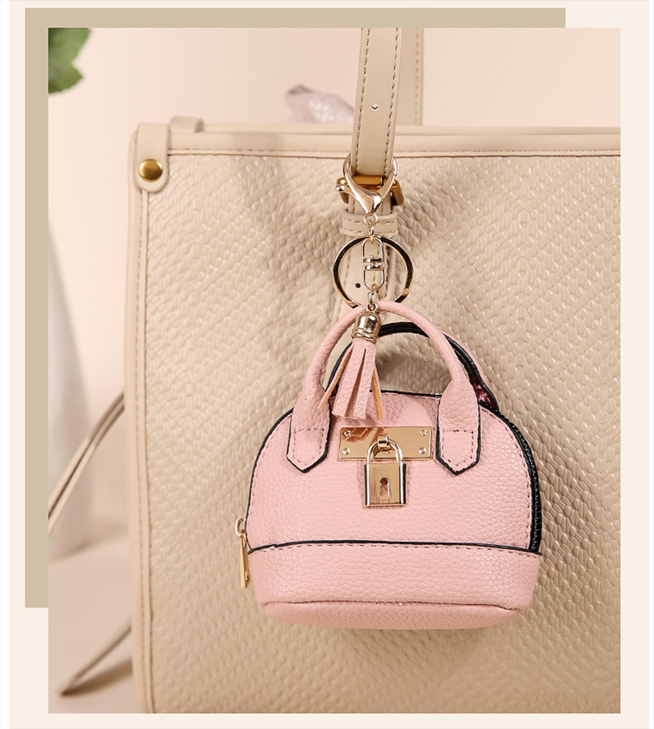 Creative Design: A mini size tote bag, with leather handles & tassel keychain