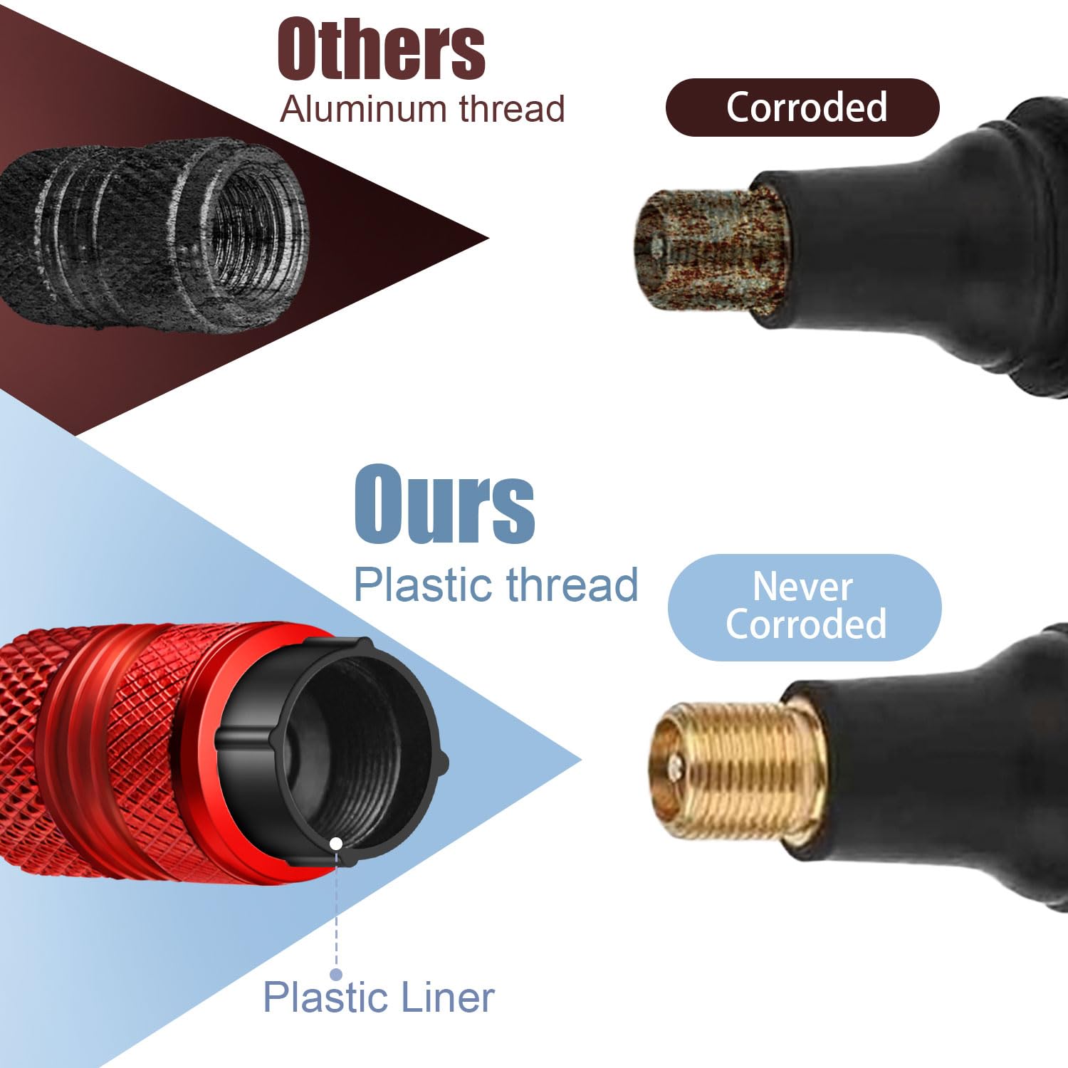 Tire Valve Stem Caps - 4 Pack Anti-Corrosion Premium Anodized Alloy Tyre Air Valve Caps Universal for Car SUV Bike Red